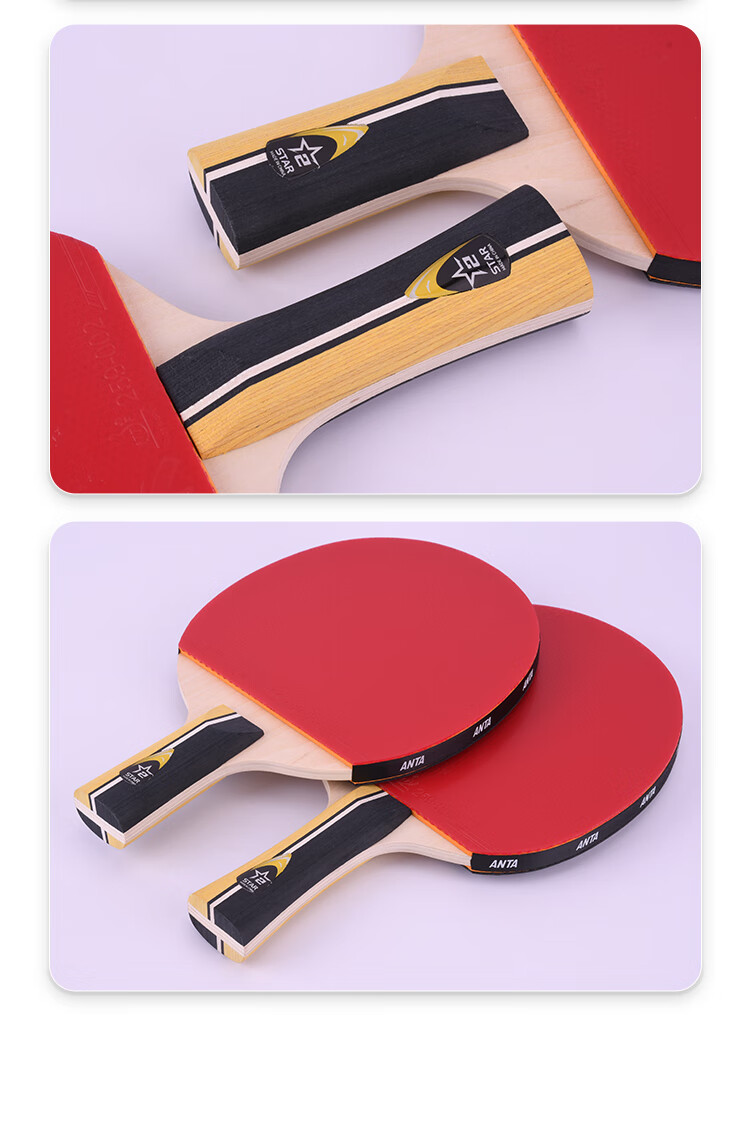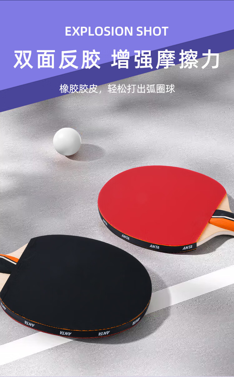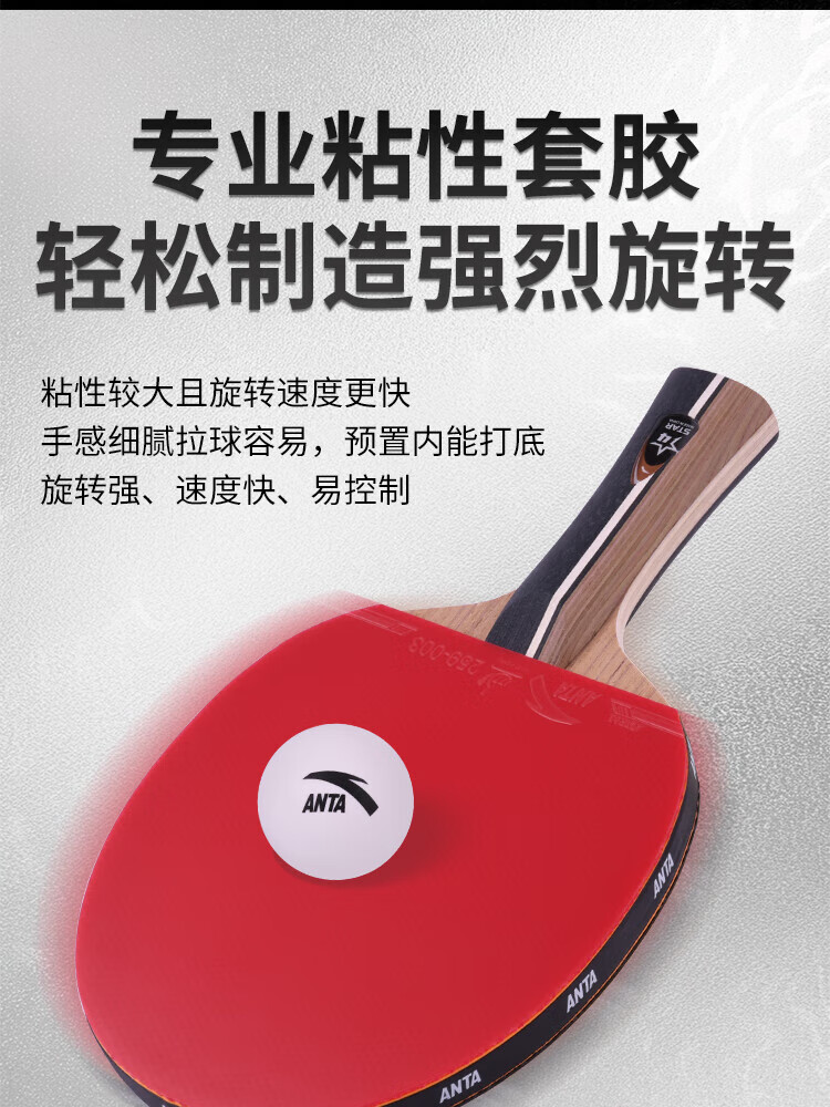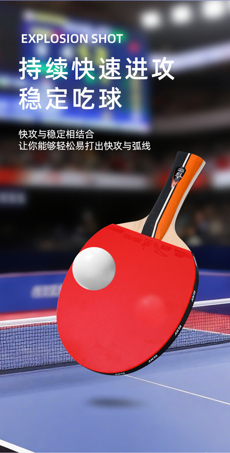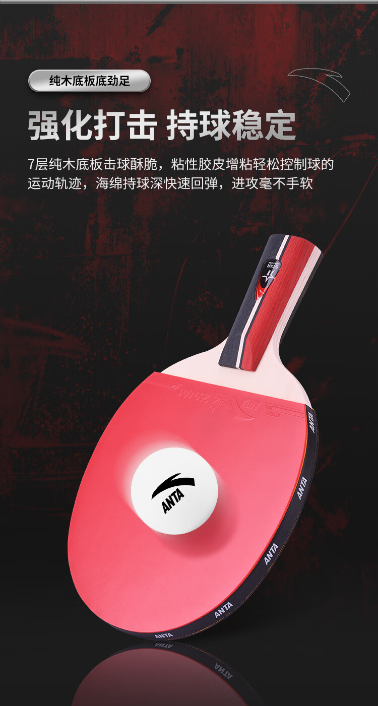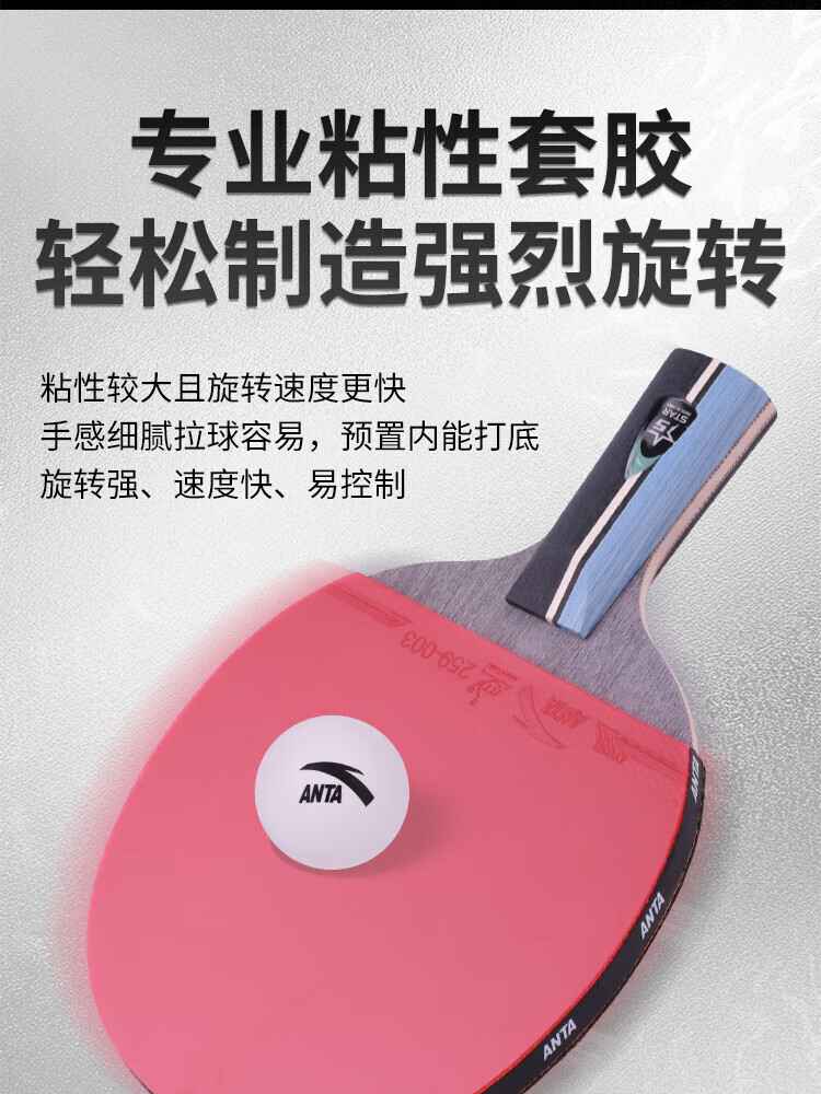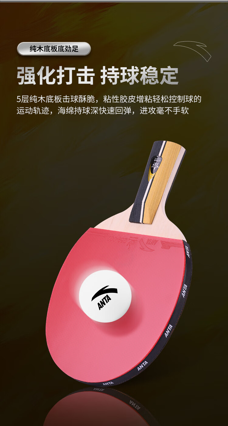 ANTA安踏乒乓球拍儿童小学生新手一星二星三星横拍直拍训练娱乐单拍 2星 直拍 送6只训练乒乓球
