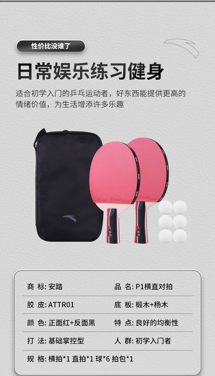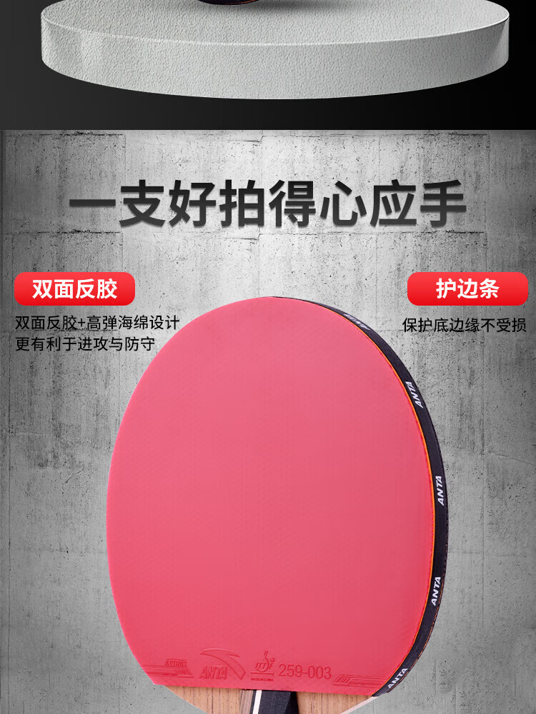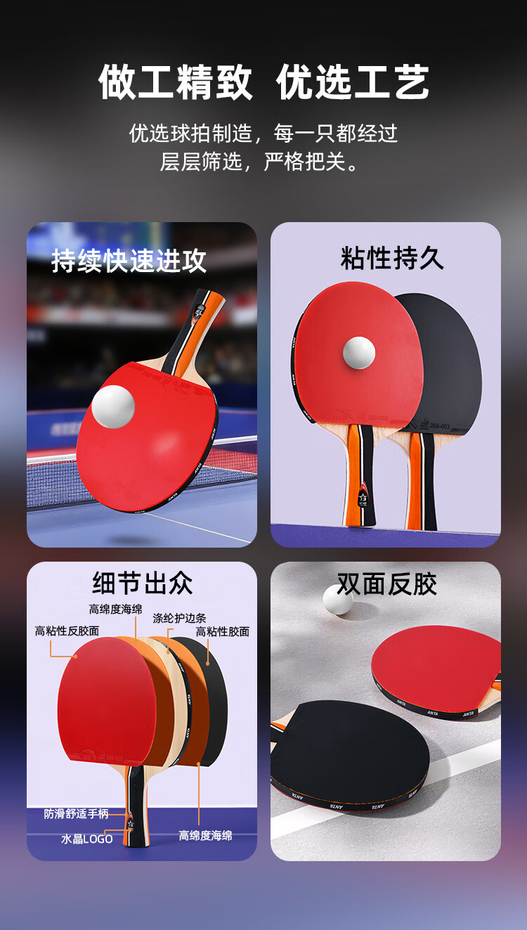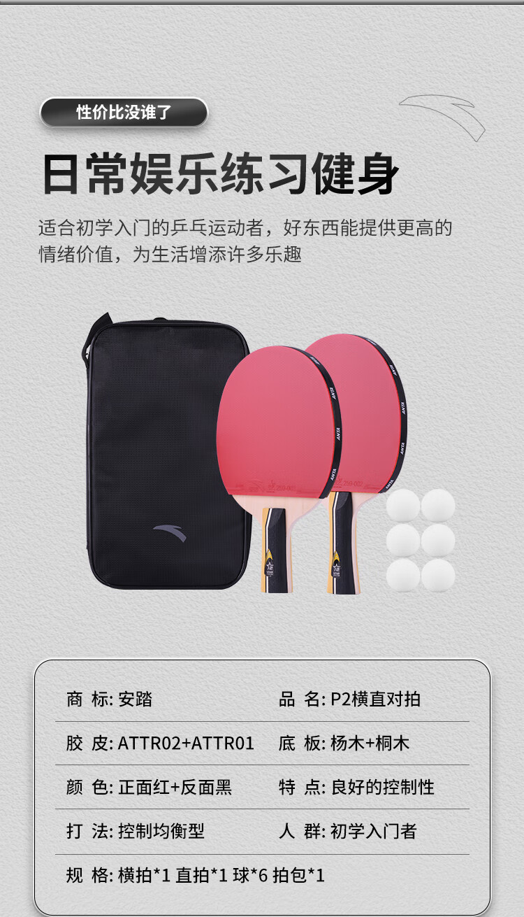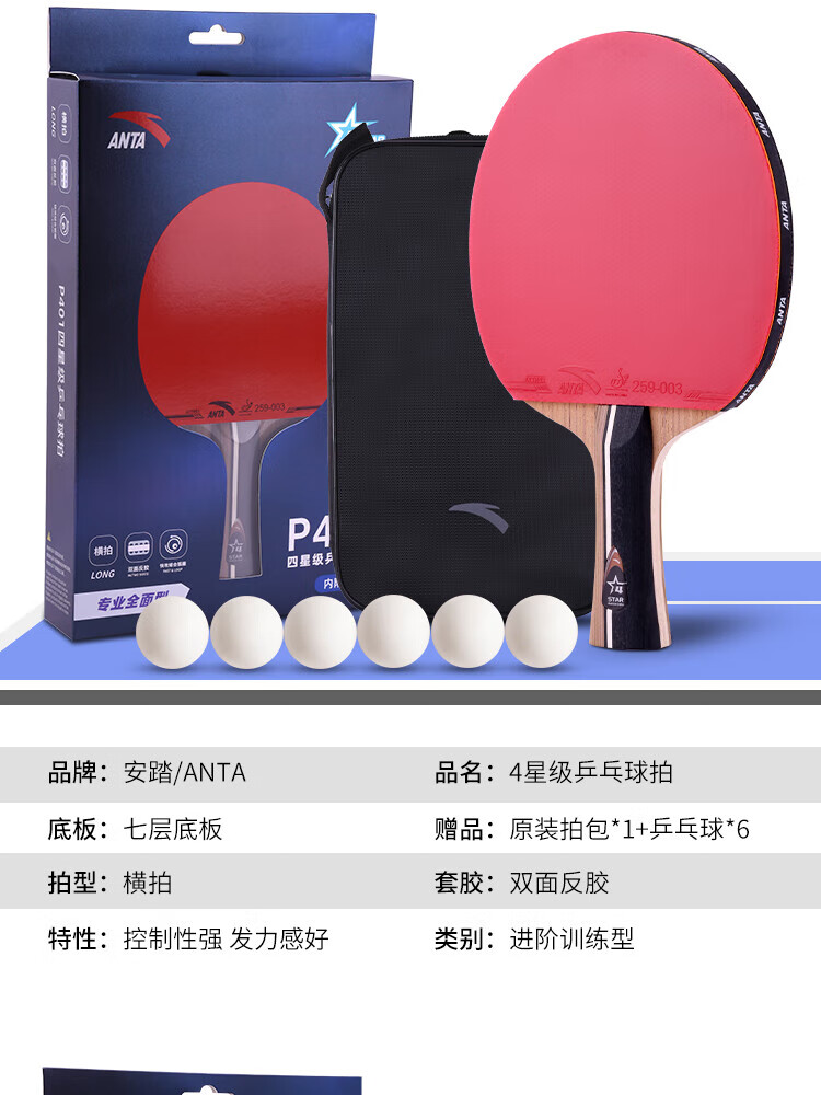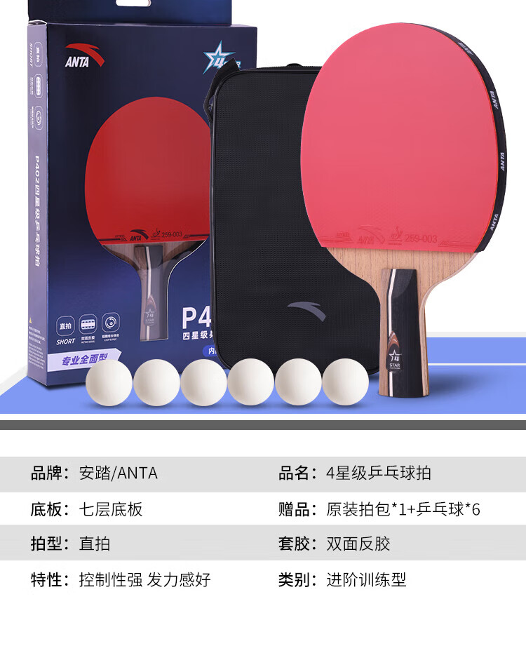 ANTA安踏乒乓球拍儿童小学生新手一星二星三星横拍直拍训练娱乐单拍 2星 直拍 送6只训练乒乓球