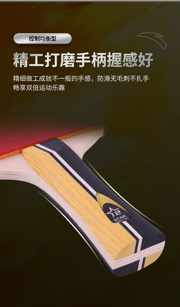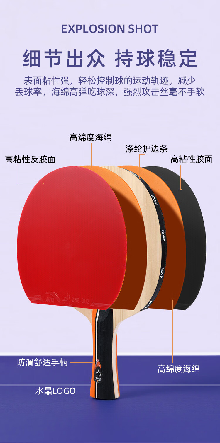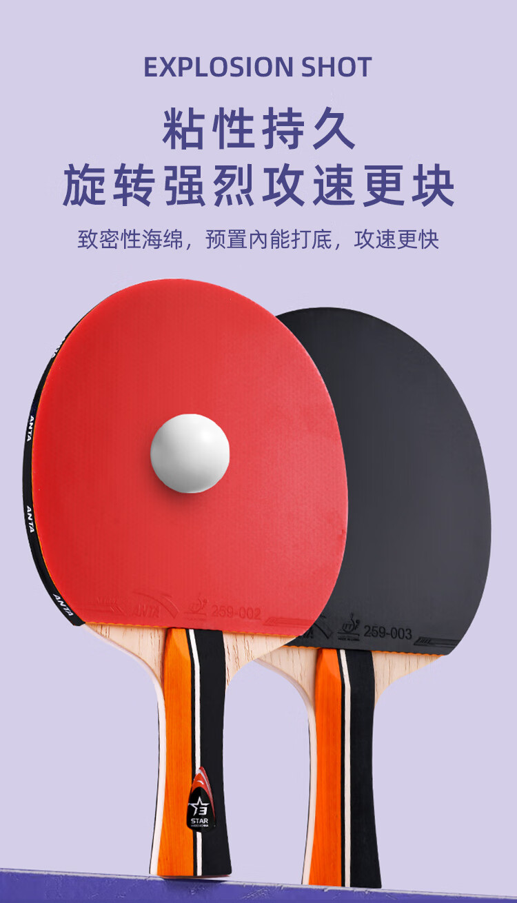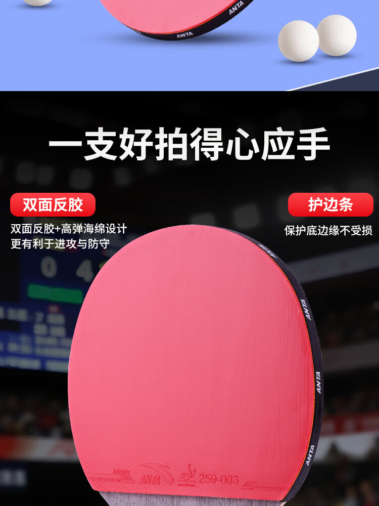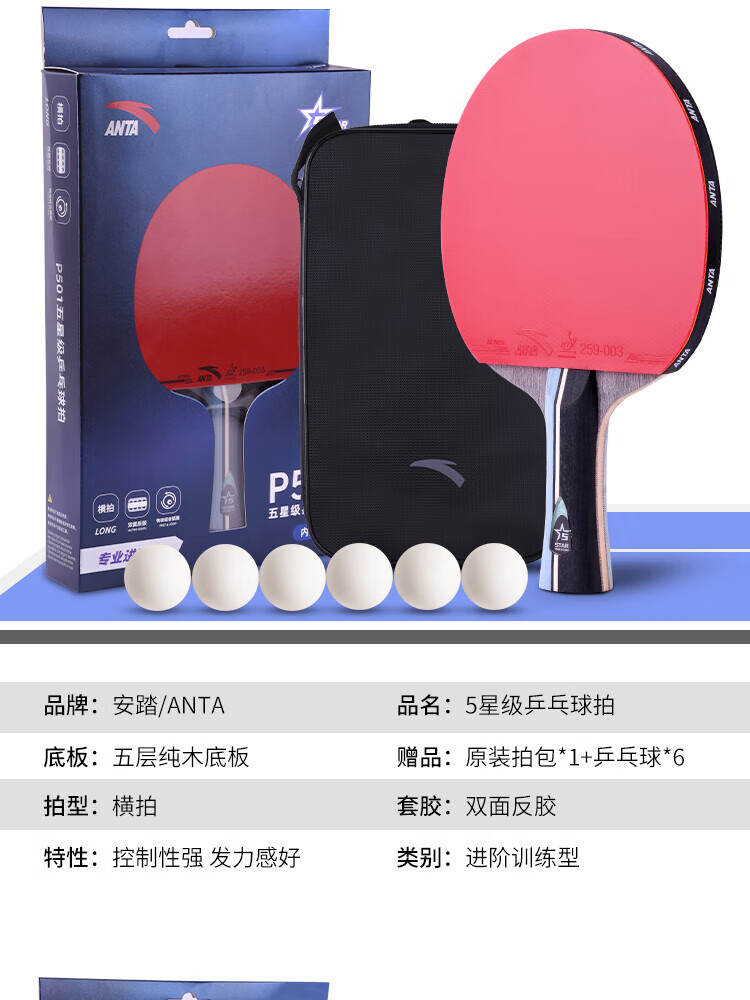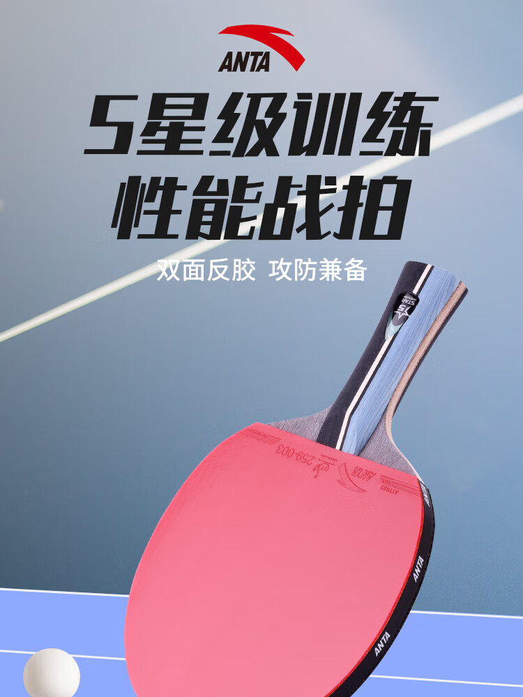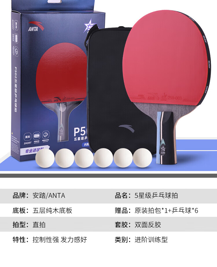 ANTA安踏乒乓球拍儿童小学生新手一星二星三星横拍直拍训练娱乐单拍 2星 直拍 送6只训练乒乓球