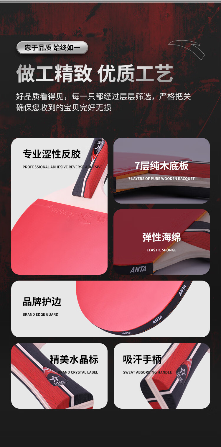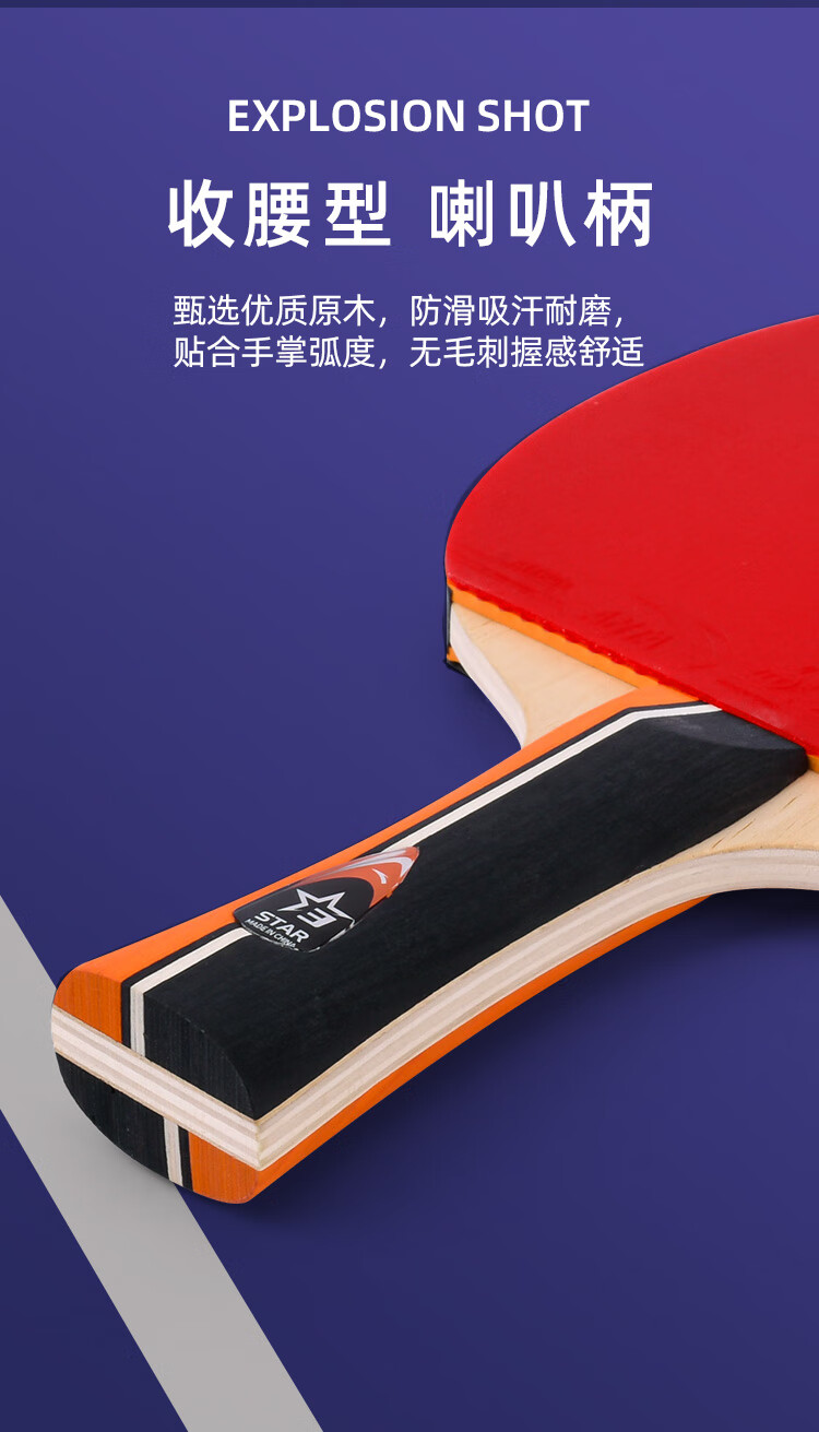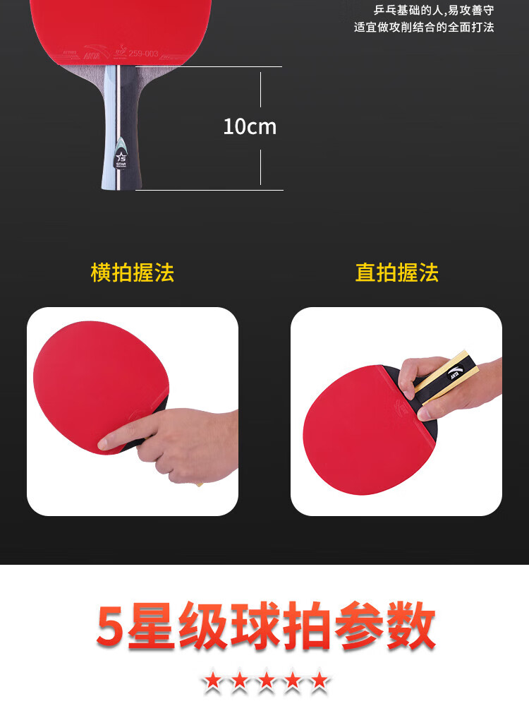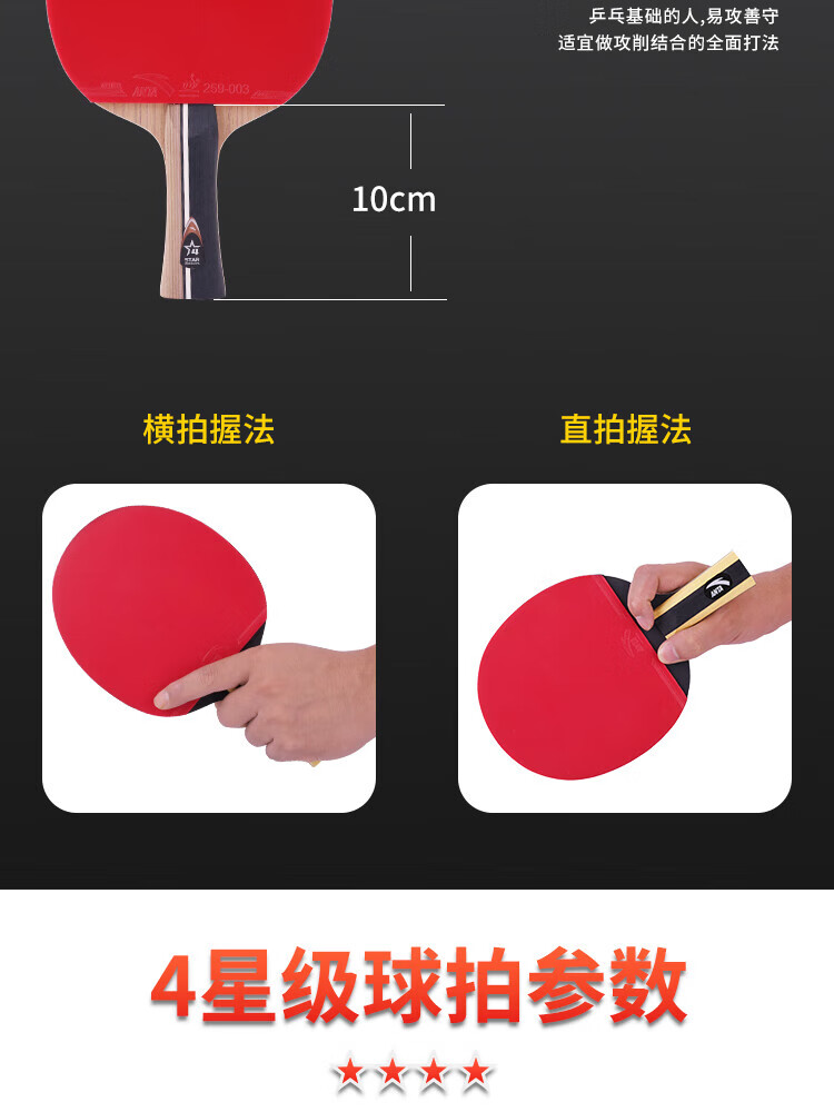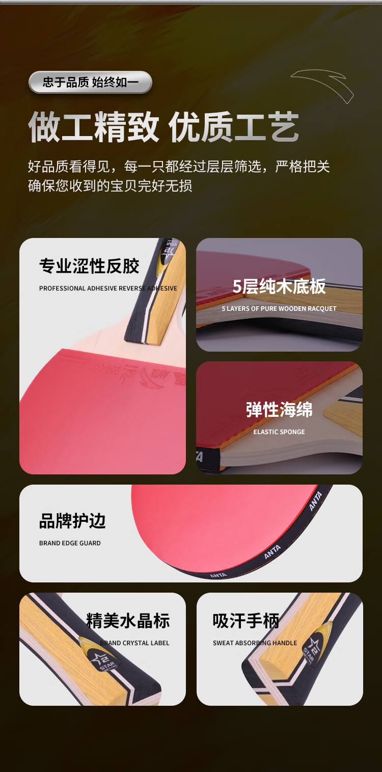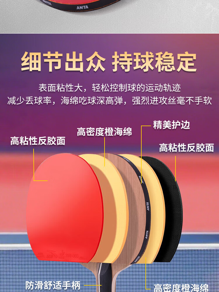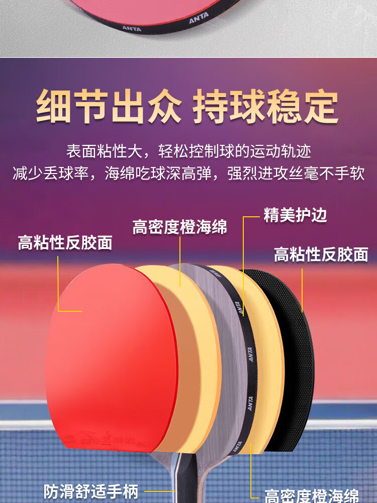 ANTA安踏乒乓球拍儿童小学生新手一星二星三星横拍直拍训练娱乐单拍 2星 直拍 送6只训练乒乓球