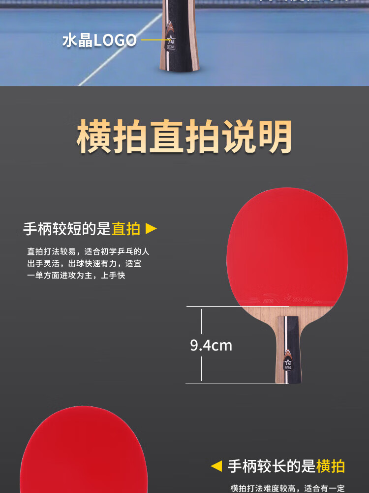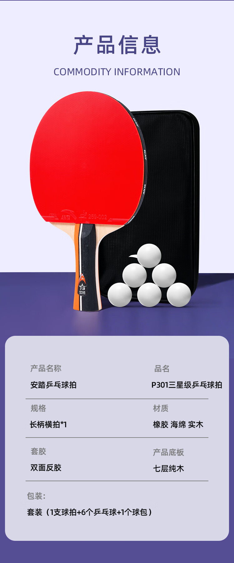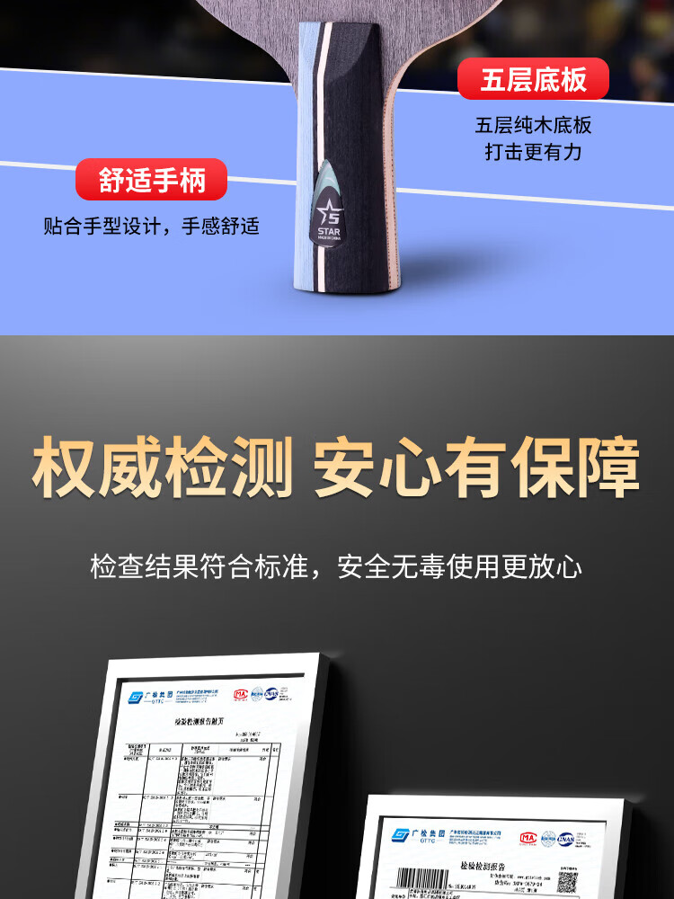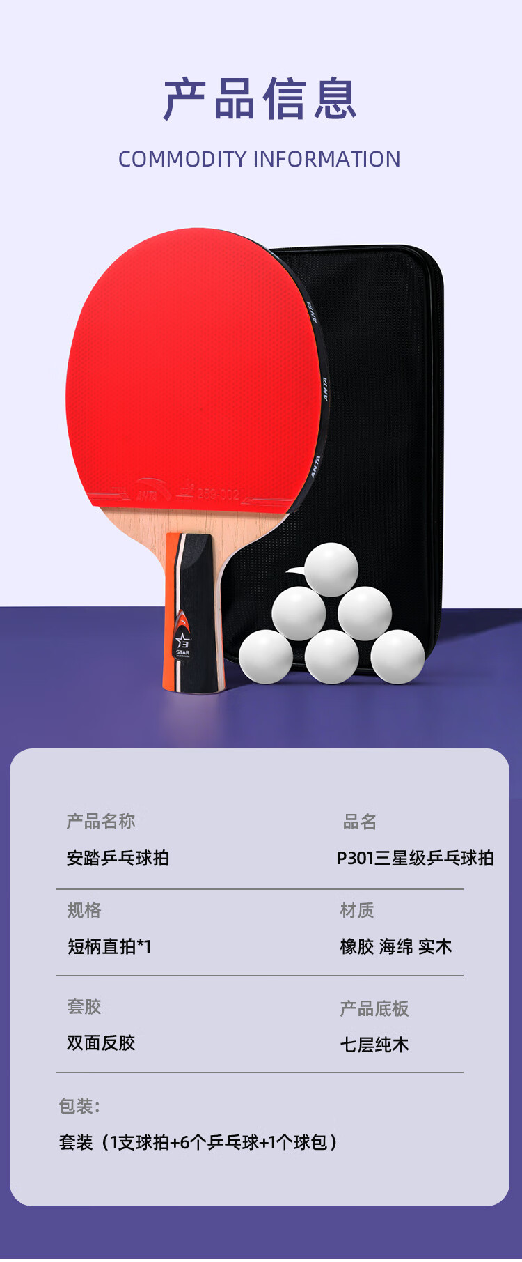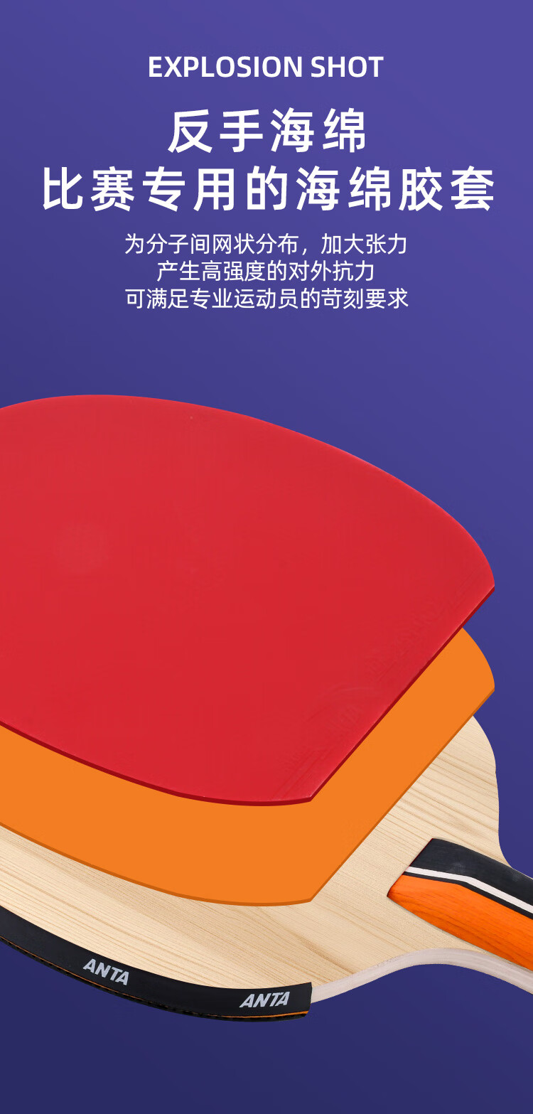 ANTA安踏乒乓球拍儿童小学生新手一星二星三星横拍直拍训练娱乐单拍 2星 直拍 送6只训练乒乓球