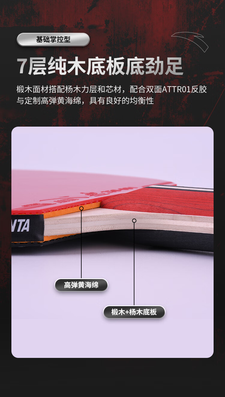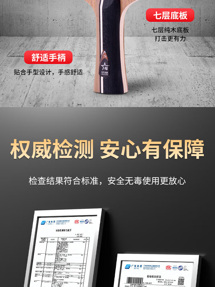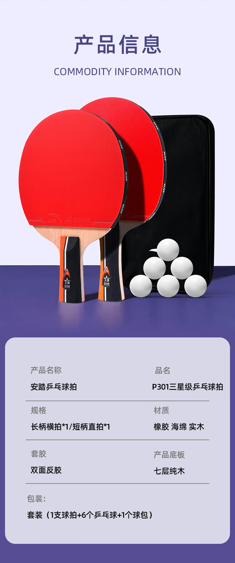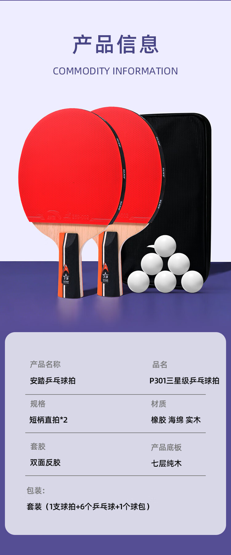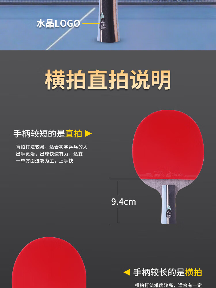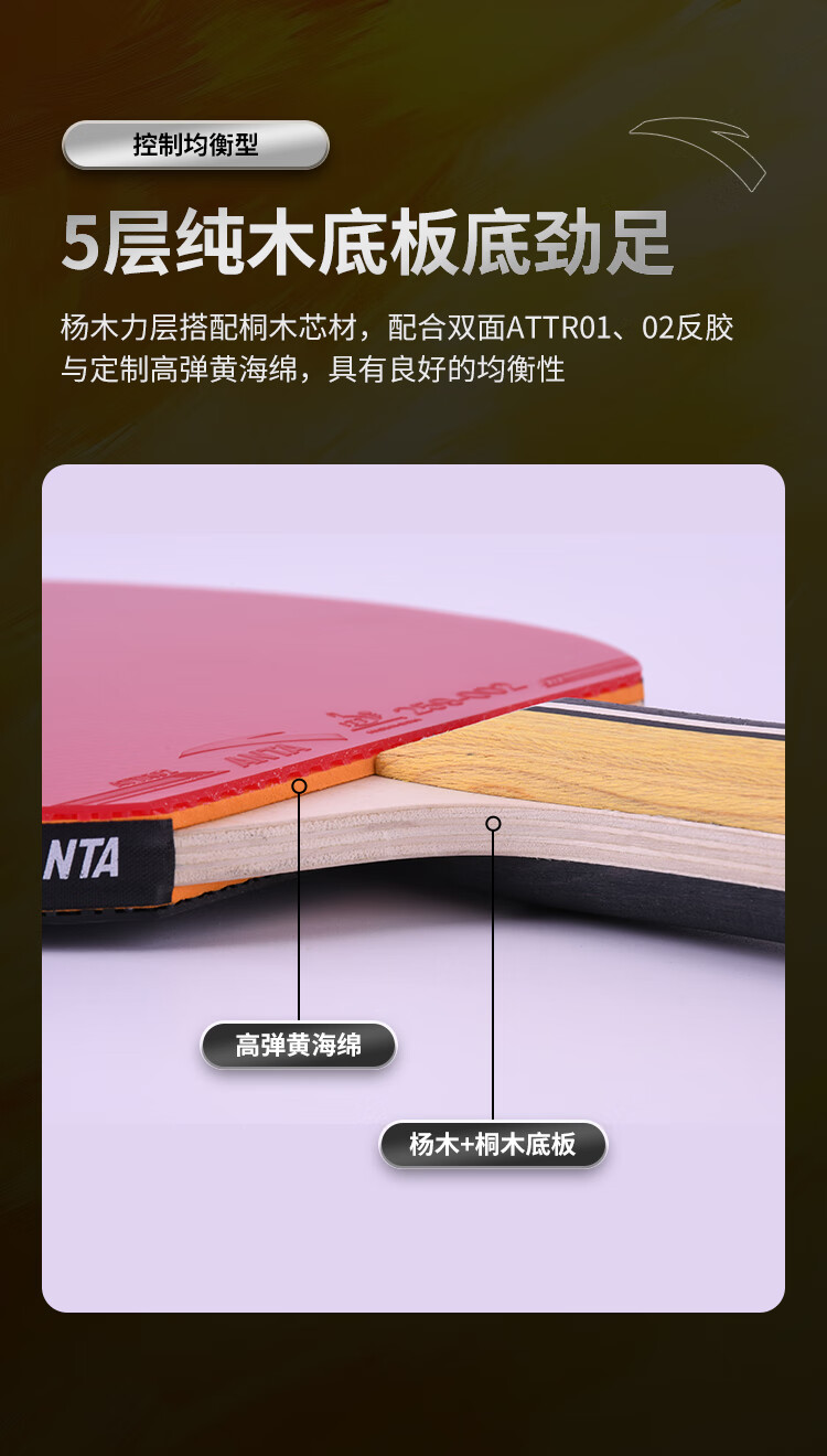 ANTA安踏乒乓球拍儿童小学生新手一星二星三星横拍直拍训练娱乐单拍 2星 直拍 送6只训练乒乓球