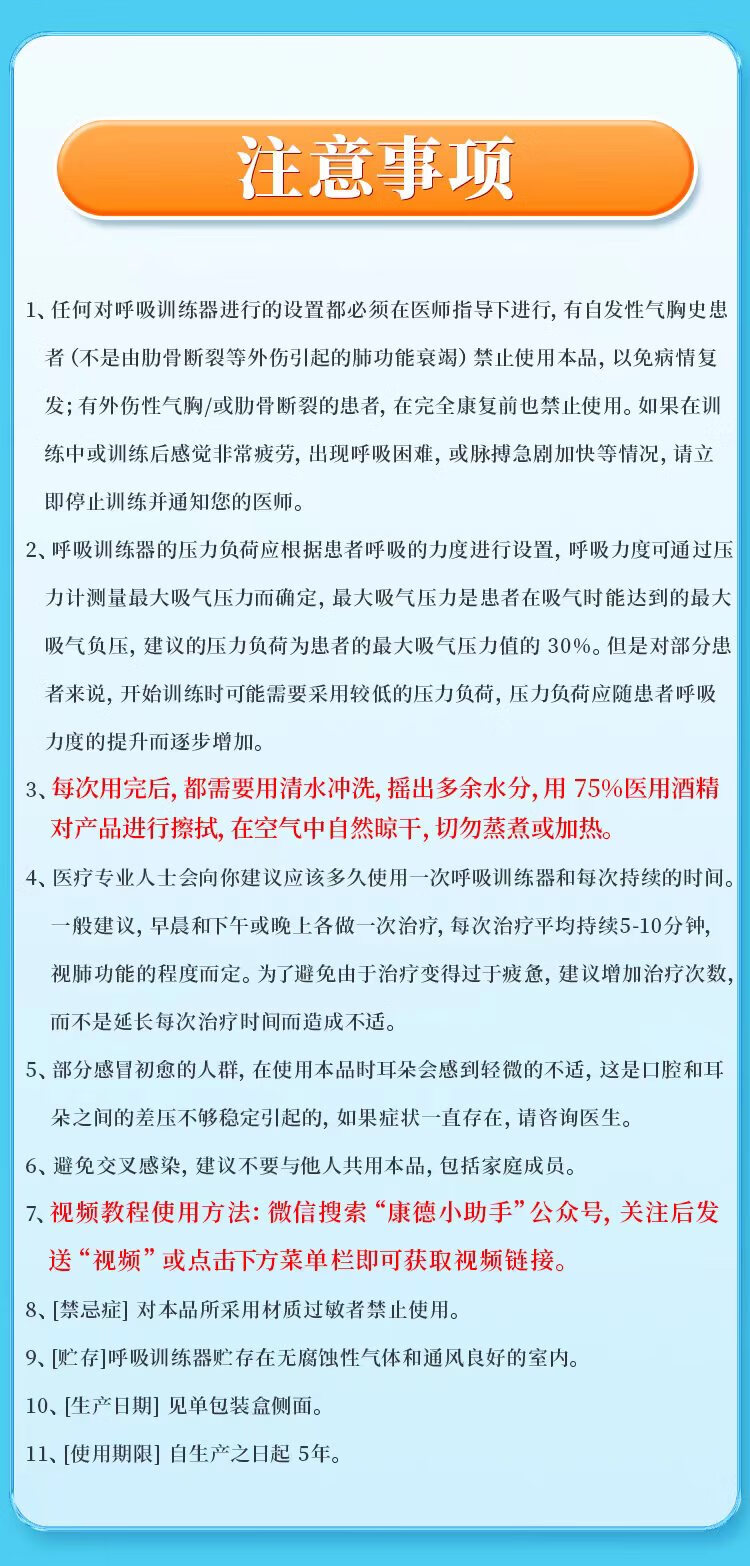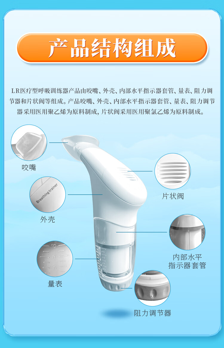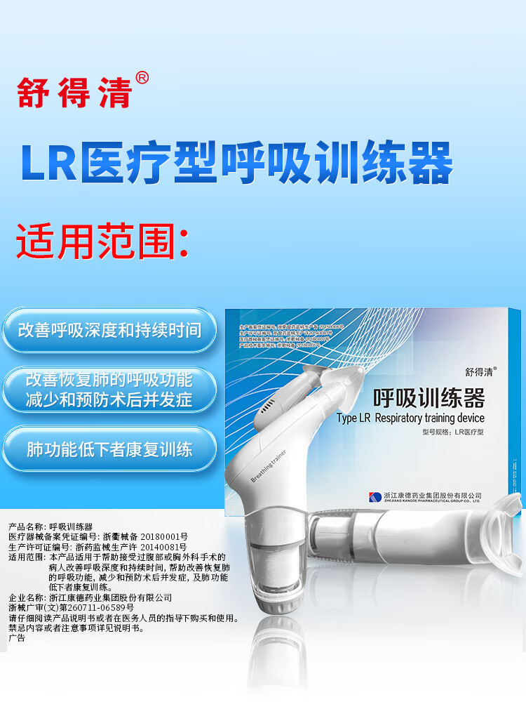 舒得清 LR医疗型 呼吸训练器吸气阻力练习肺活量锻炼肺功能术后康复训练