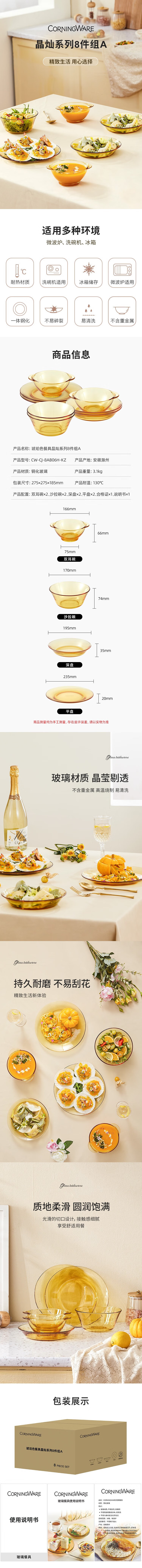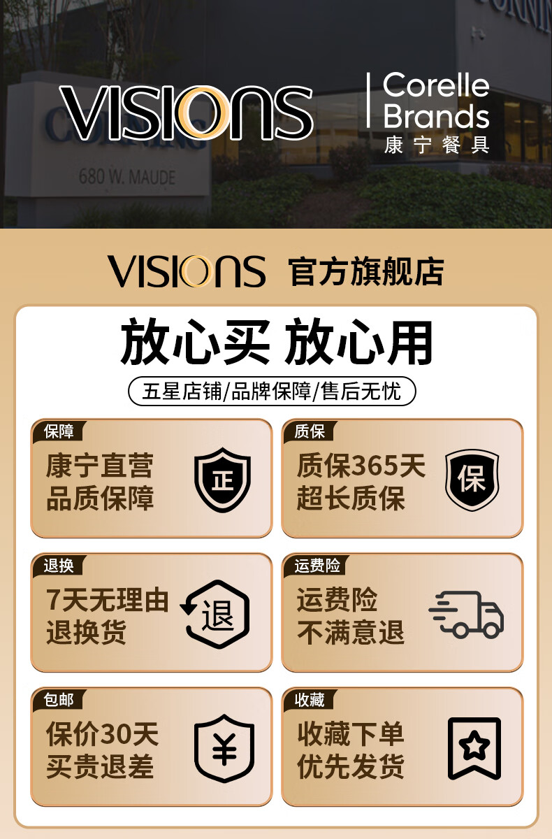 VISIONS康宁晶灿镜面系列饭面碗汤碗玻璃碗耐高温沙拉碗蝶餐具套装家用 晶灿系列-双耳小碗 2件套