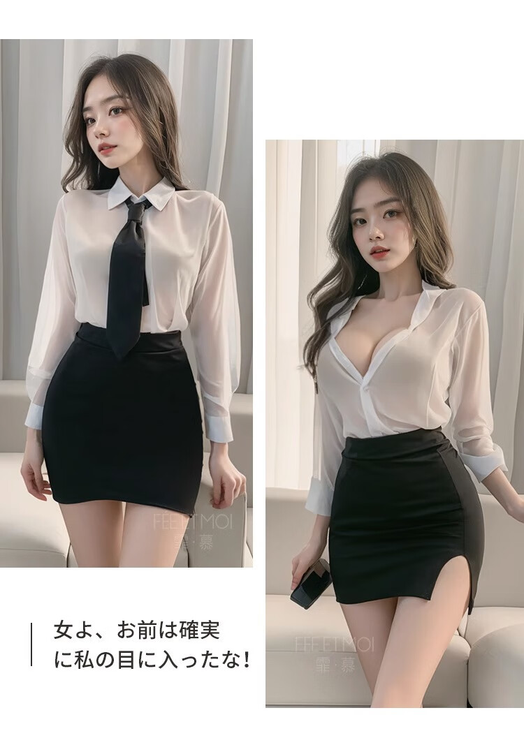 PZKB黑丝秘书制服情趣职业装情侣约会战衣战袍性感内衣诱惑女教师包臀 性感秘书+牵引绳+黑丝袜 3XL【160-200斤】