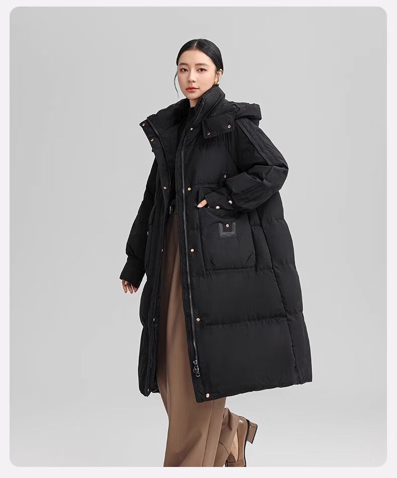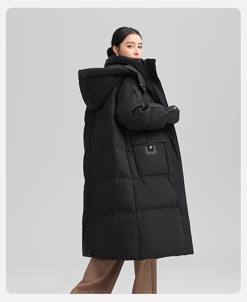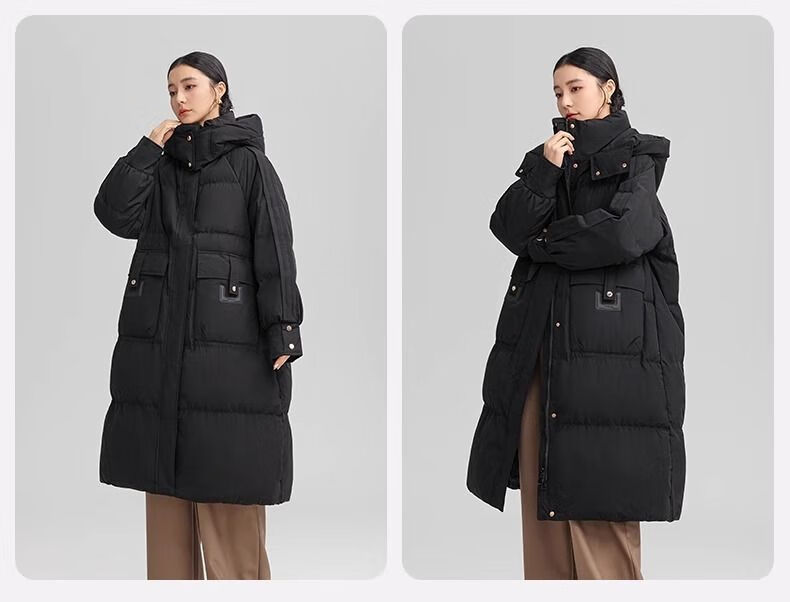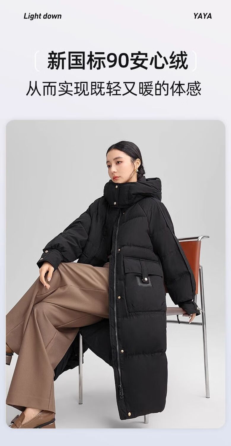 鸭鸭(YAYA)羽绒服女2025年冬季新品长款连帽时尚百搭加厚保暖休闲外套 黑色 M