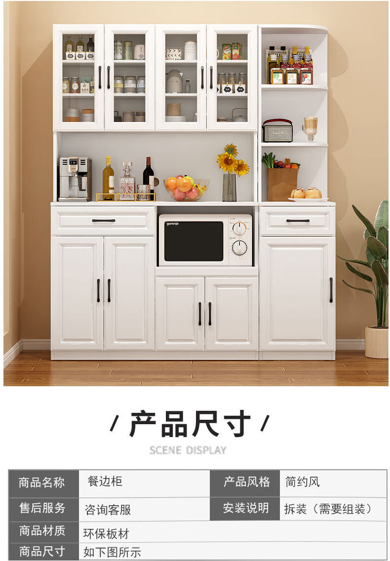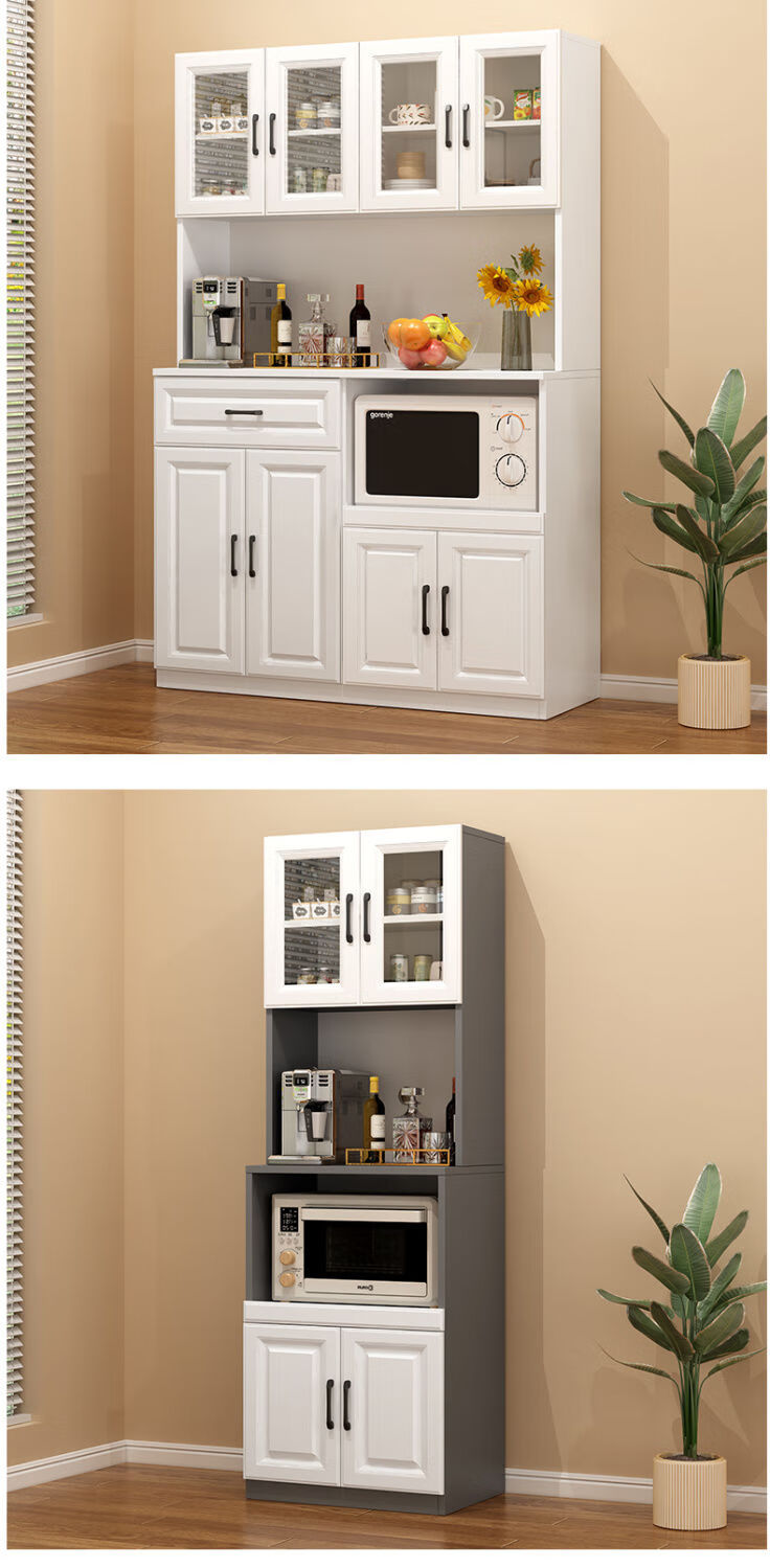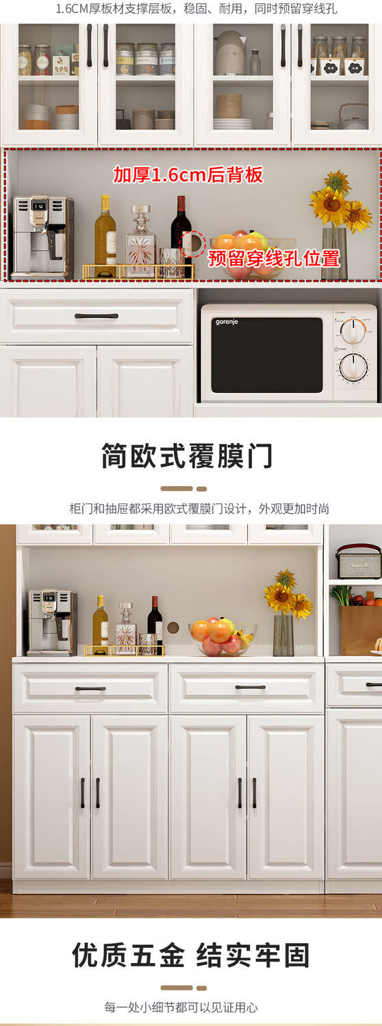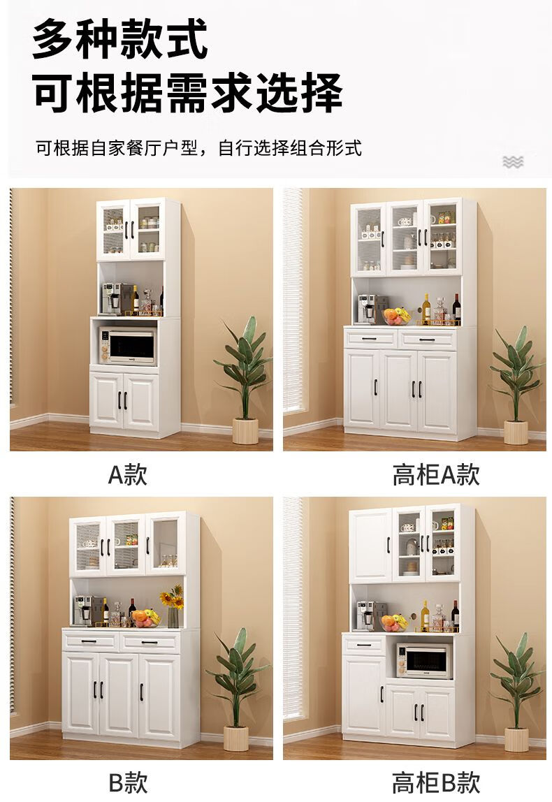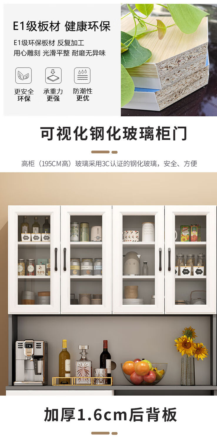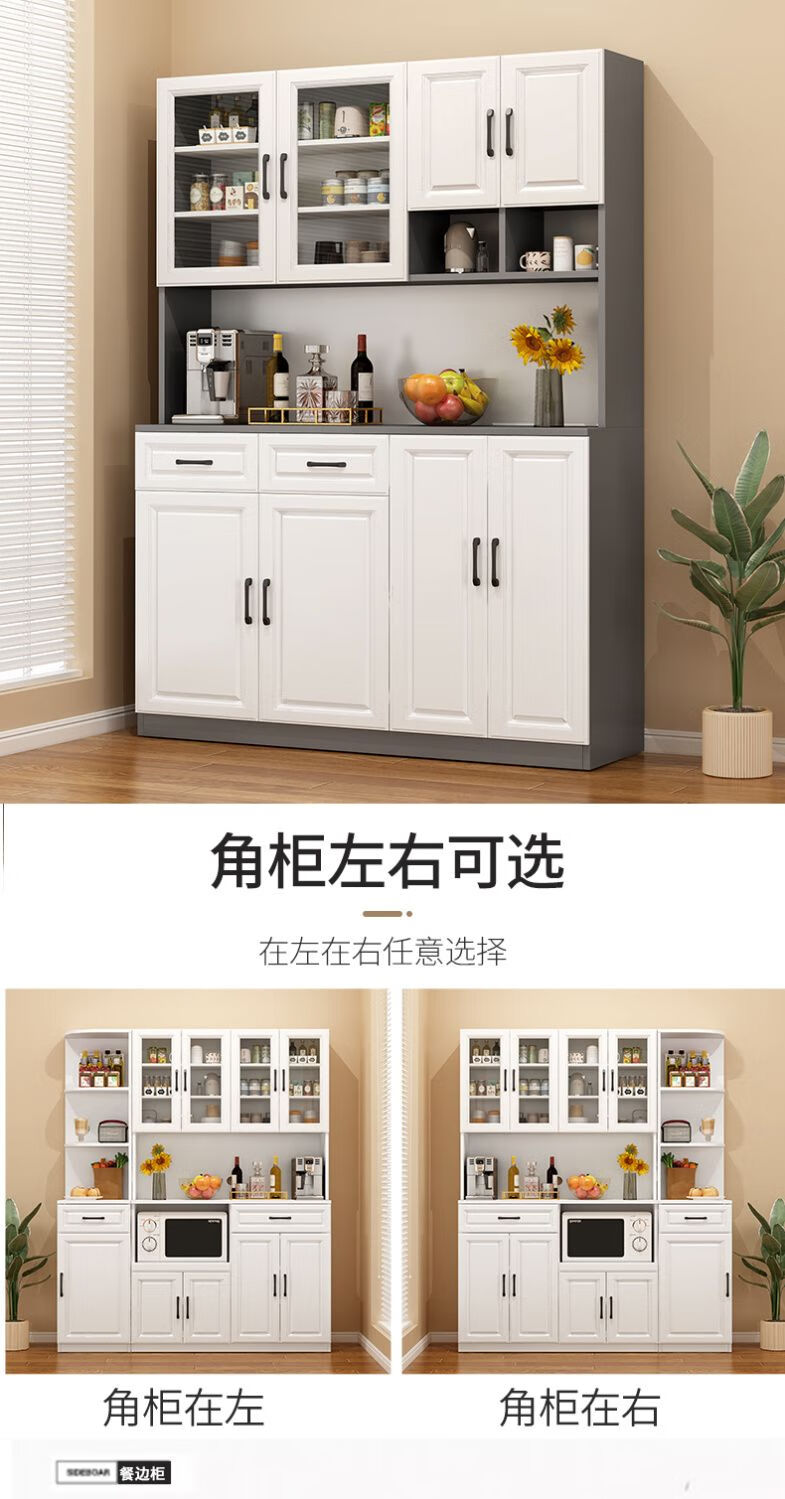 奢概念2026新款餐边柜一体靠墙高低柜子简易茶水柜客厅置物柜厨房储物柜 B款高级灰+暖白 现货即发 送货入户