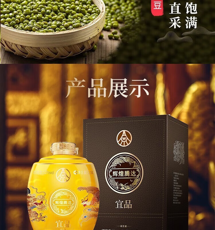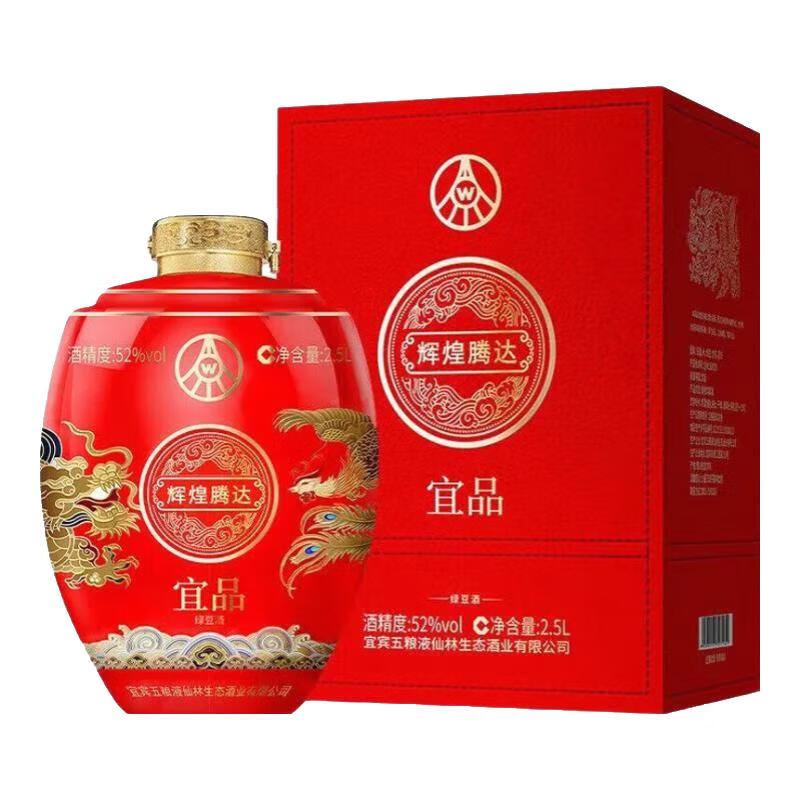 五粮液仙林生态出品 口粮酒礼盒装 52度 2.5L 1坛 红坛 绿豆酒