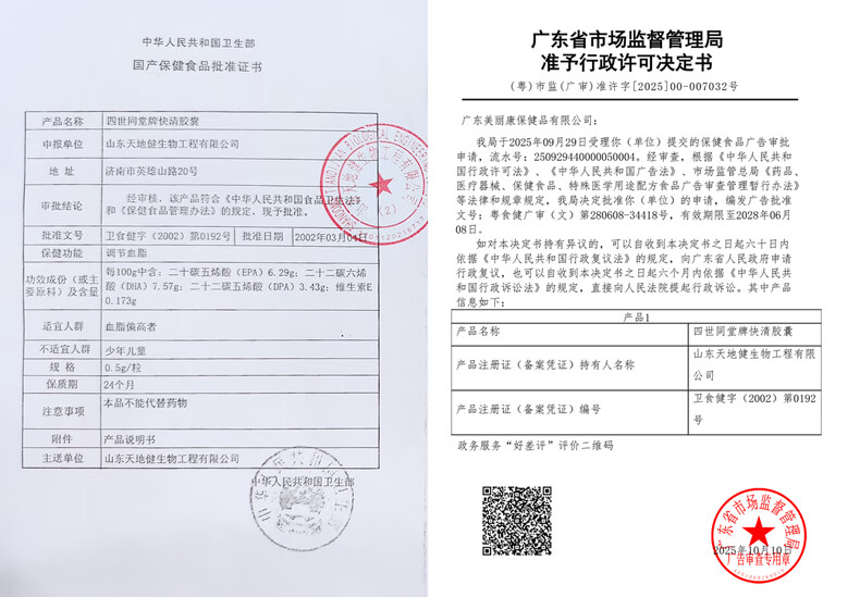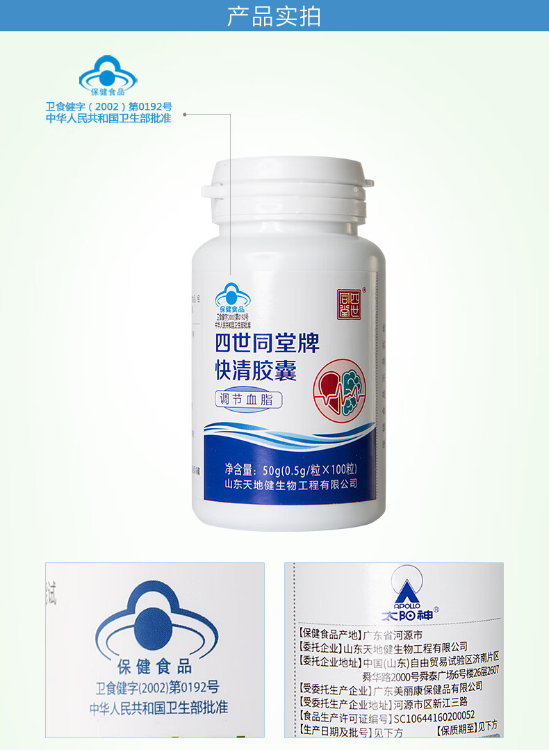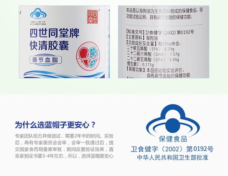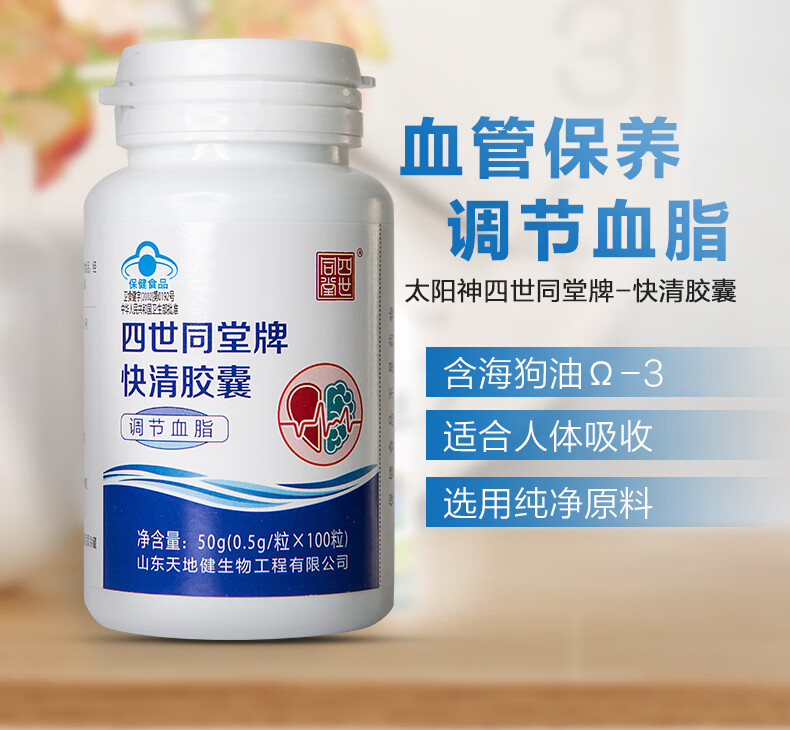 太阳神四世同堂海狗油快清胶囊100粒装中老年三高血脂高调节降血脂 快清胶囊 100粒*2瓶