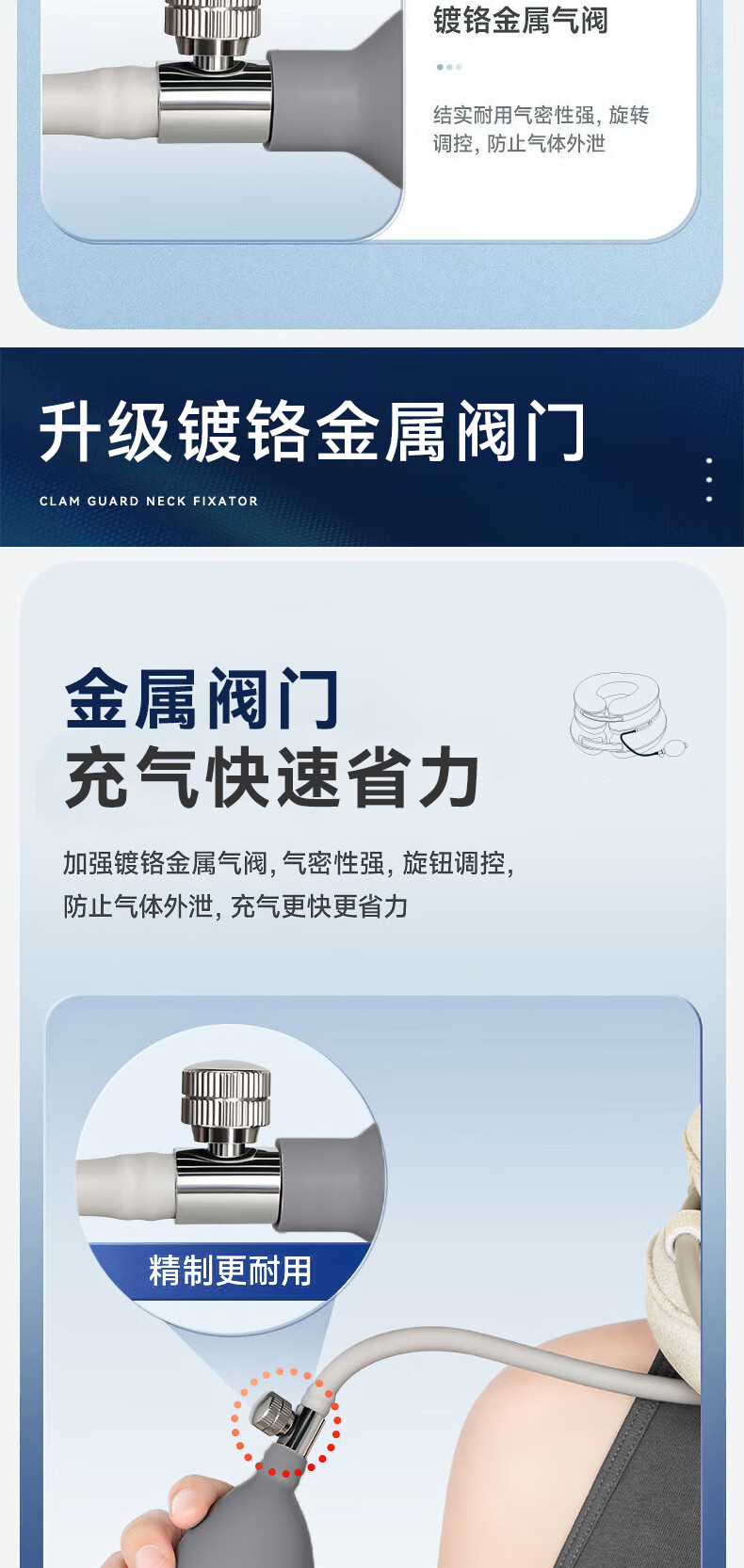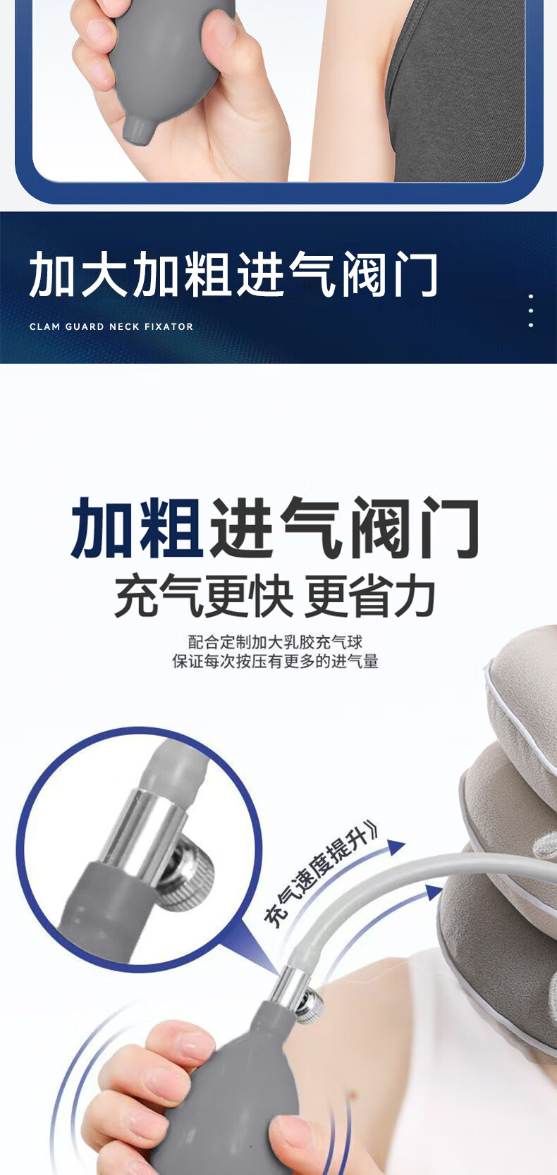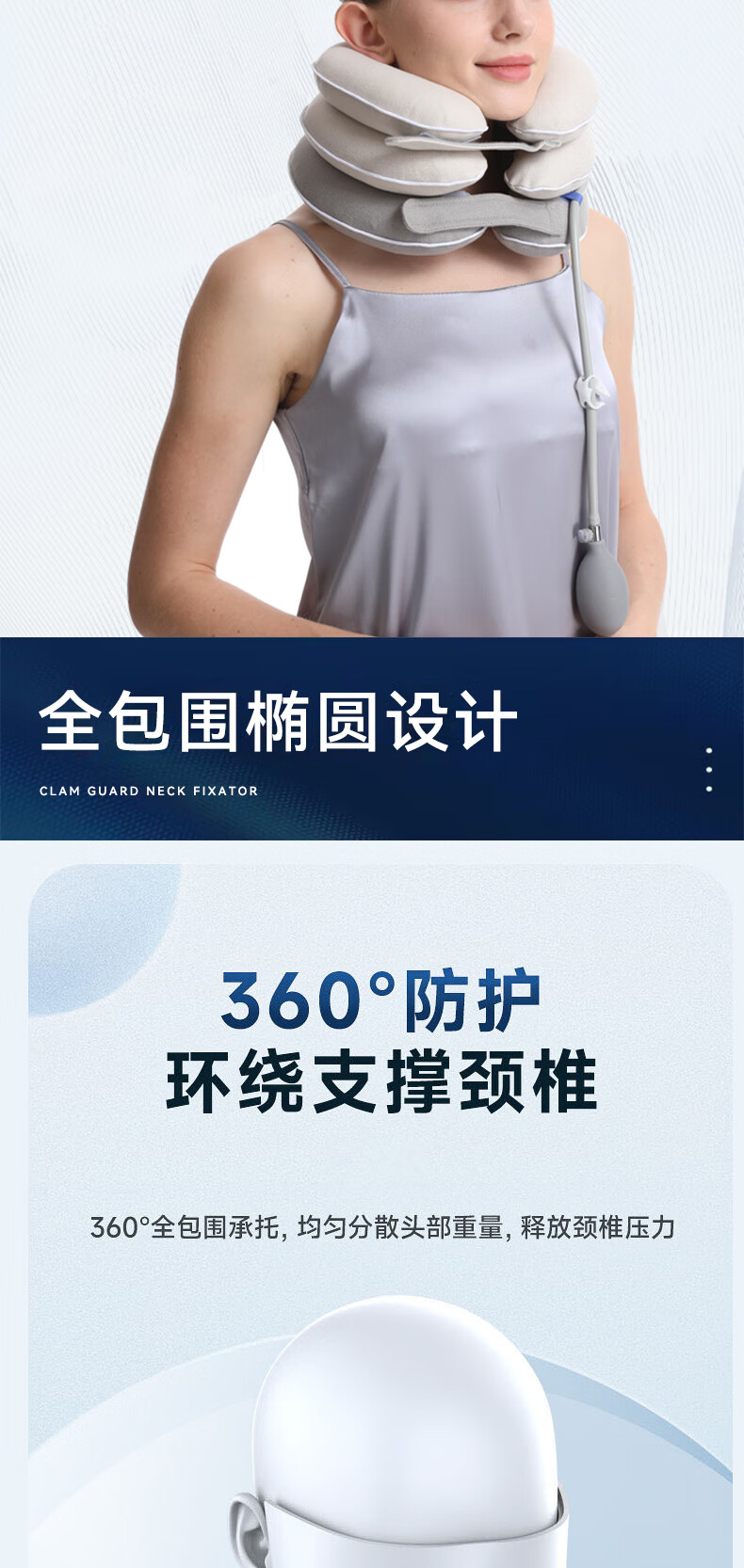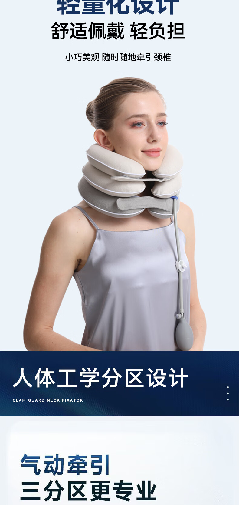 蛤利卫士医用颈椎牵引器颈托颈椎矫正器护颈椎手动充气护颈固定升级款3层 卡其色【三区气动牵引+TPU气囊升级】