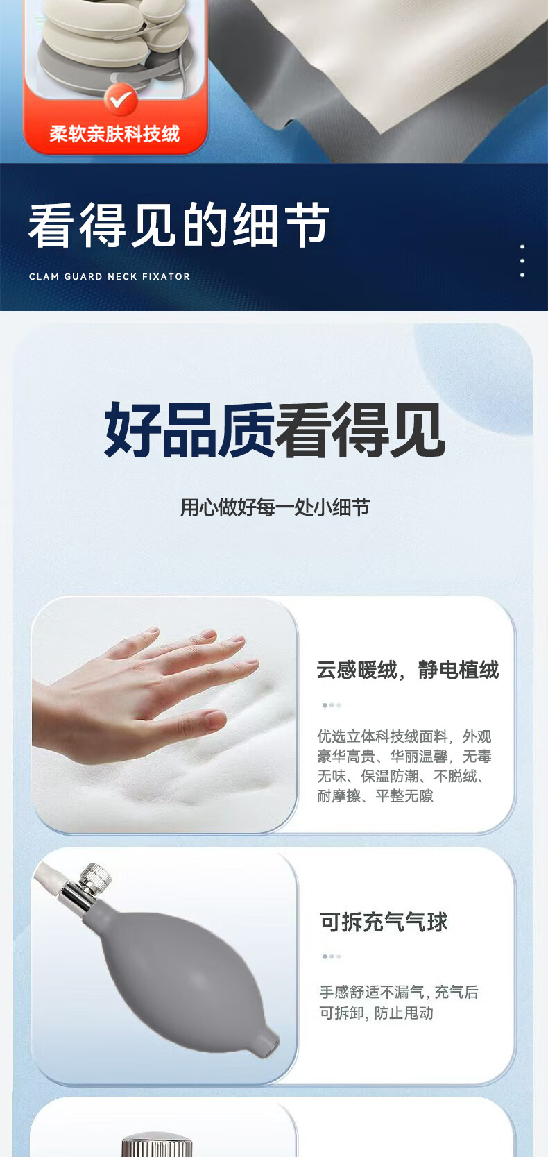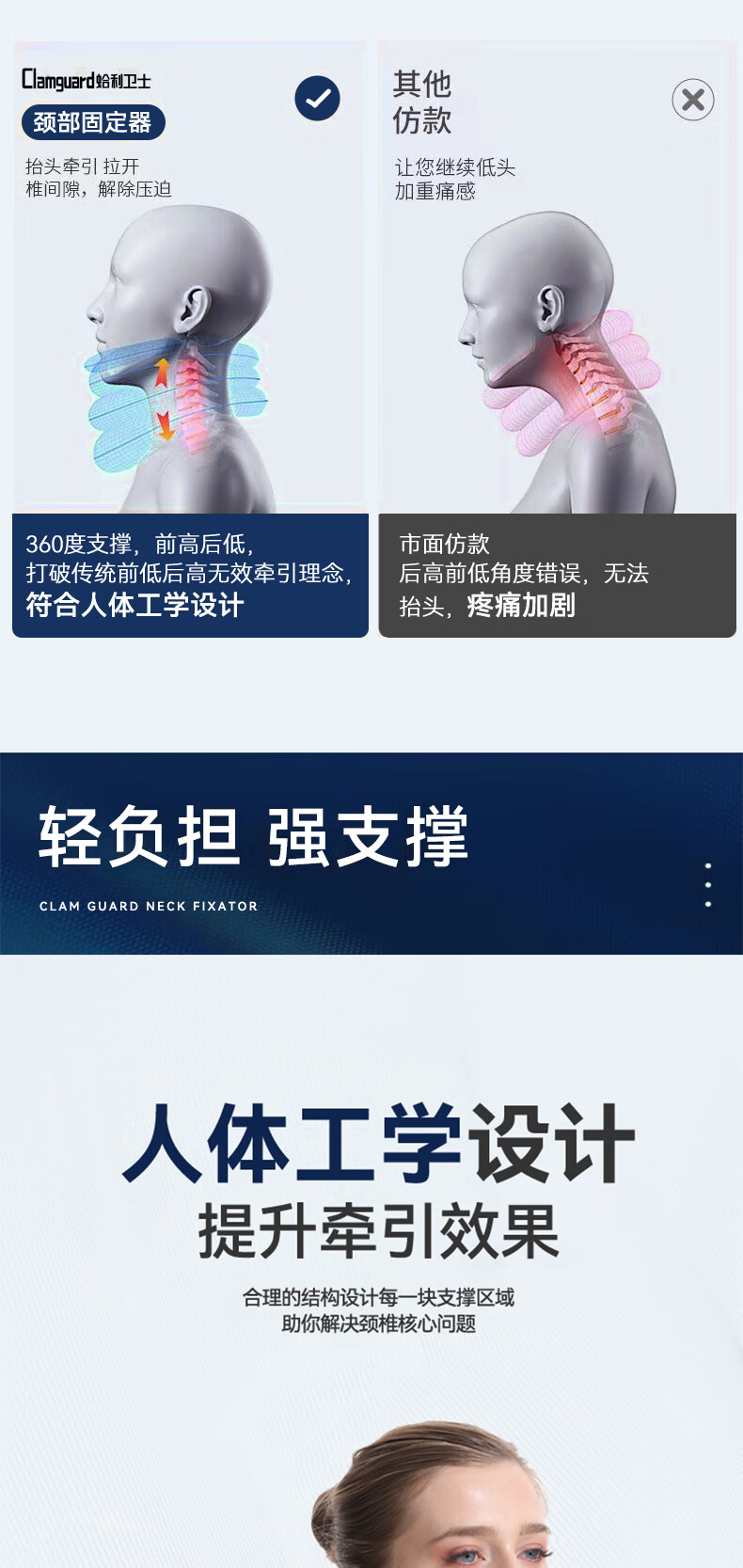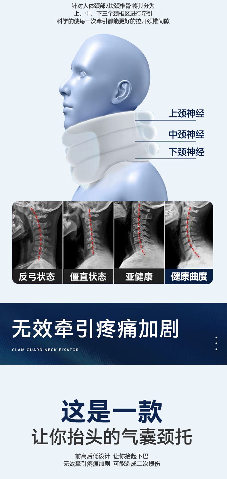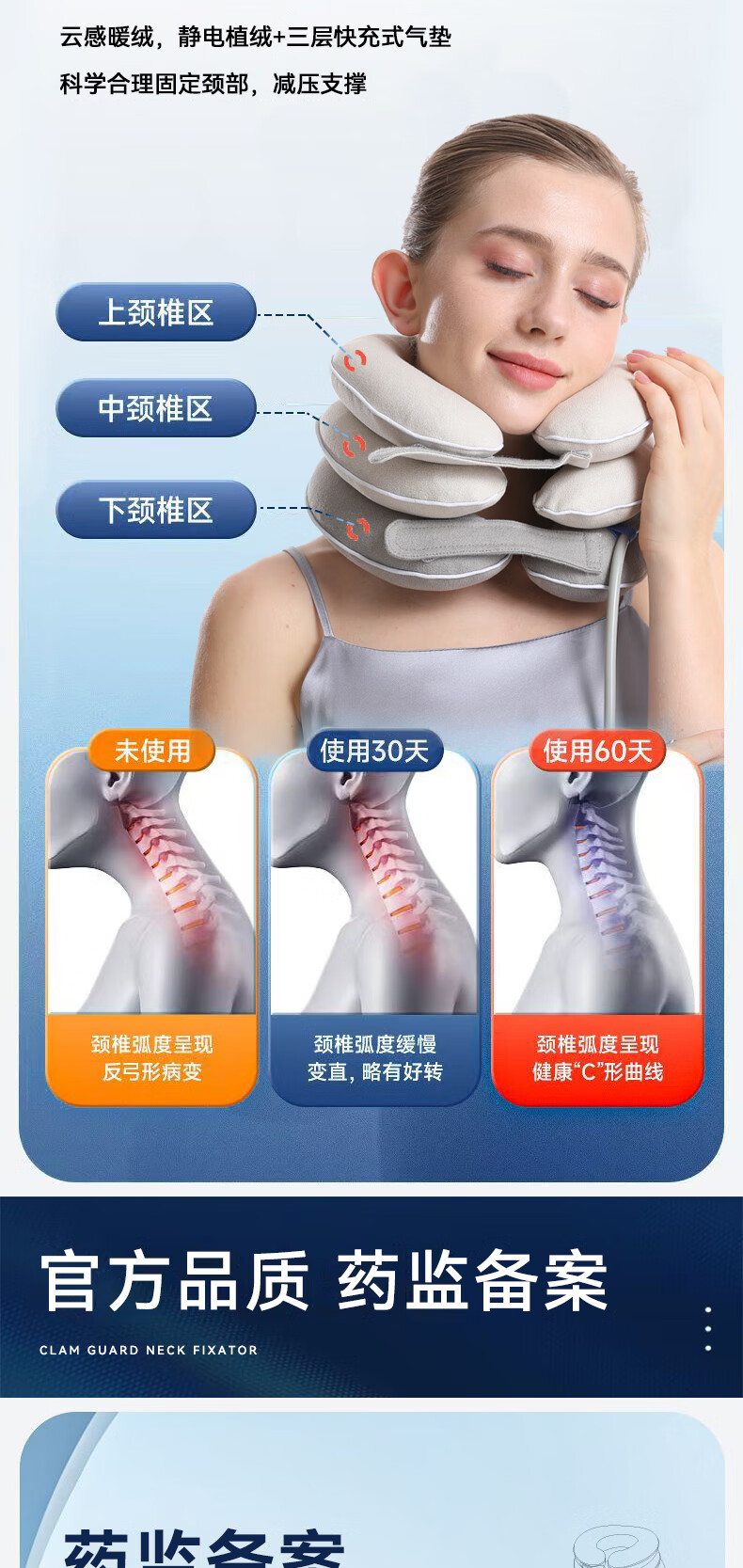 蛤利卫士医用颈椎牵引器颈托颈椎矫正器护颈椎手动充气护颈固定升级款3层 卡其色【三区气动牵引+TPU气囊升级】