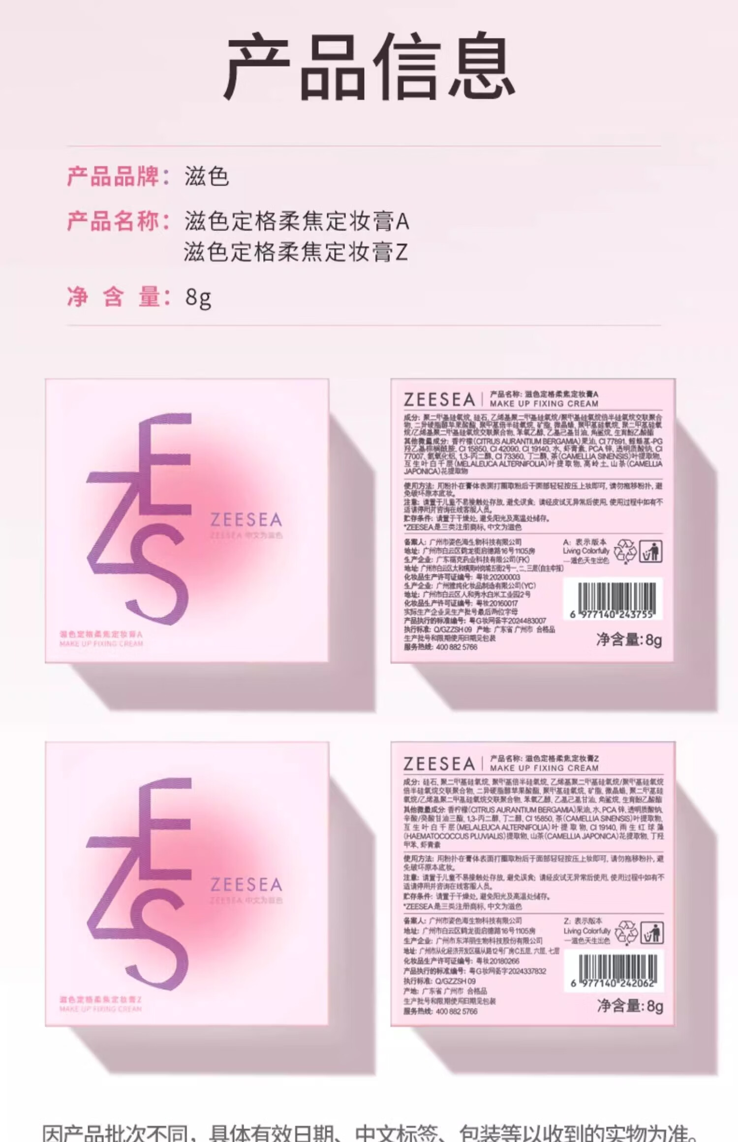 ZEESEA滋色蜜粉饼定妆膏控油遮瑕定妆散粉姿色埃及干粉饼持久保湿底妆 重磅新品定妆膏0粉感 8g