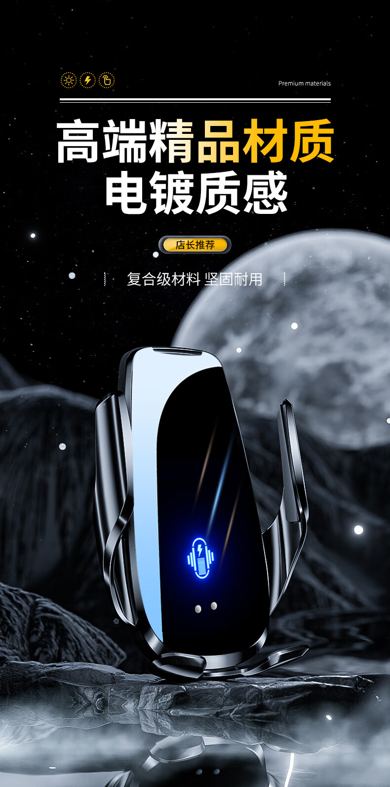 第三感全自动真空吸附金属磁吸旋转车载手机支架汽车桌面直播电动支架 全自动真空吸附金属磁吸旋转支架【玄锖黑】