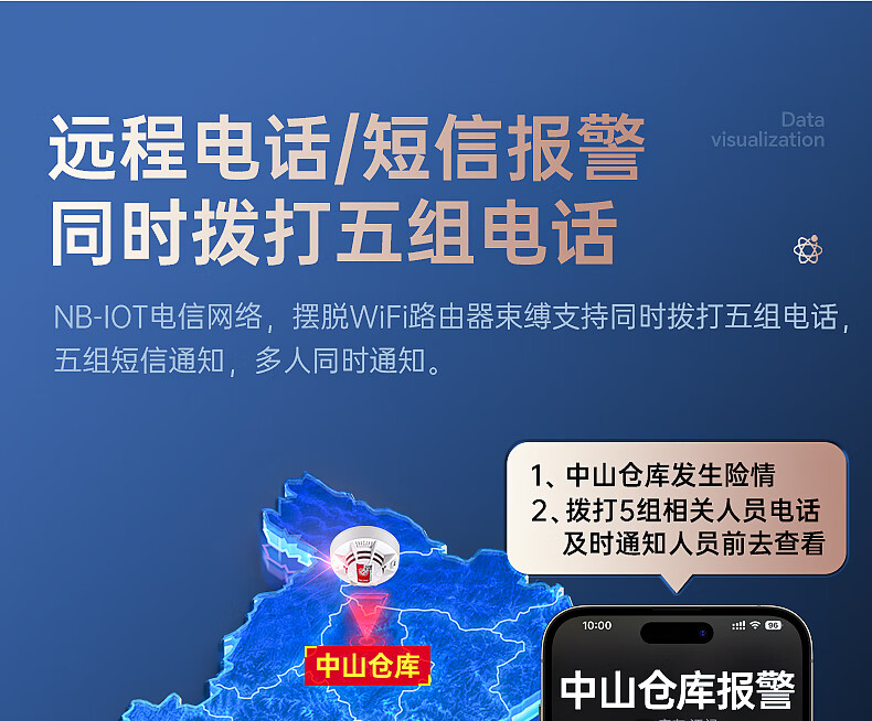 立可安WiFi智能烟雾报警器远程连接手机4G商用火灾消防烟感器电话通知 【4G版】无线烟温一体报警器