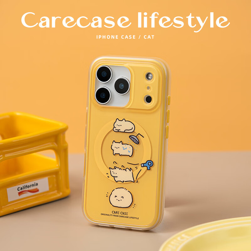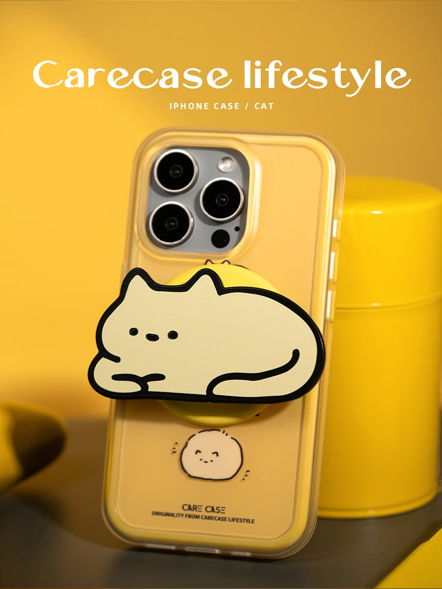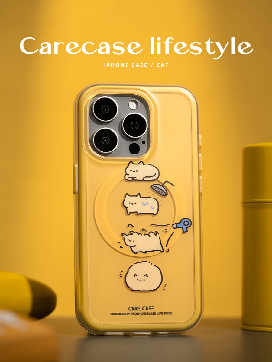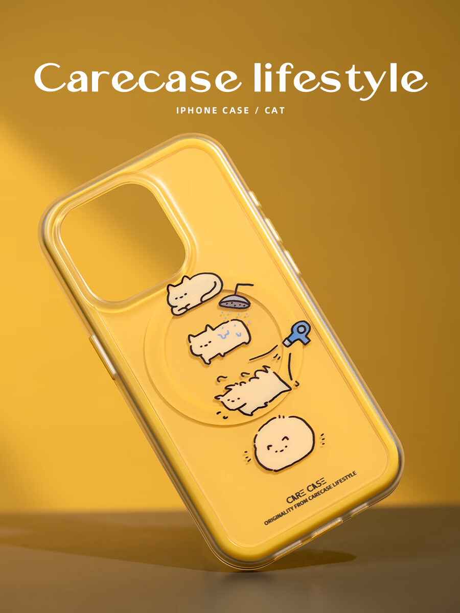 CARE CASE烘干猫咪二合一磁吸磨砂手机壳 适用于苹果iPhone17 16 15 14 ProMax 原创设计 创意可爱卡通有趣 说明选项:磁吸支架型号通用 iPhone 16 plus