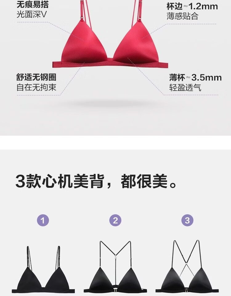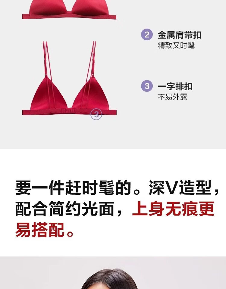 芬狄诗【莫吉托】内衣女bralette三角杯小胸细肩带美背红色文胸 绯色悸动BGY-常规款 L