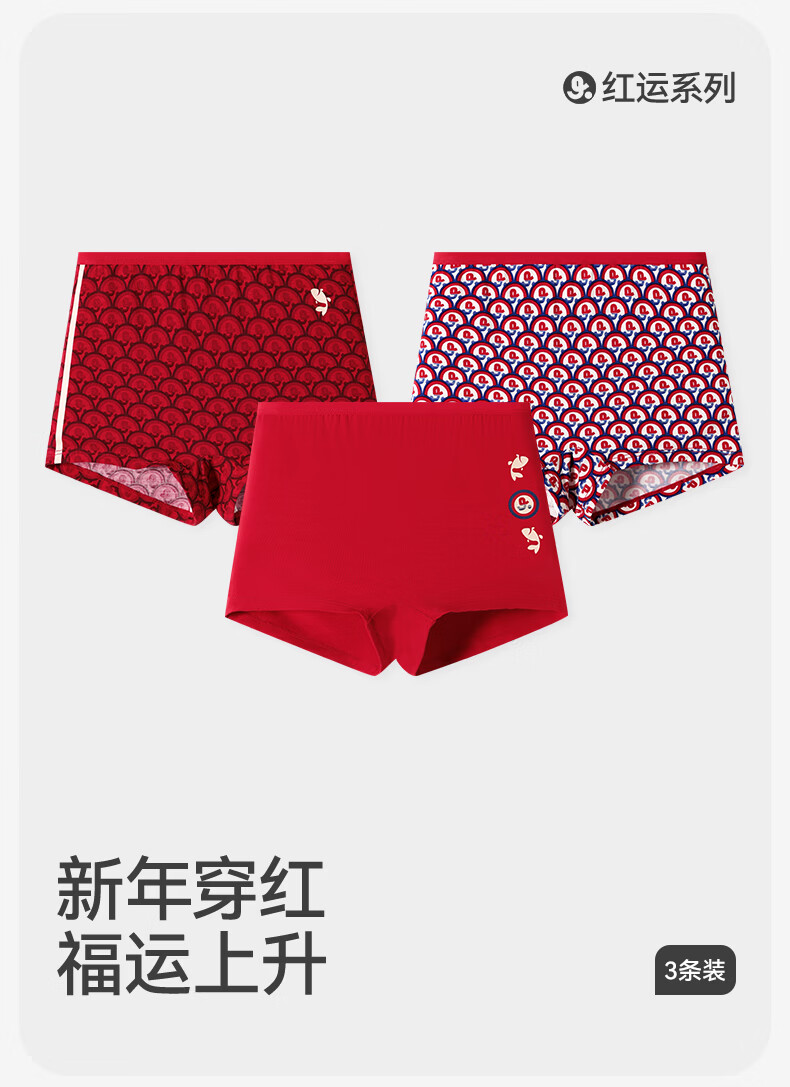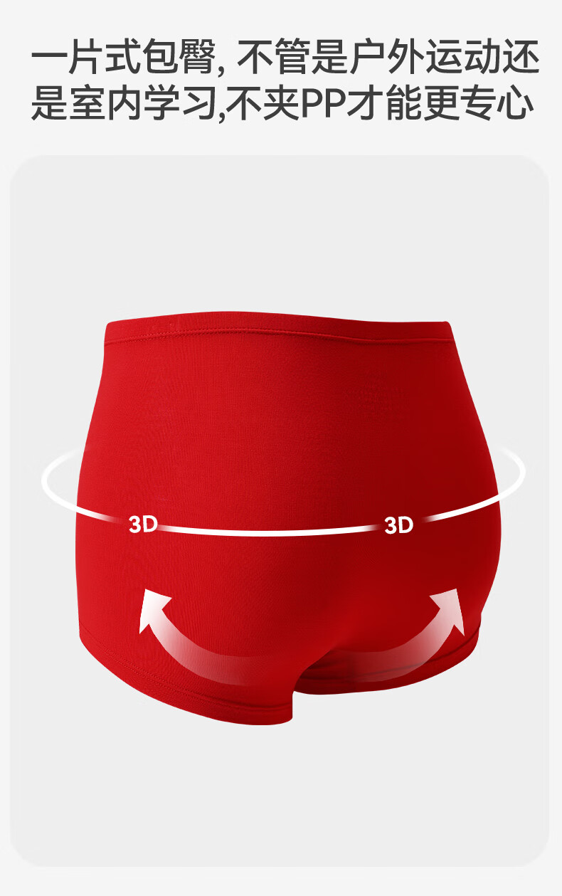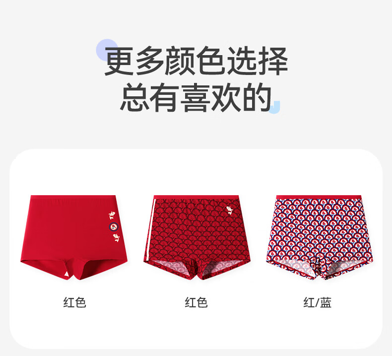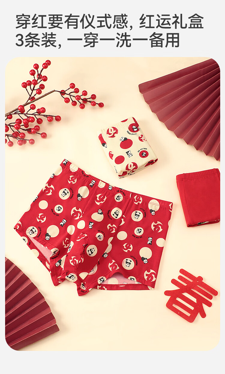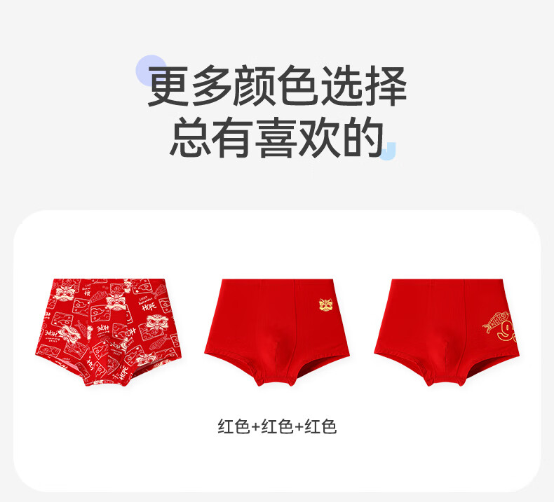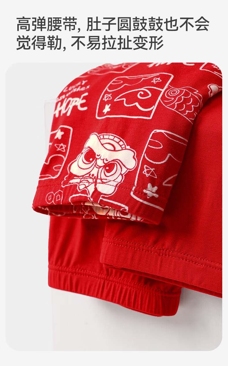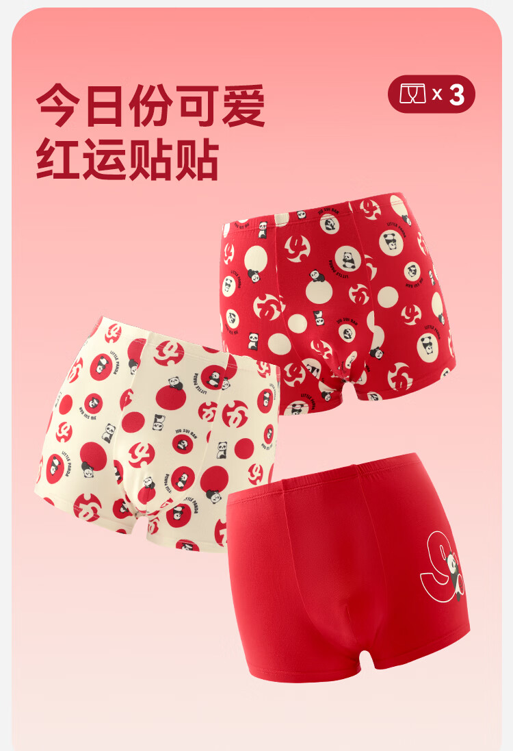 久岁伴【跨年同款】儿童大红色内裤本命年男女童平角裤新年大童四角短裤 男童/405101款/ 3条 170 /身高160-172体重105-120斤