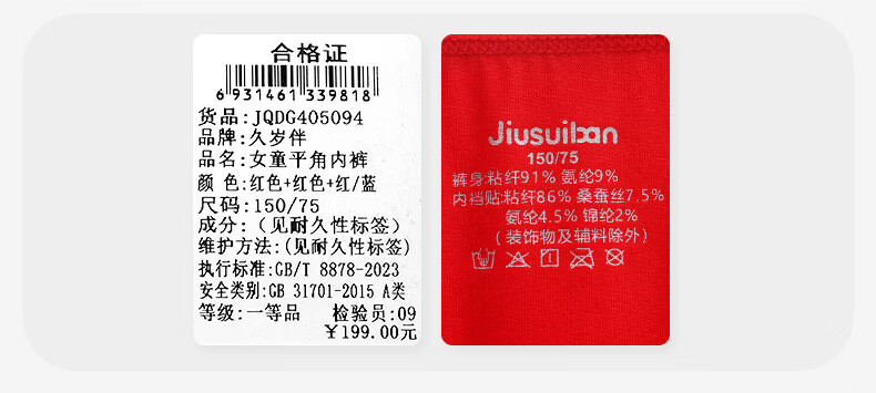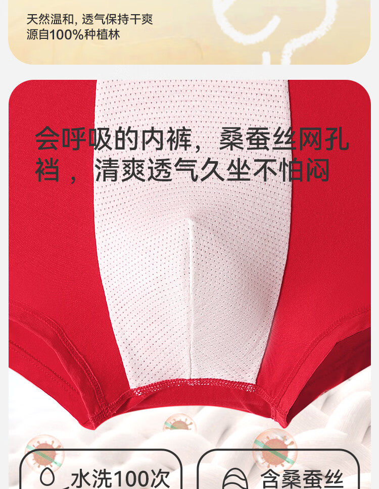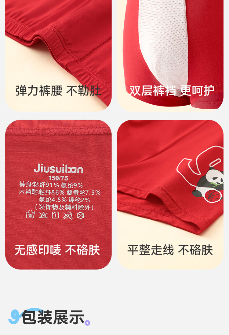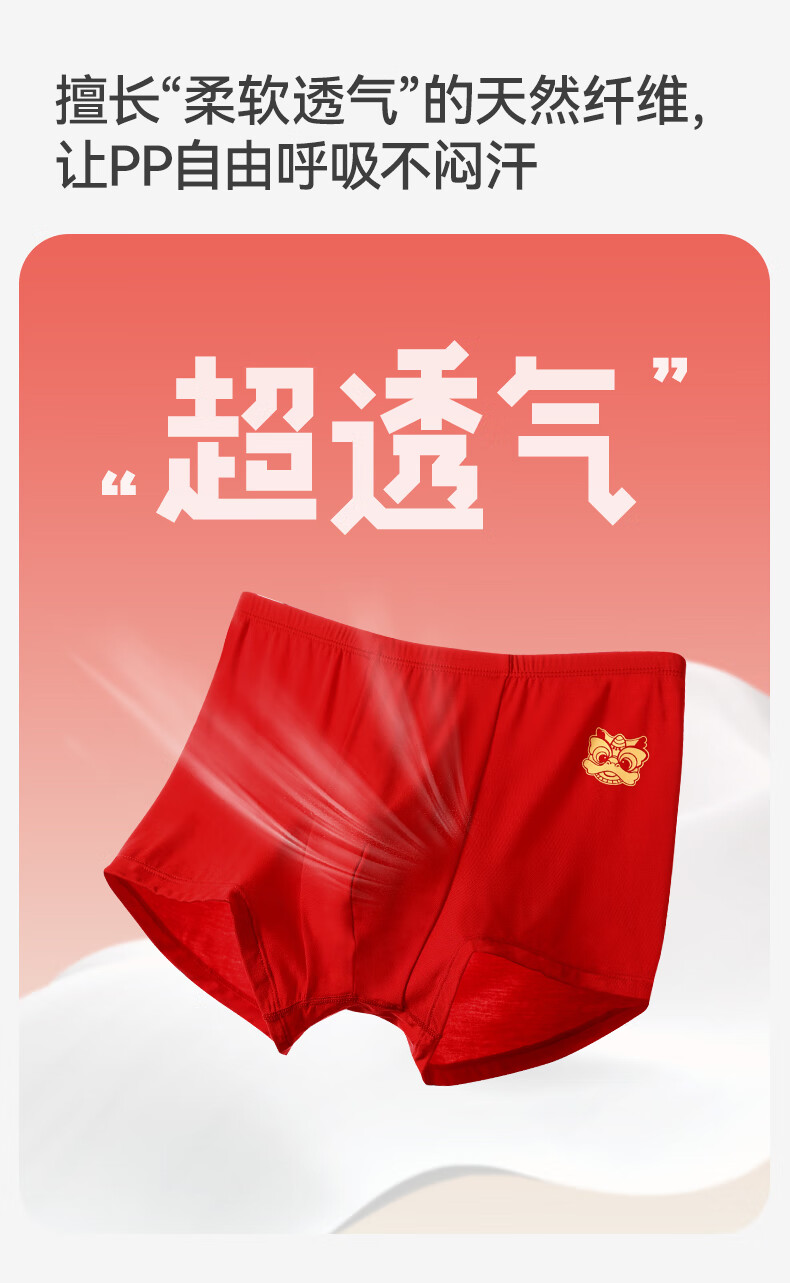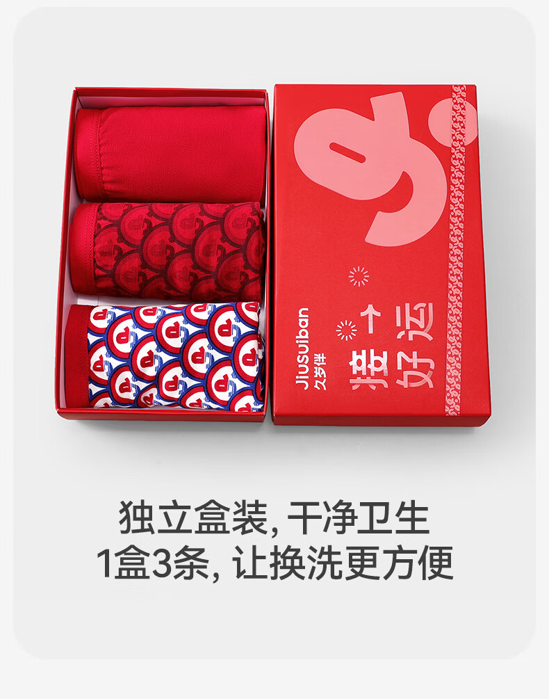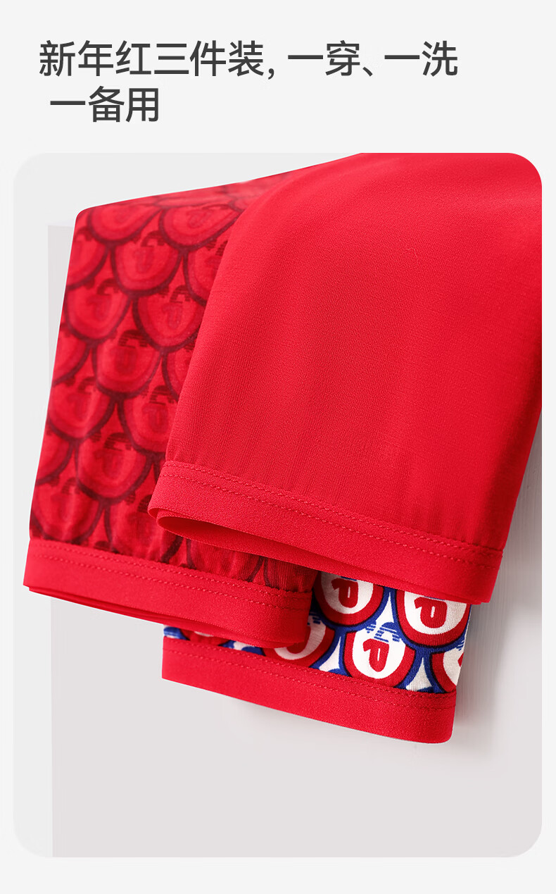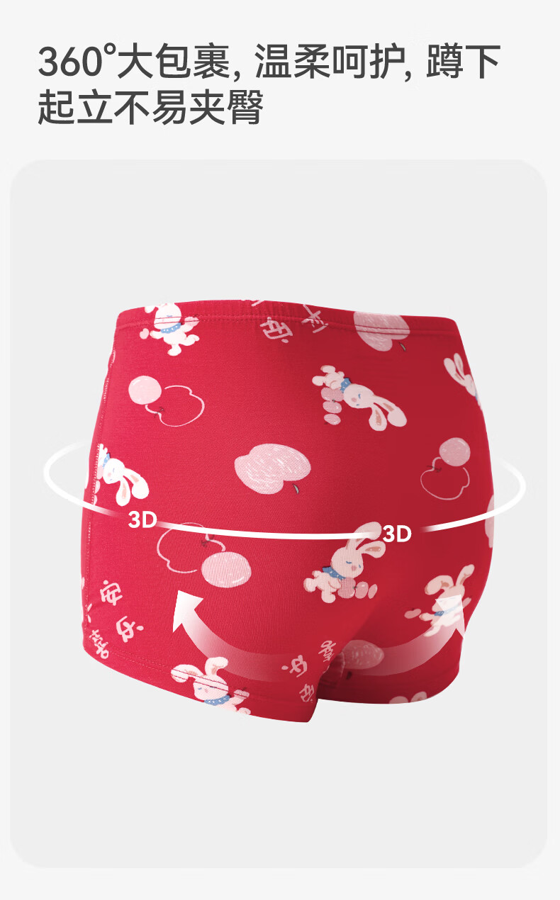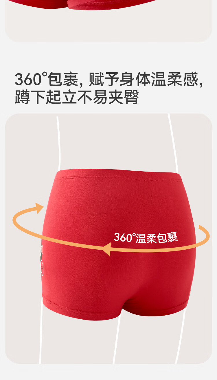 久岁伴【跨年同款】儿童大红色内裤本命年男女童平角裤新年大童四角短裤 男童/405101款/ 3条 170 /身高160-172体重105-120斤