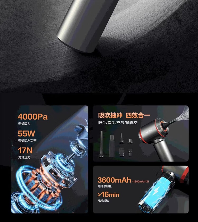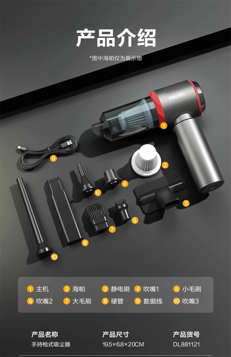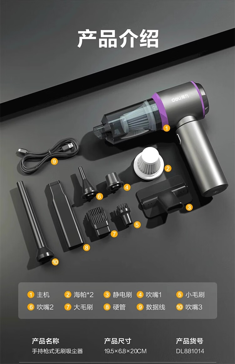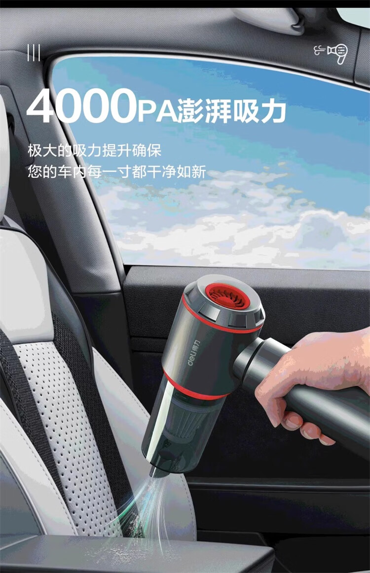 得力(deli)车载吸尘器无线吹吸一体大吸力车家两用手持大功率缝隙除尘便携式吸尘器 4000pa手持有刷吸尘器