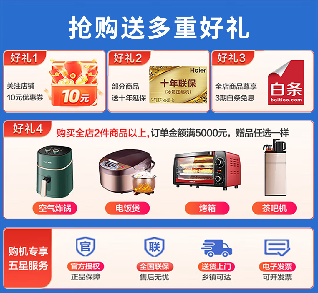 海尔冰箱家用三开门风冷无霜双开门超薄一新等级能效冰箱小型小冰箱制冰冷柜以旧换新冰箱补贴 219升三门节能微霜冰箱金色三门三温