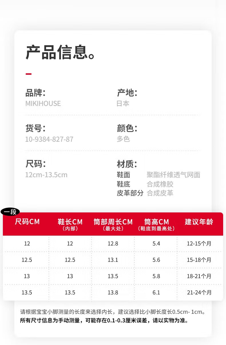 MIKIHOUSE日本制学步鞋男女童鞋经典获奖鞋儿童鞋婴儿鞋宝宝四季鞋防滑 多色 13 (适合脚长12.5cm)