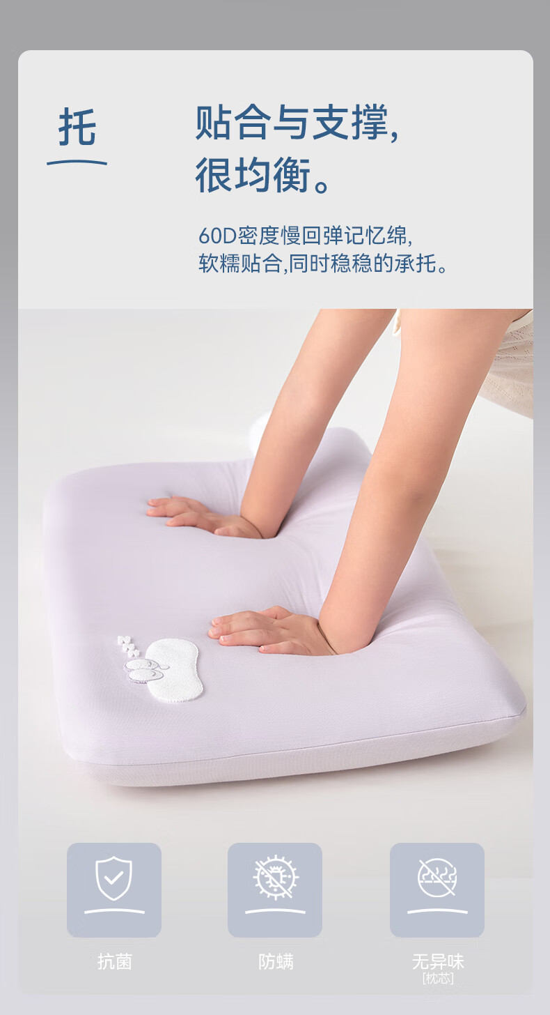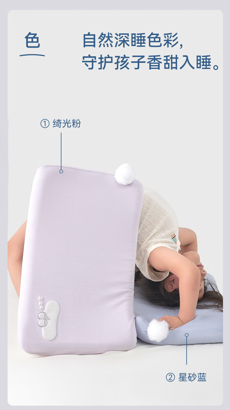 朵亚之星儿童深睡枕PRO枕头枕芯3-6岁护颈椎深度睡眠专用6-12岁 深睡儿童枕-绮光粉 单只 【枕芯+枕头套+礼盒装】 低枕 5cm 适配3-6岁儿童