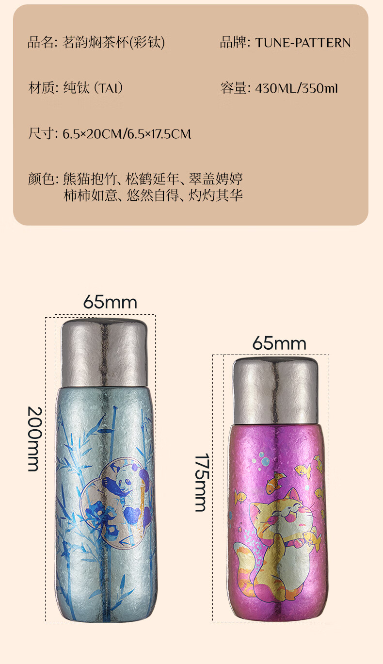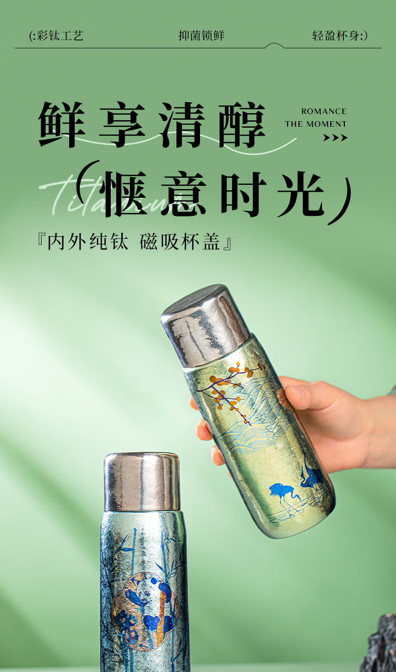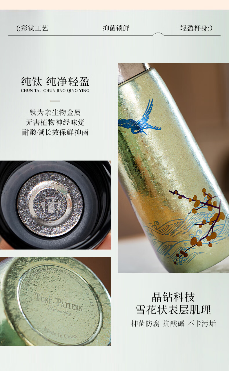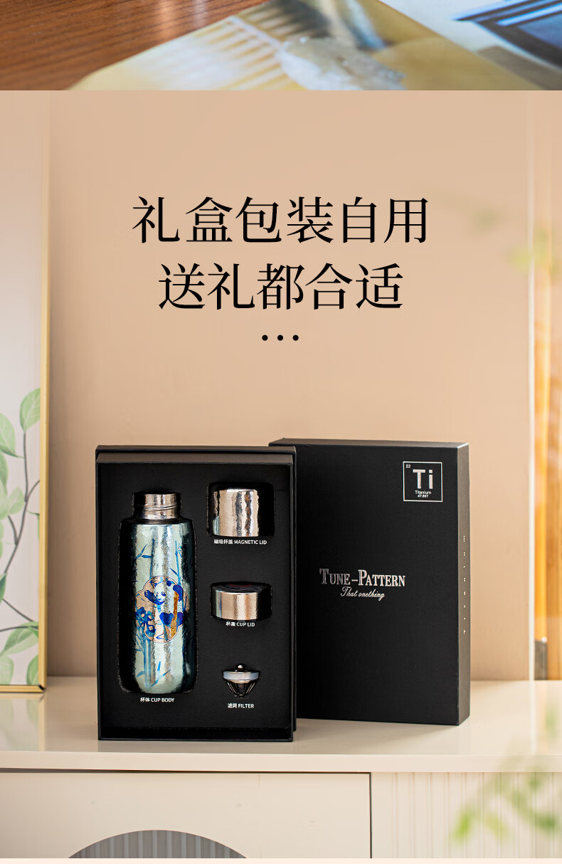 TUNE-PATTERN汀派纯钛保温杯彩绘钛杯磁吸双层钛水杯茗韵焖茶杯高档焖泡杯送礼 松鹤延年【送杯套+定制杯刷】430ml