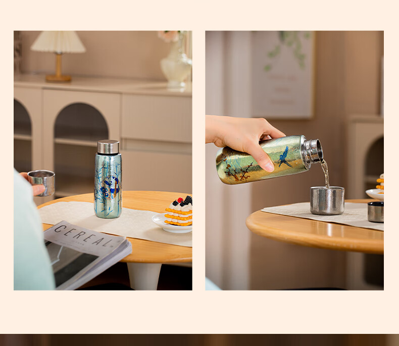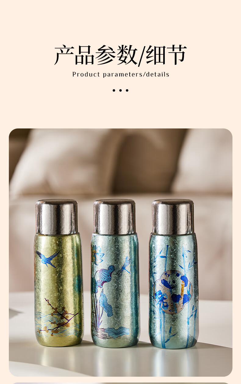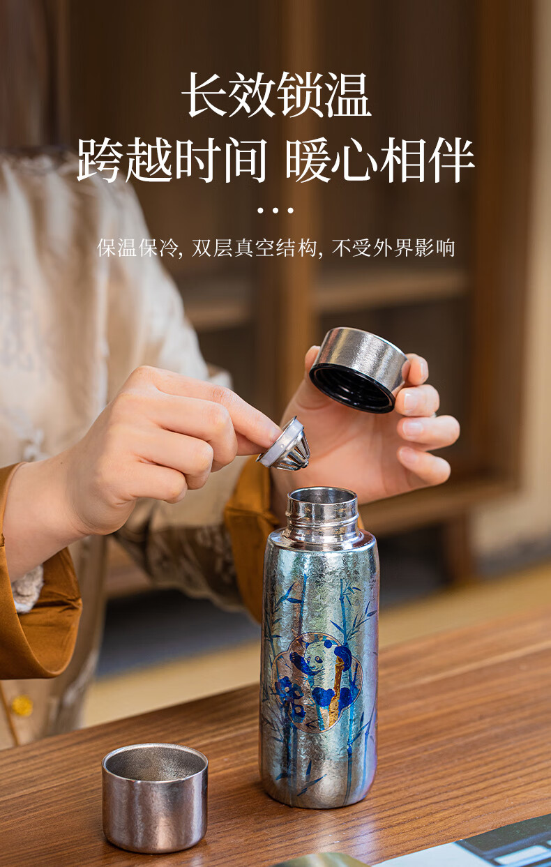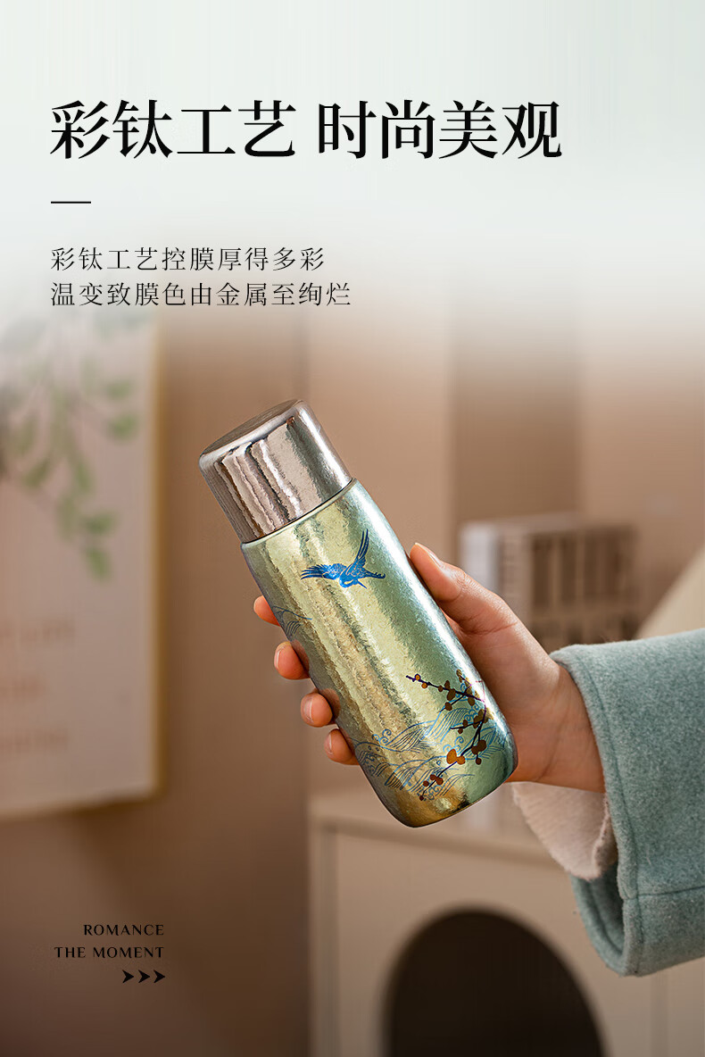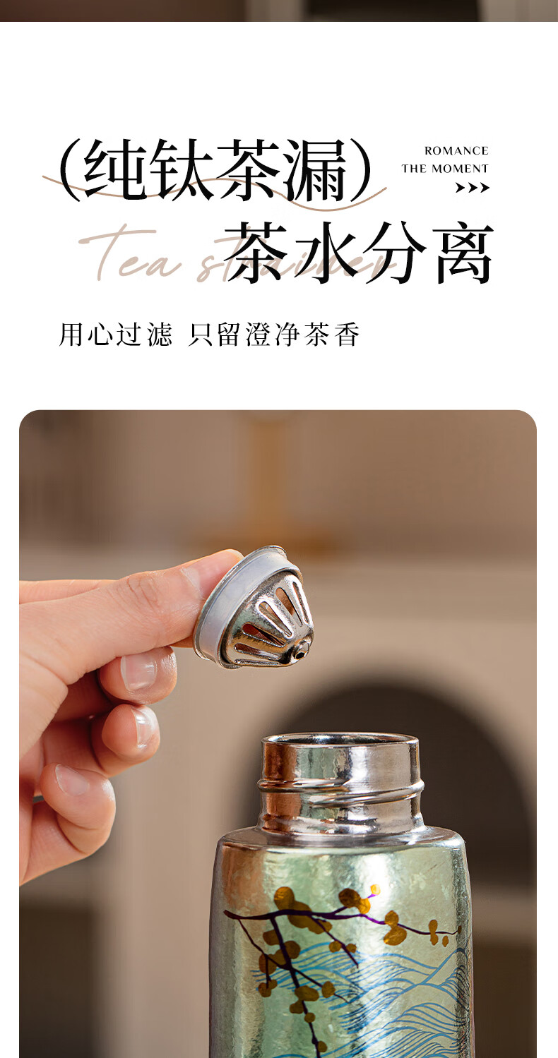 TUNE-PATTERN汀派纯钛保温杯彩绘钛杯磁吸双层钛水杯茗韵焖茶杯高档焖泡杯送礼 松鹤延年【送杯套+定制杯刷】430ml
