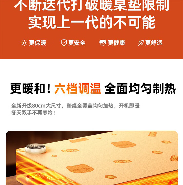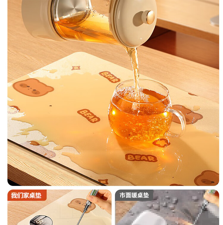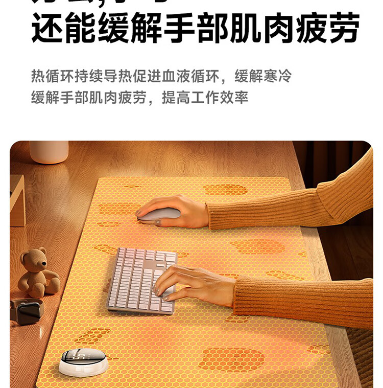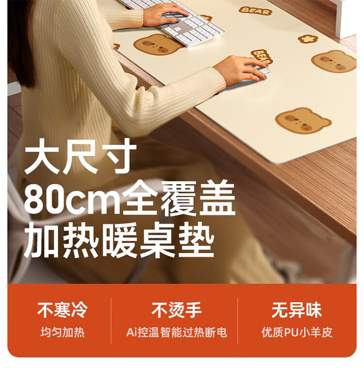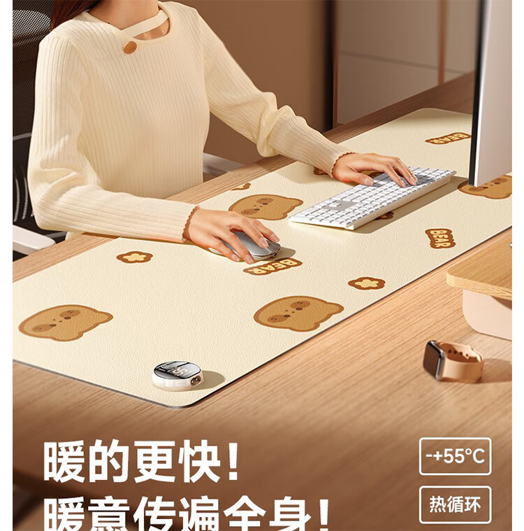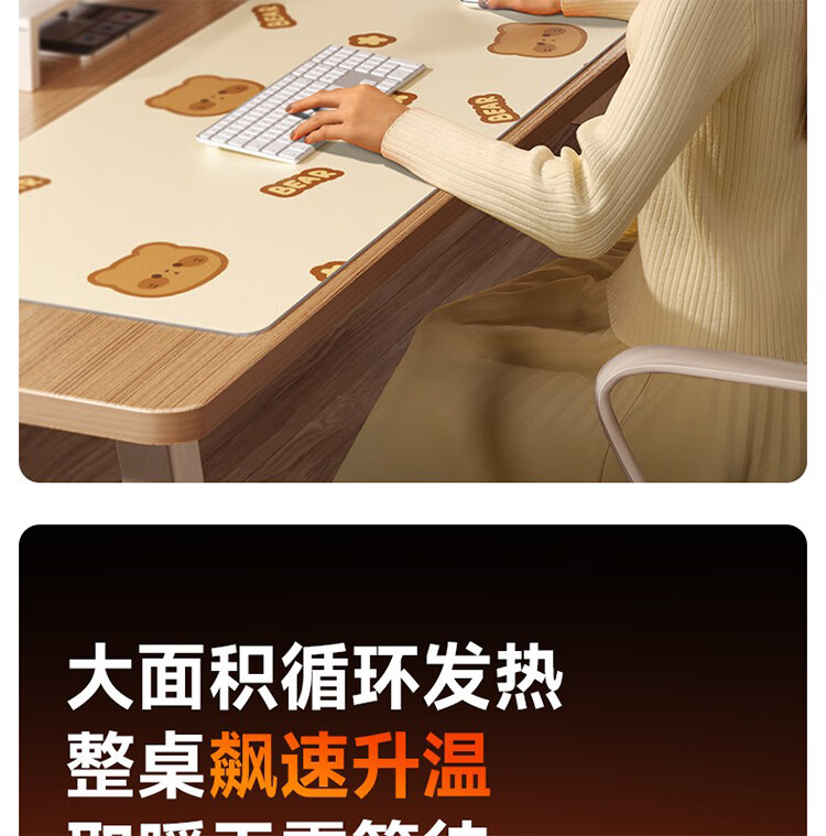筏芯德国加热鼠标垫超大暖桌垫办公室电脑桌面发热暖手速热桌垫暖手垫 泰迪熊-60*36CM【3H定时断电-3档调温】