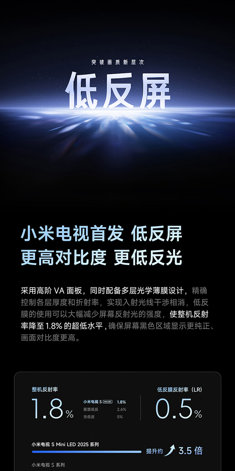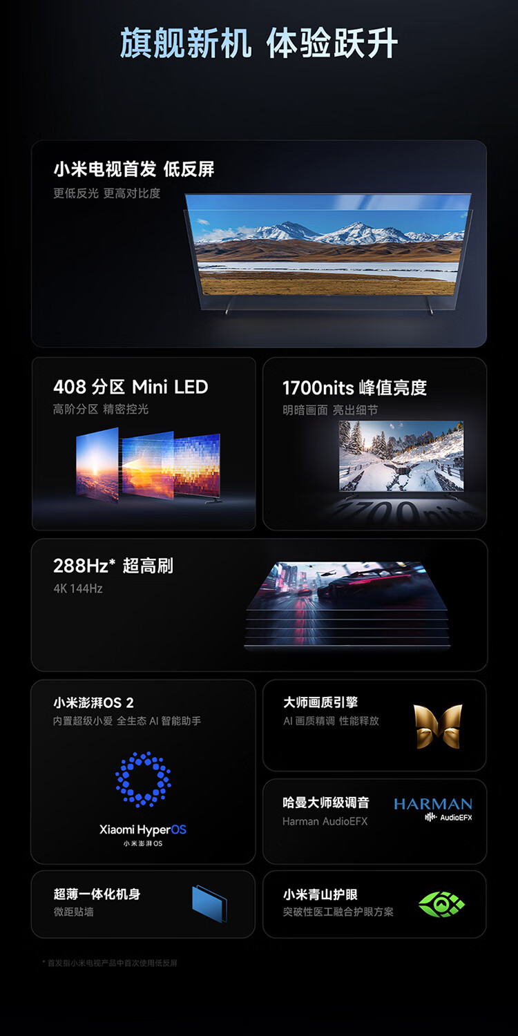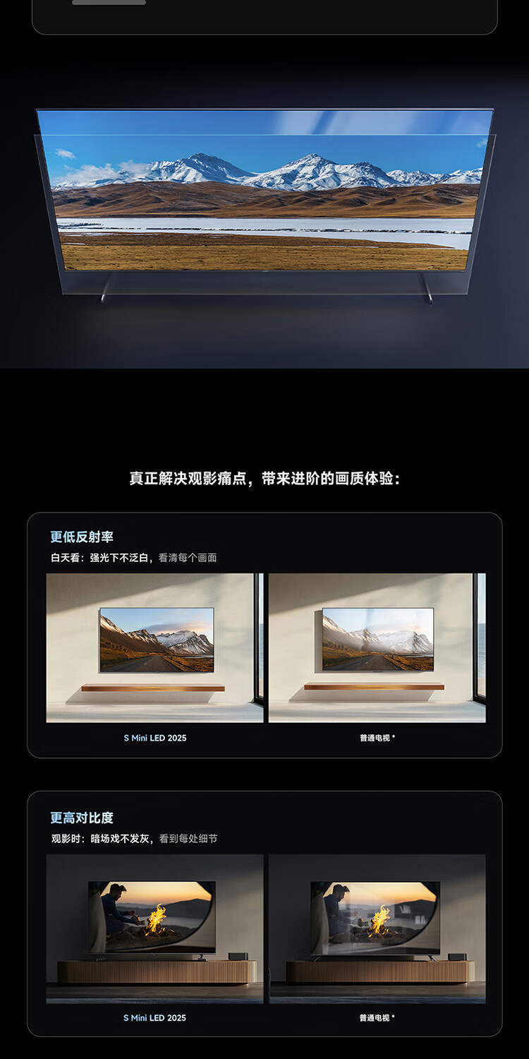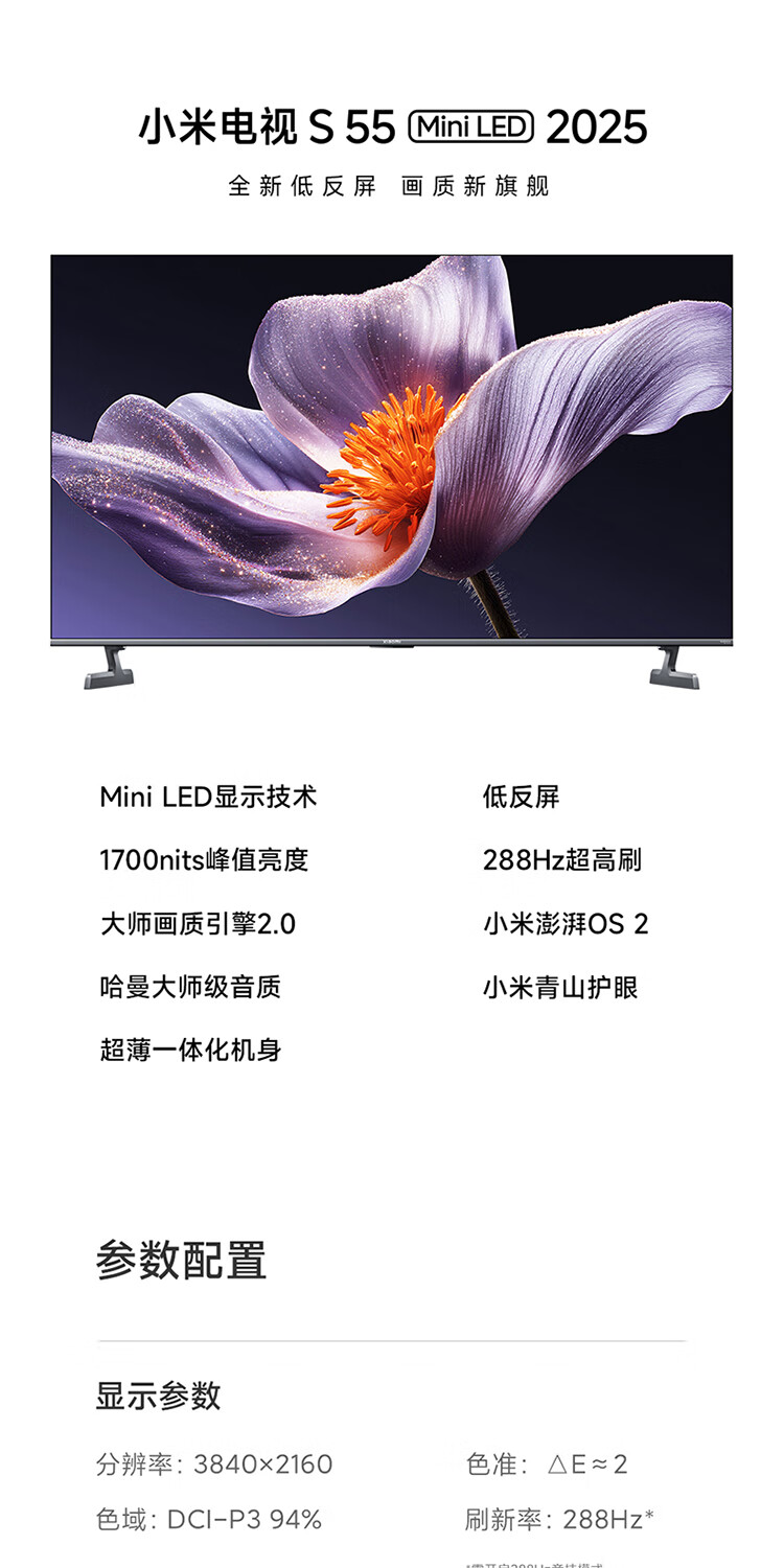 小米(MI)电视 S55 Mini LED 2025 55英寸 低反屏 408分区1700nits288HZ 澎湃OS L55MB-S 一级能效 国家补贴 55英寸