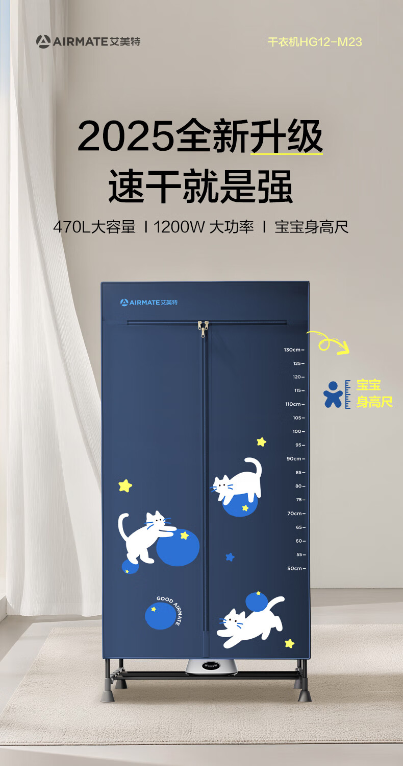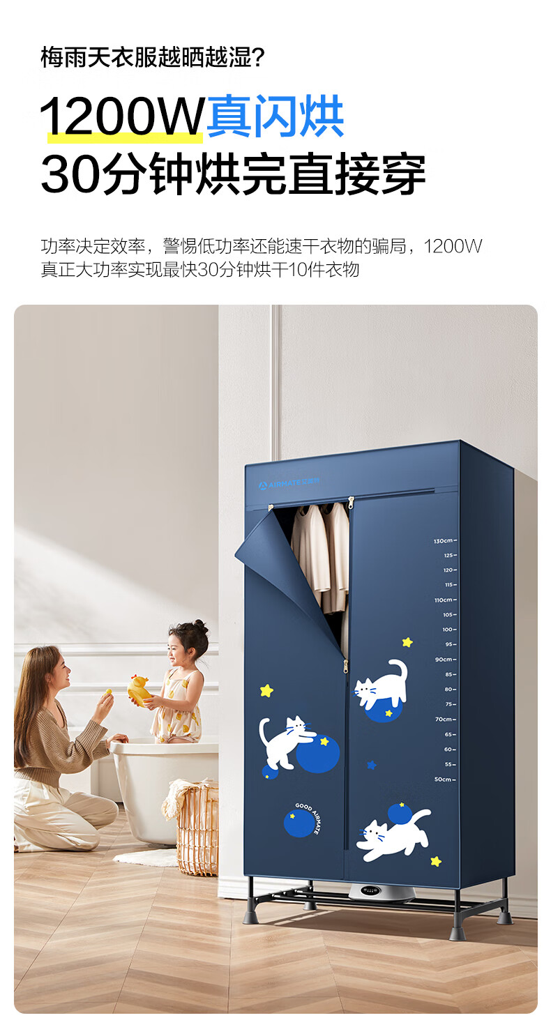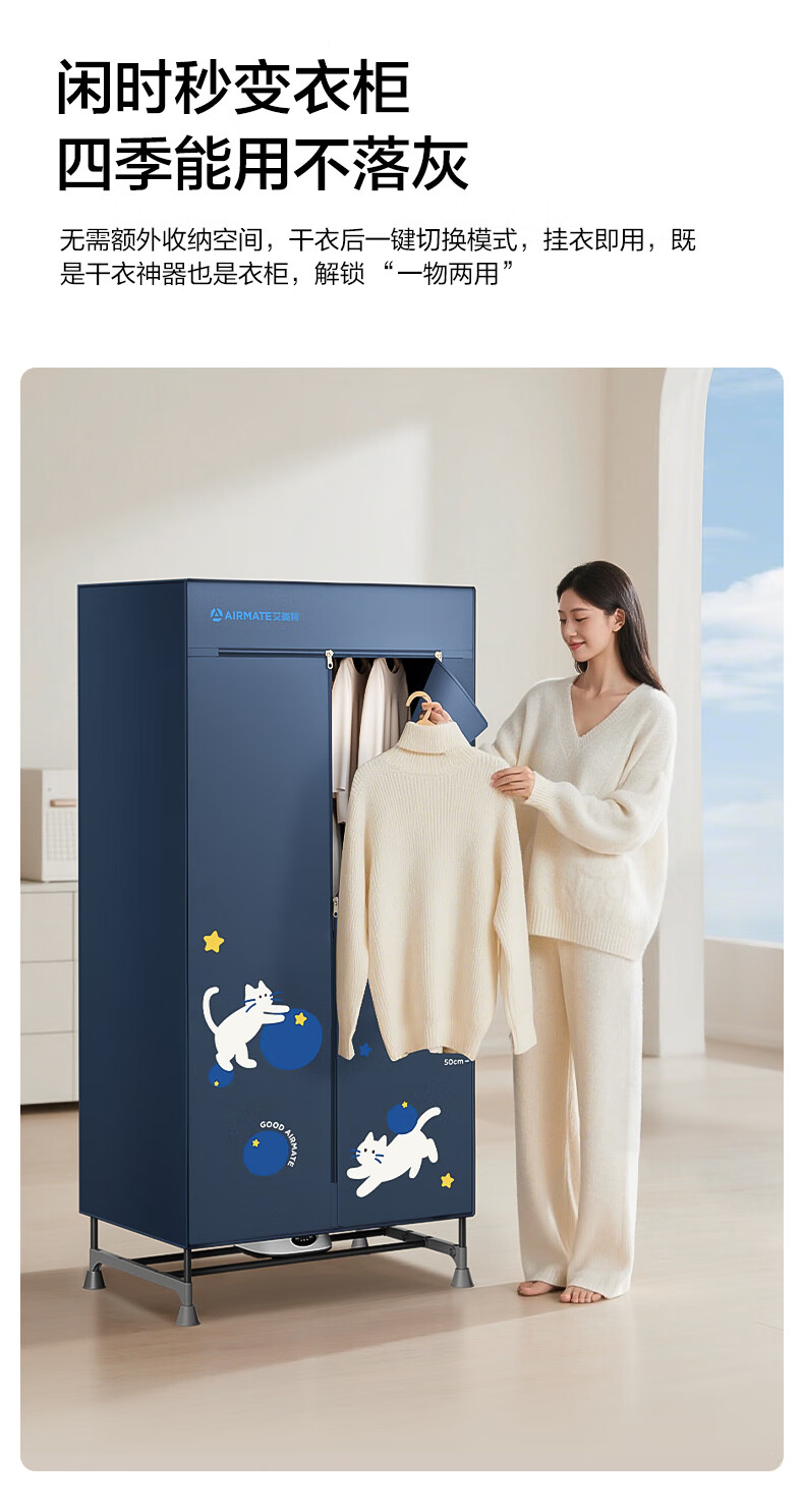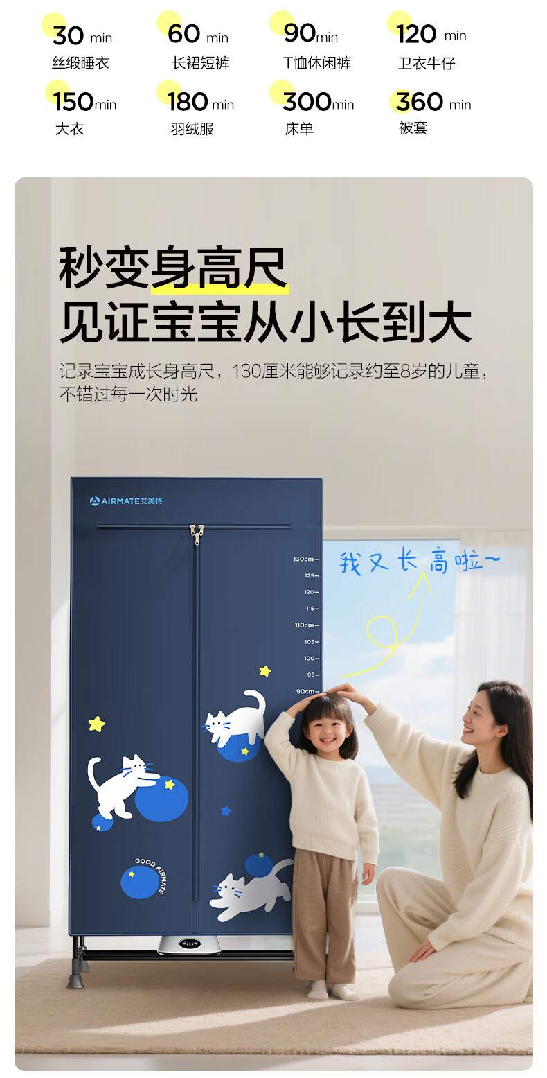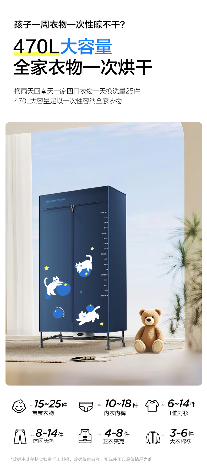 艾美特(AIRMATE)【宝宝身高尺】烘干机家用干衣机烘衣机暖风机大容量衣柜定时内衣消毒机小型风干机衣柜