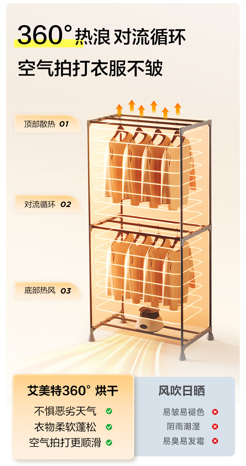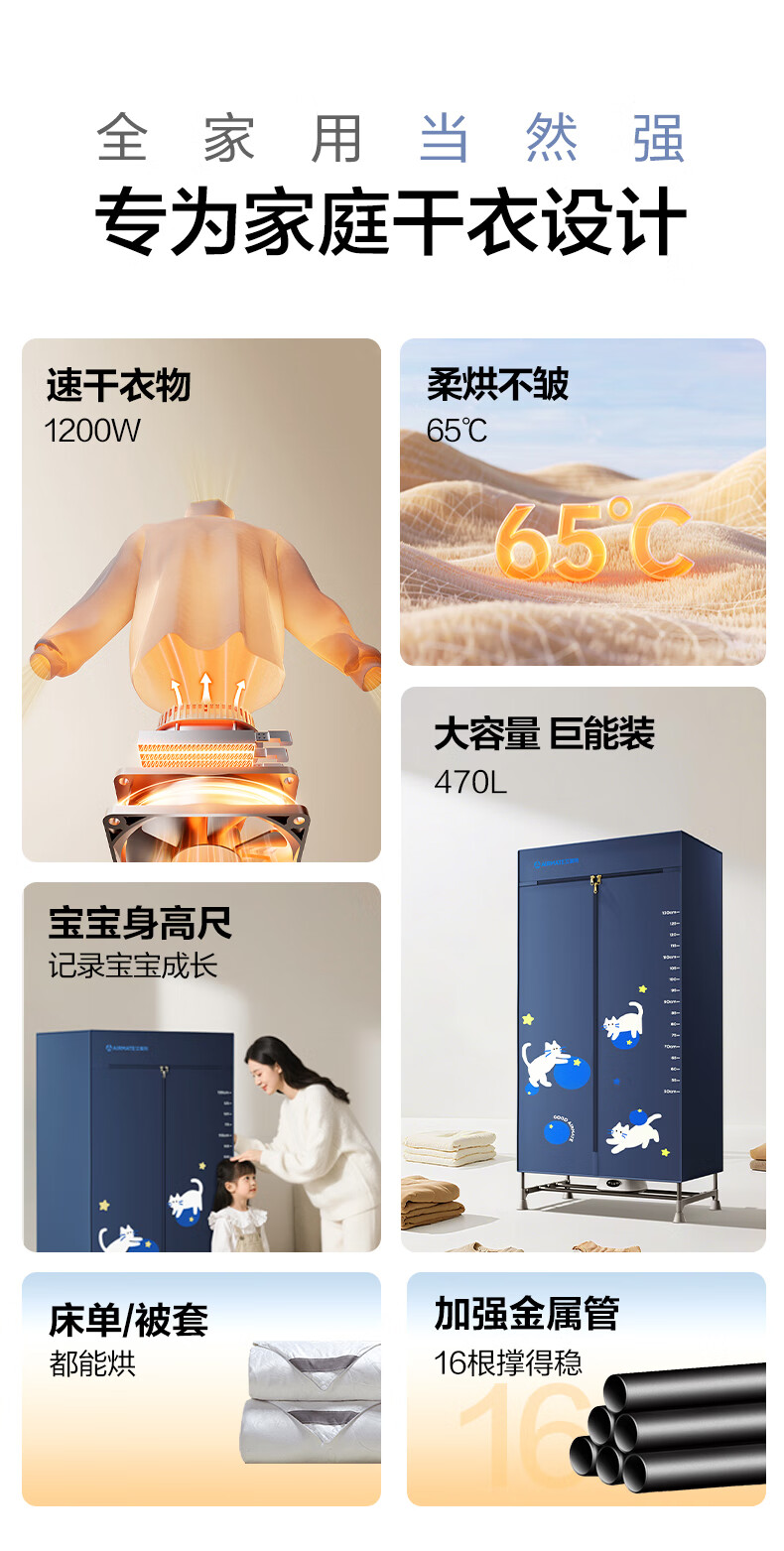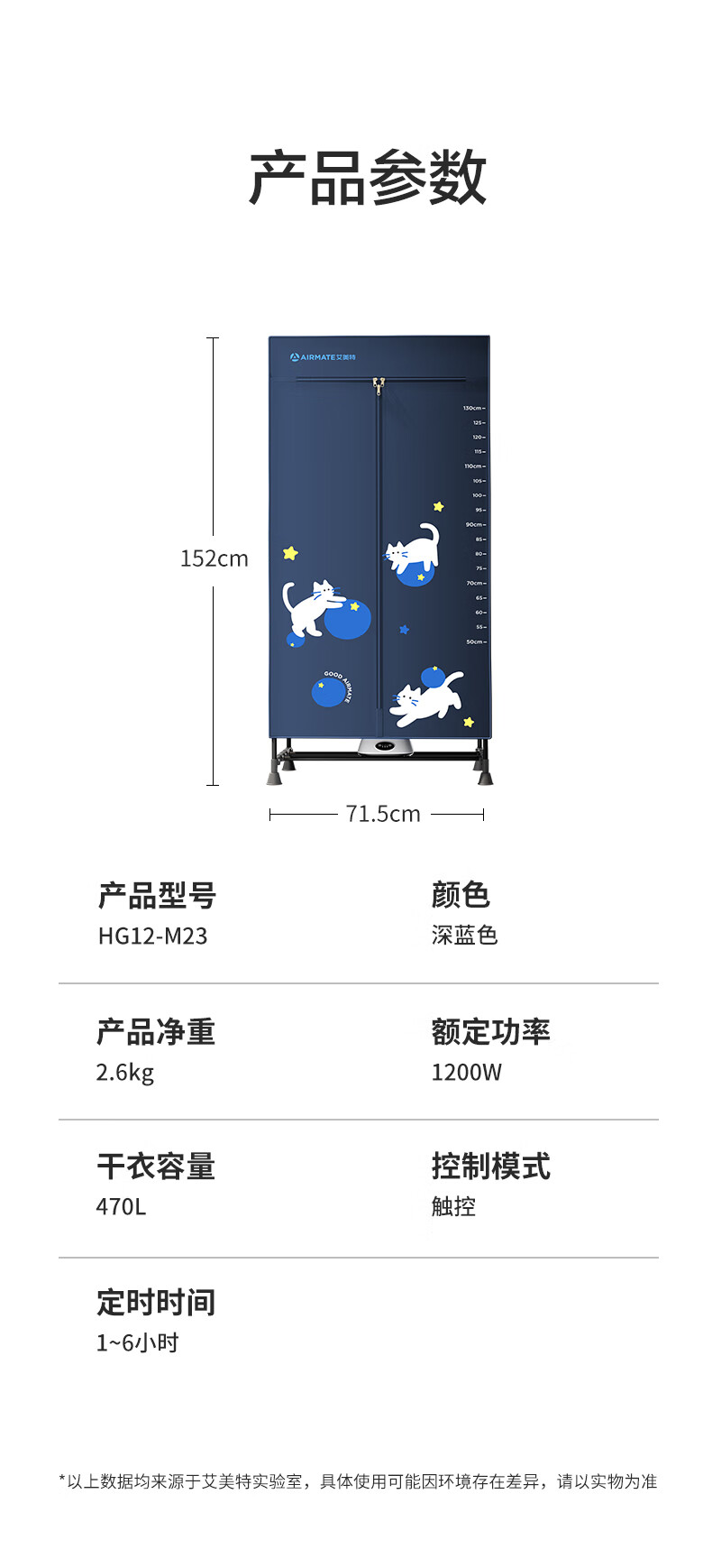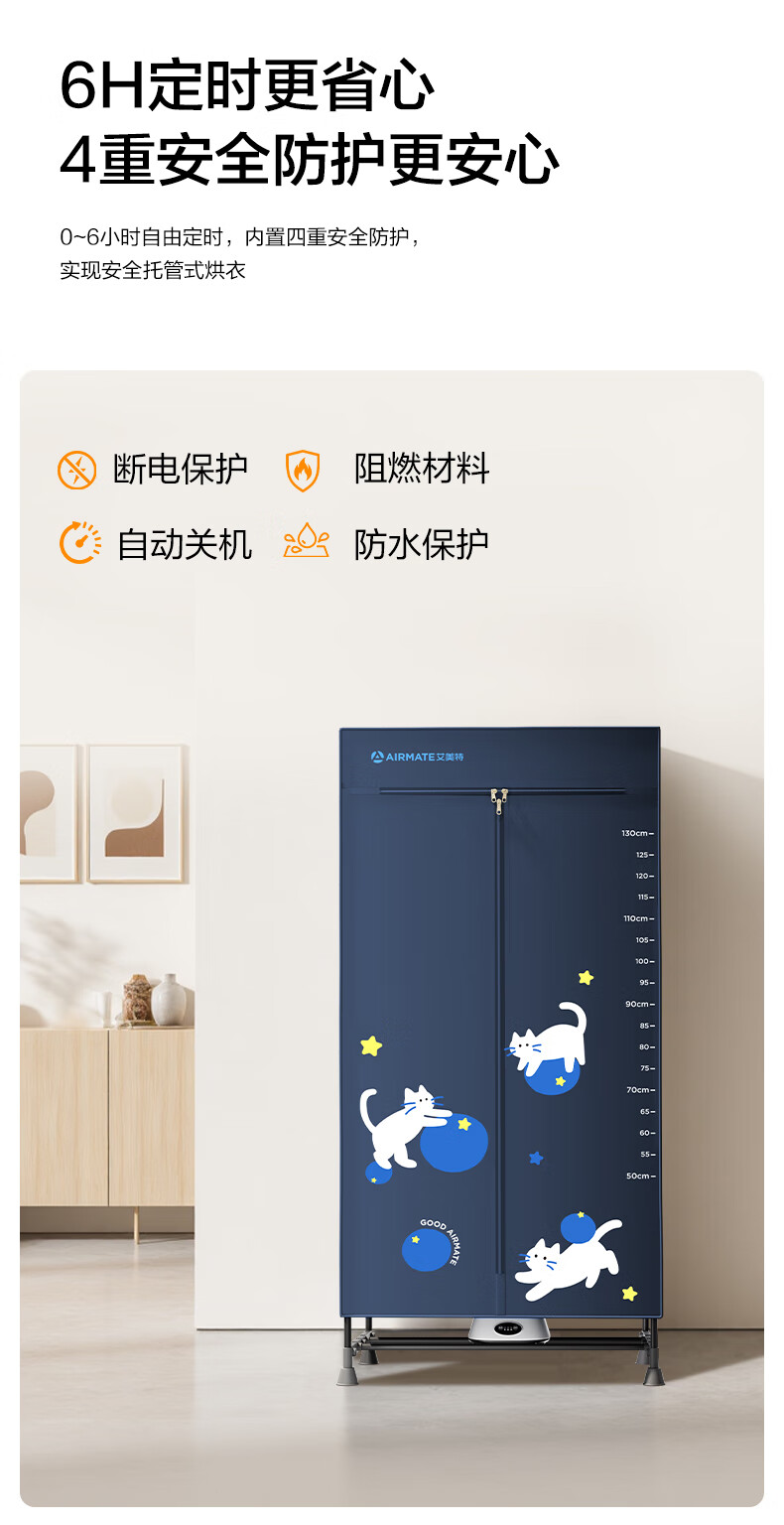 艾美特(AIRMATE)【宝宝身高尺】烘干机家用干衣机烘衣机暖风机大容量衣柜定时内衣消毒机小型风干机衣柜