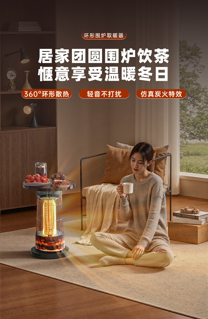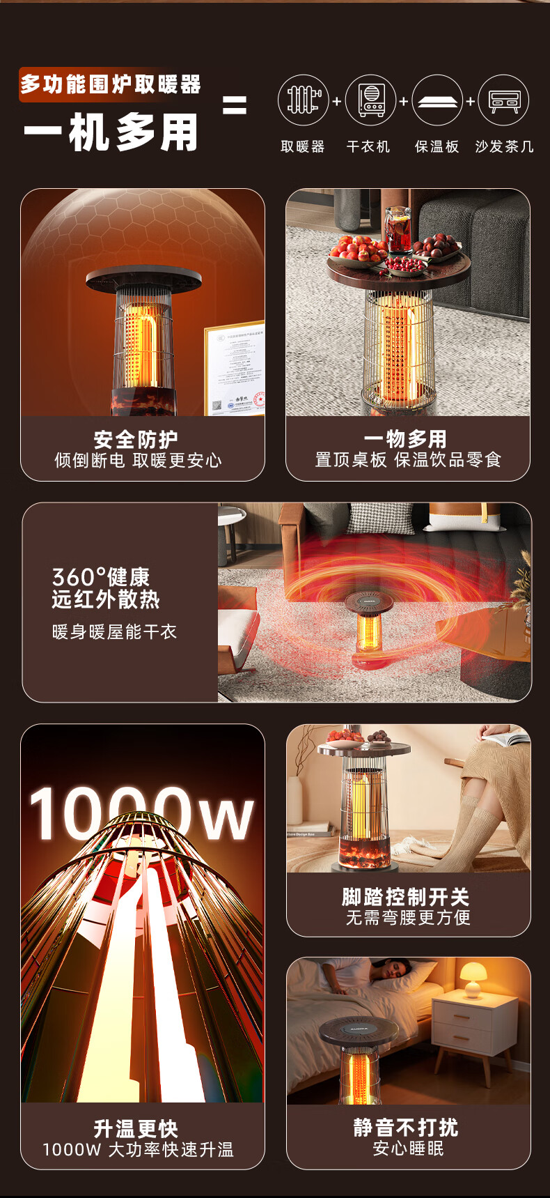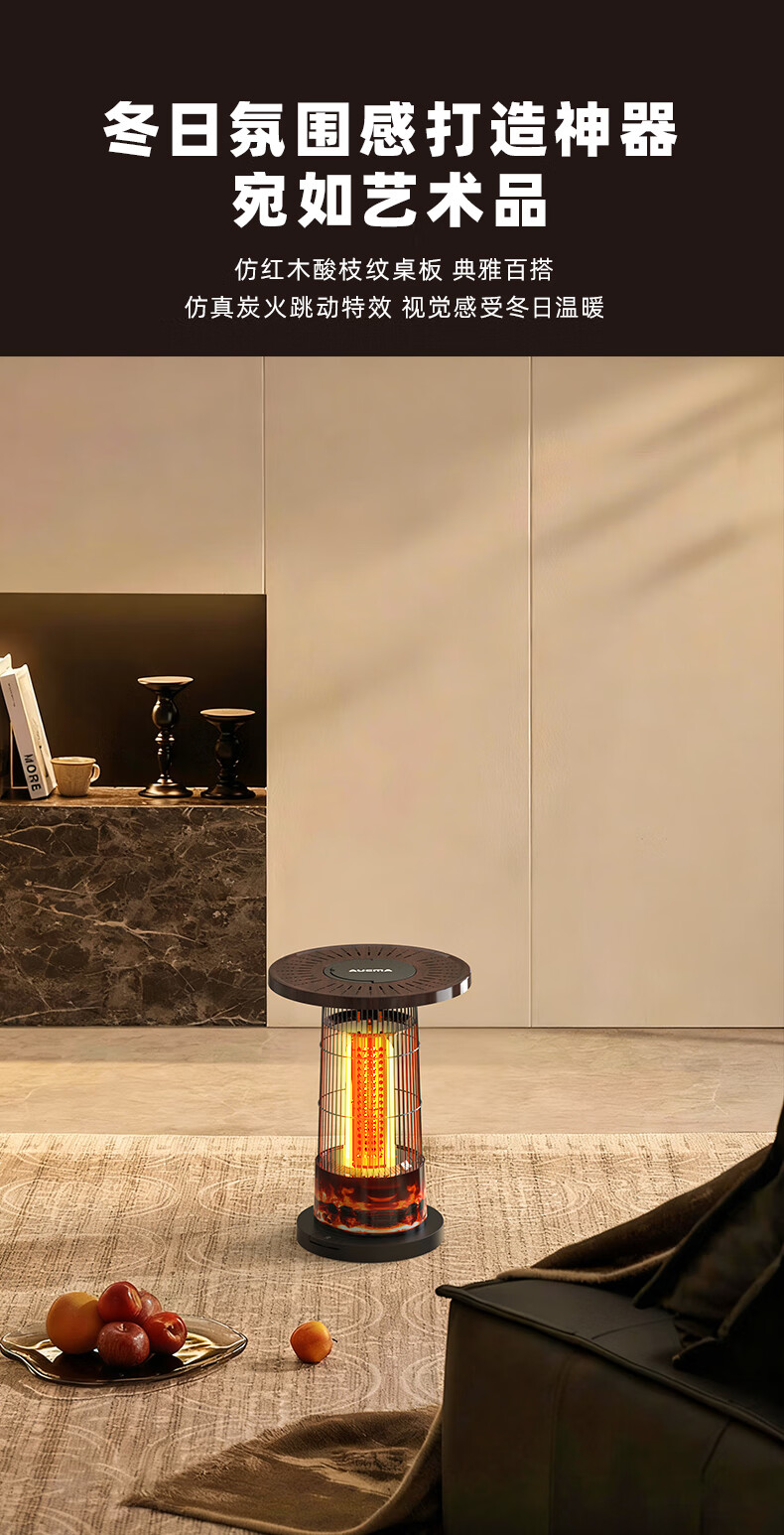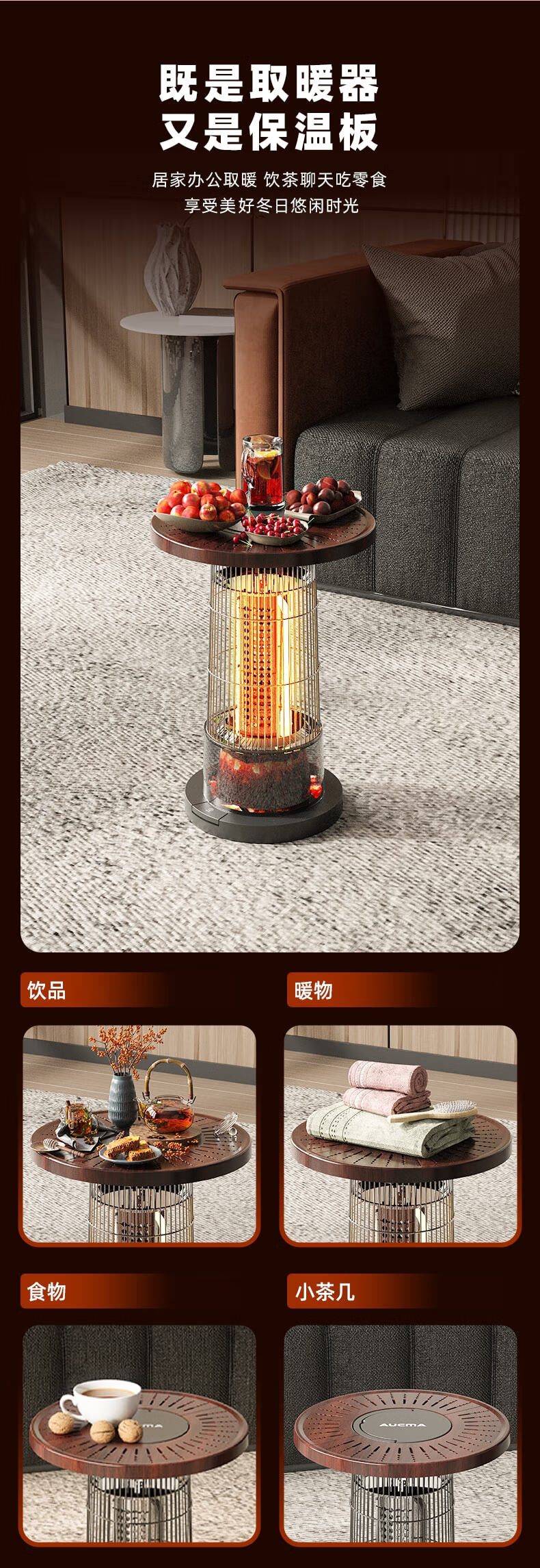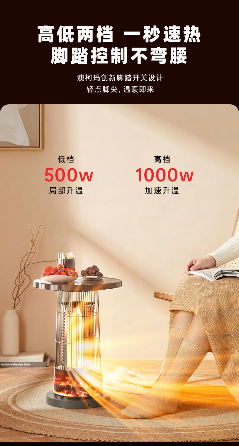 澳柯玛(AUCMA)取暖器/围炉/小太阳/电暖桌取暖炉办公室桌下煮茶电暖多功能鸟笼烤火炉3D壁炉远红外暖脚干衣A512