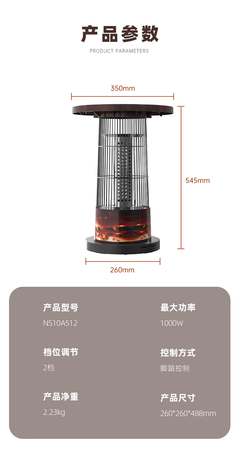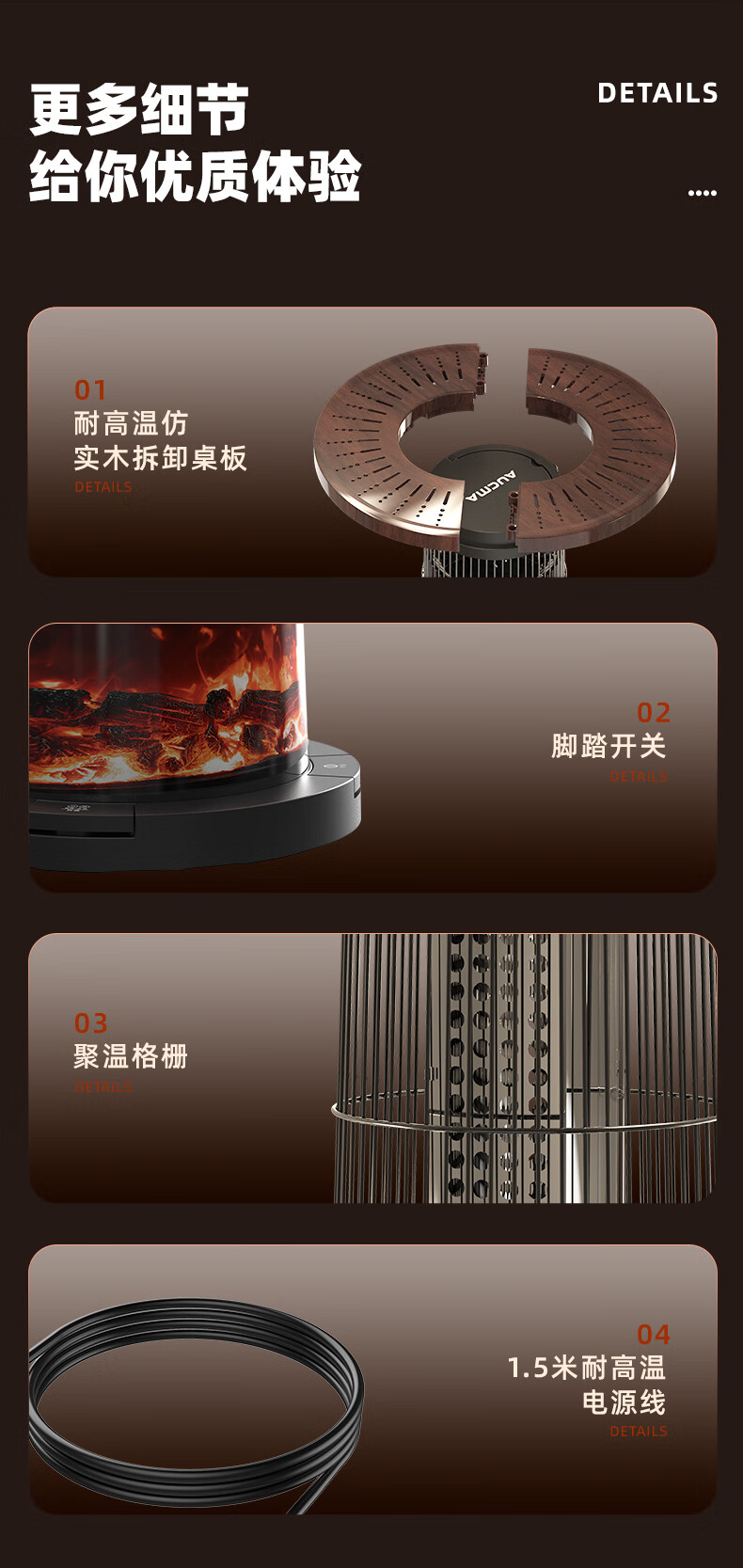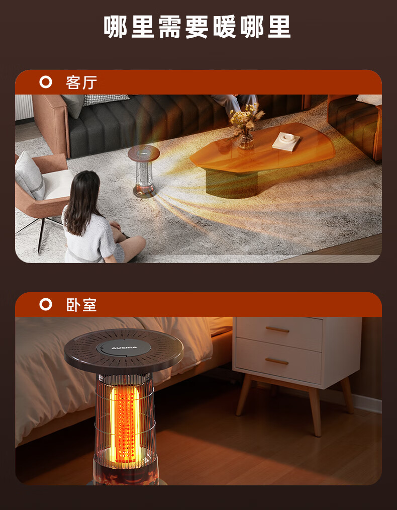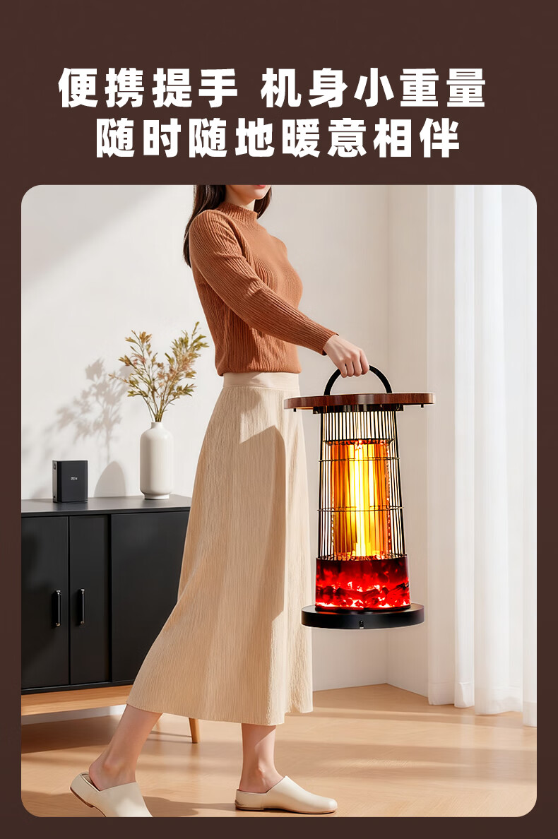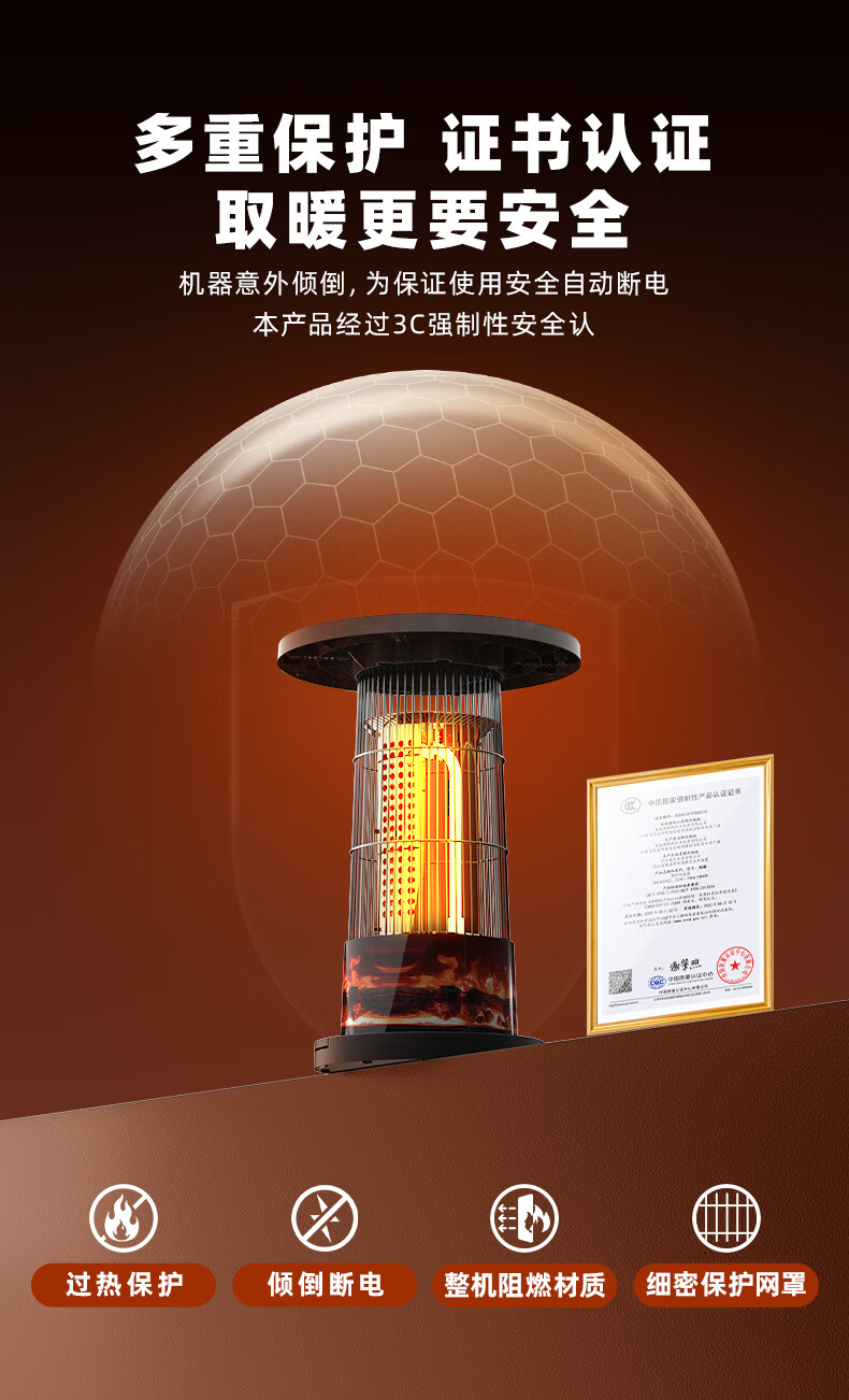 澳柯玛(AUCMA)取暖器/围炉/小太阳/电暖桌取暖炉办公室桌下煮茶电暖多功能鸟笼烤火炉3D壁炉远红外暖脚干衣A512