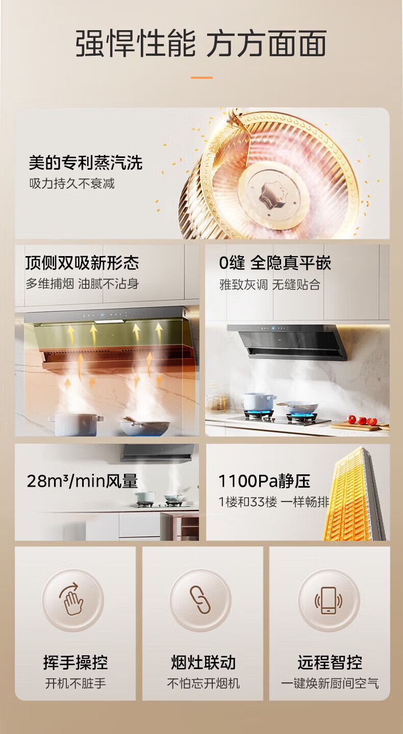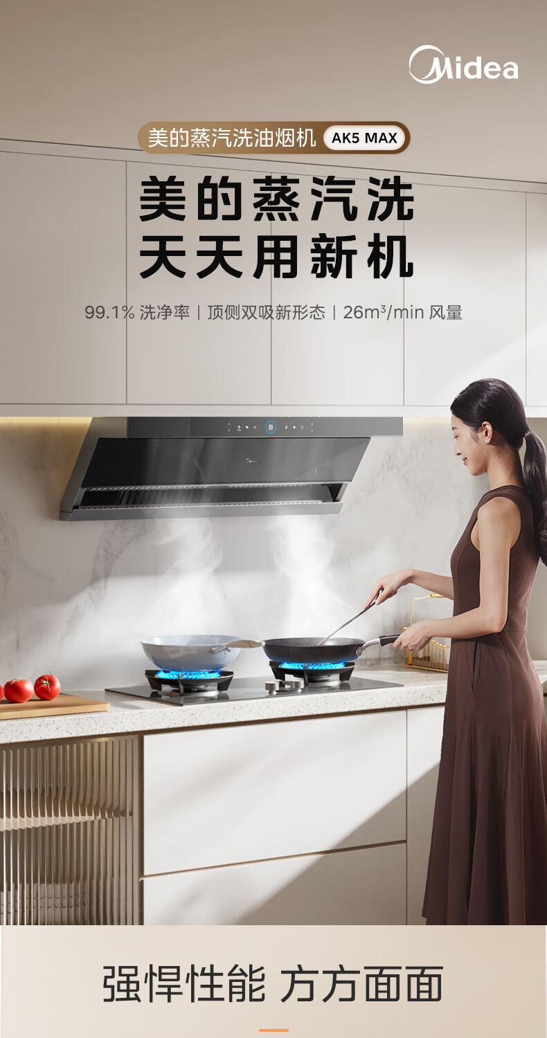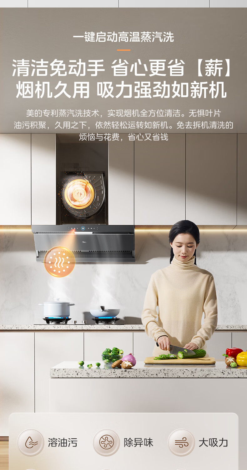 美的(Midea)【蒸汽洗AK7MAX/AK5MAX】顶侧双吸抽油烟机家用28风量1100Pa变频巡航高温蒸汽洗自清洁排吸油烟机 【天然气套装】AK7MAX+QD529双定时燃气灶 【烟灶联动】国家补贴立减20%