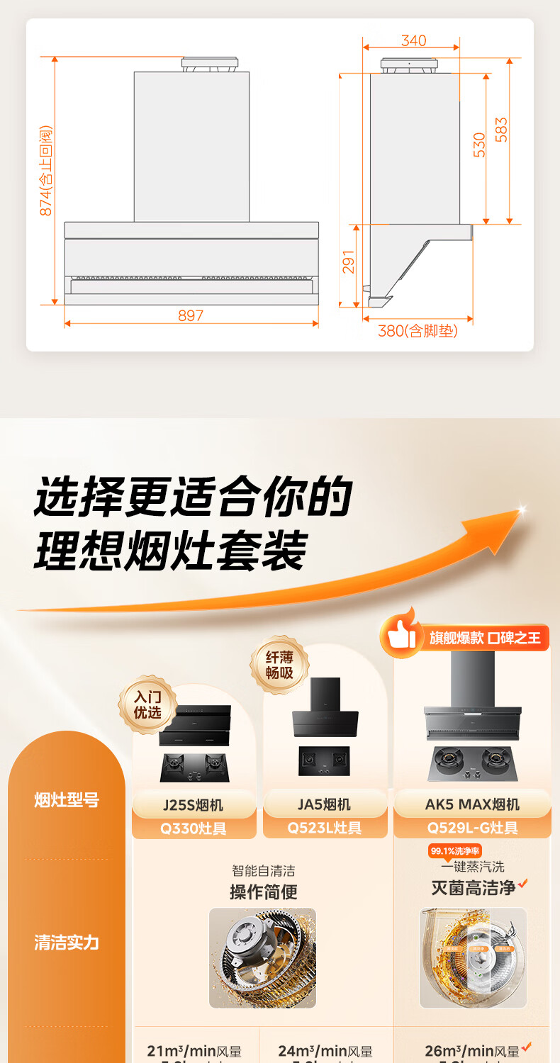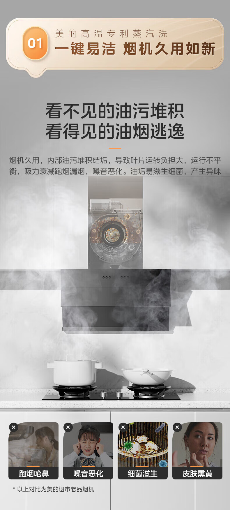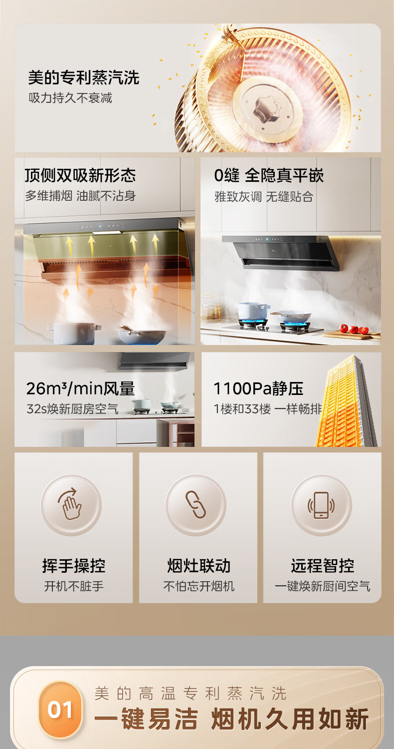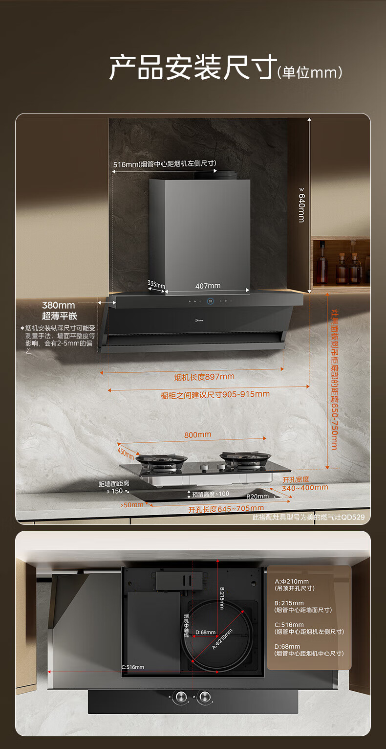 美的(Midea)【蒸汽洗AK7MAX/AK5MAX】顶侧双吸抽油烟机家用28风量1100Pa变频巡航高温蒸汽洗自清洁排吸油烟机 【天然气套装】AK7MAX+QD529双定时燃气灶 【烟灶联动】国家补贴立减20%