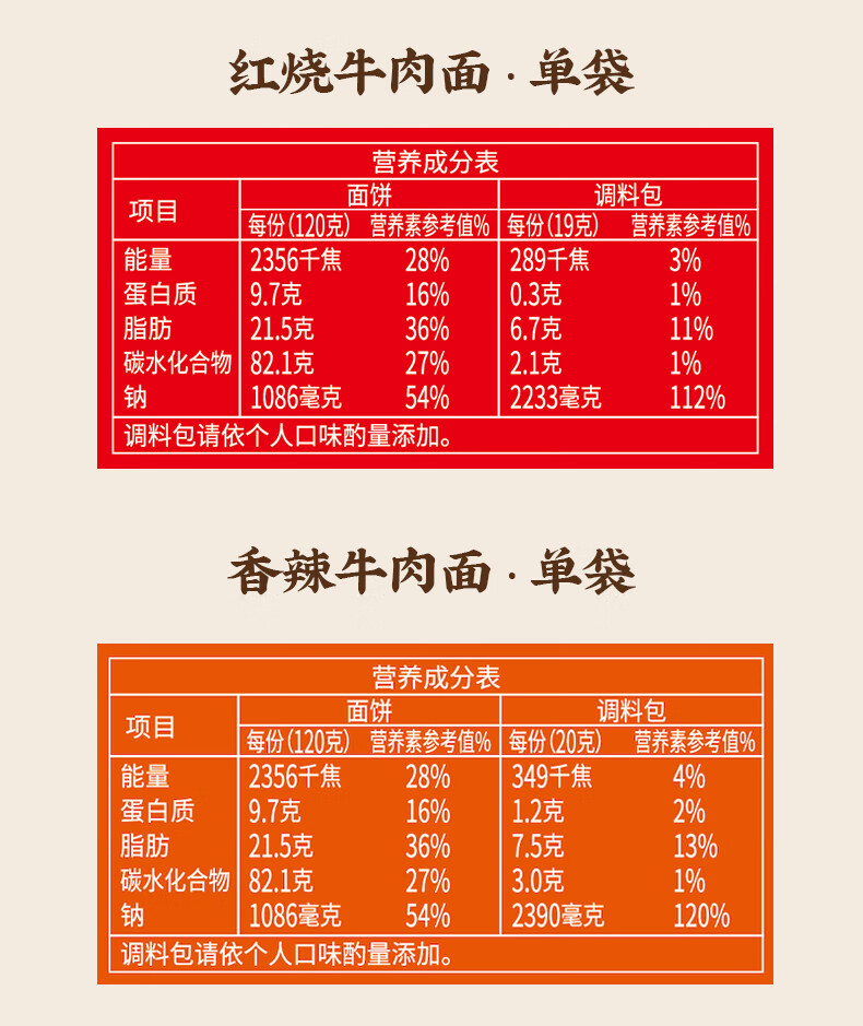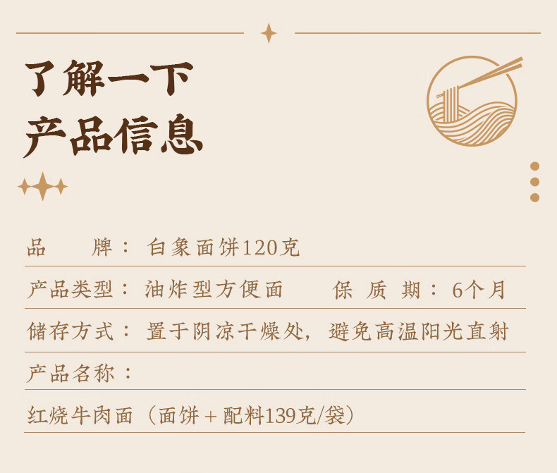白象 方便面 120克大面饼 红烧牛肉面含料包共139g*24袋 袋装泡面整箱