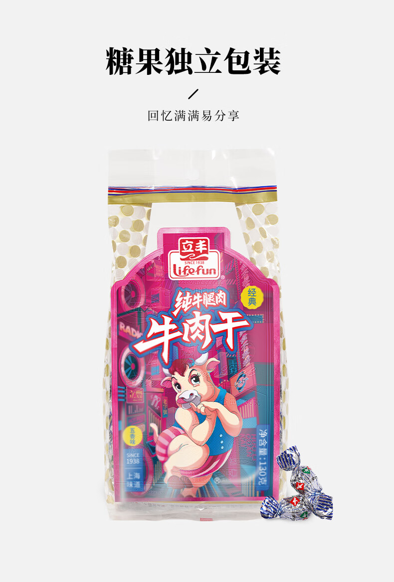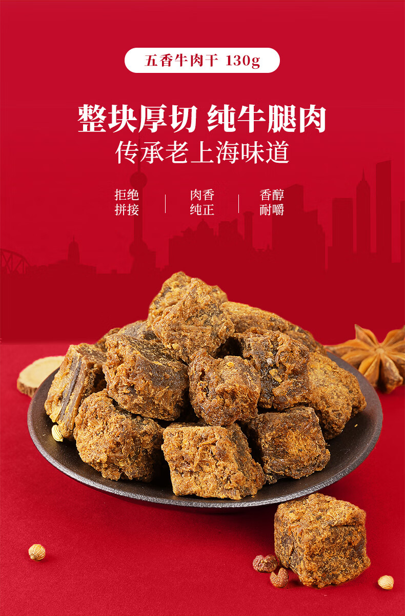 立丰(lifefun)精品五香牛肉干风干牛肉粒130g 袋装 中华老字号上海特产休闲零食