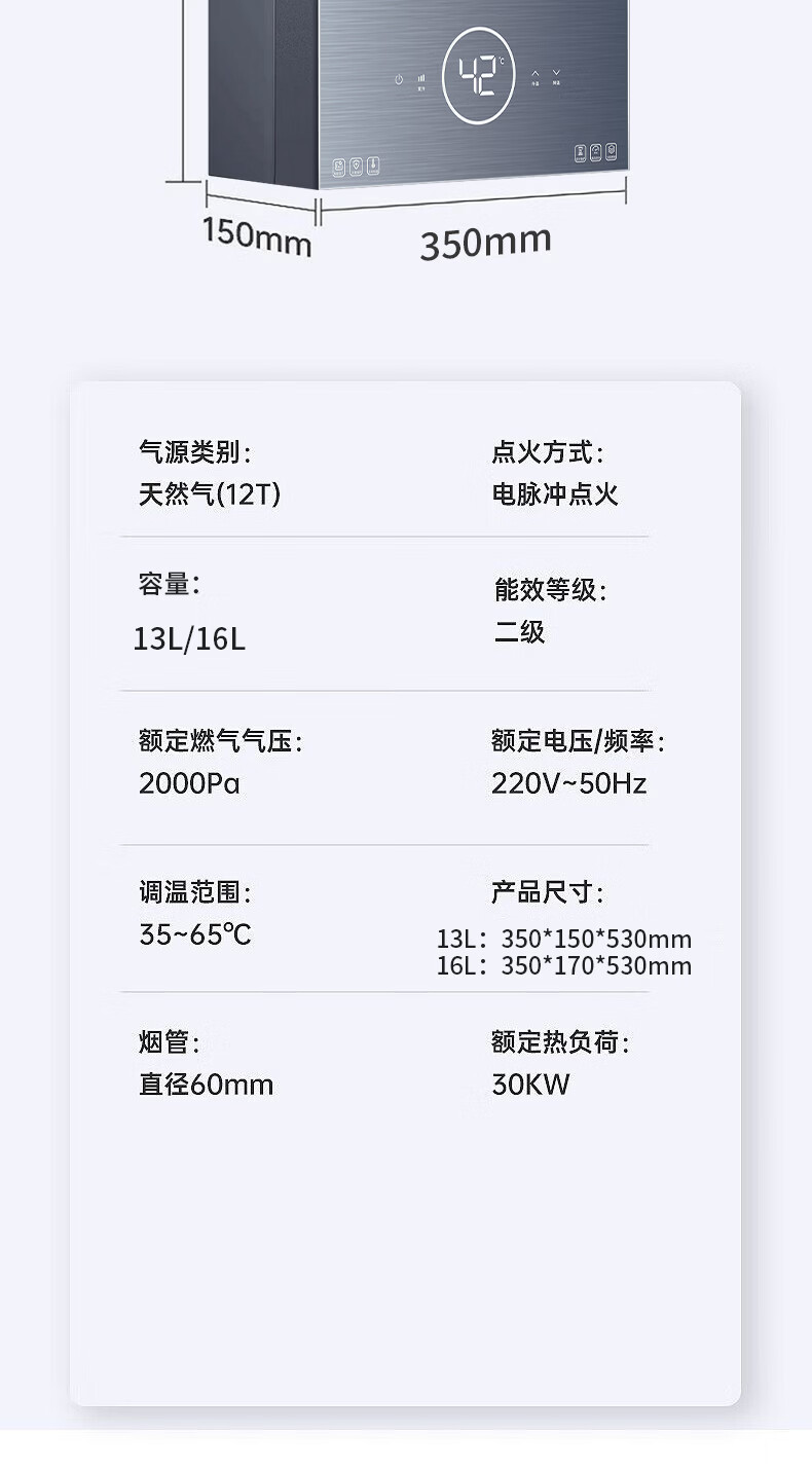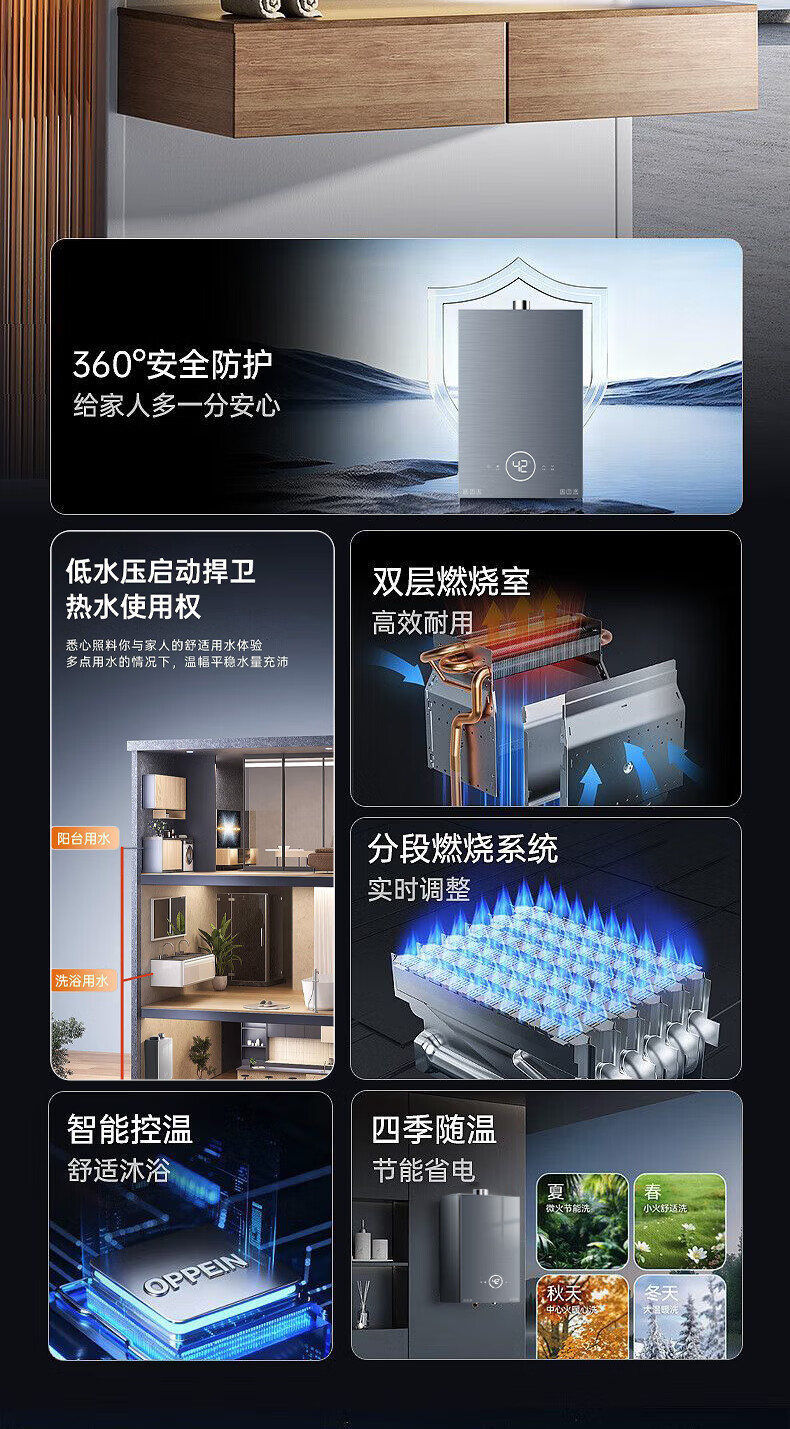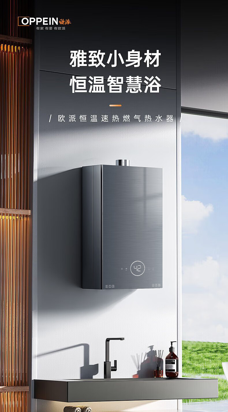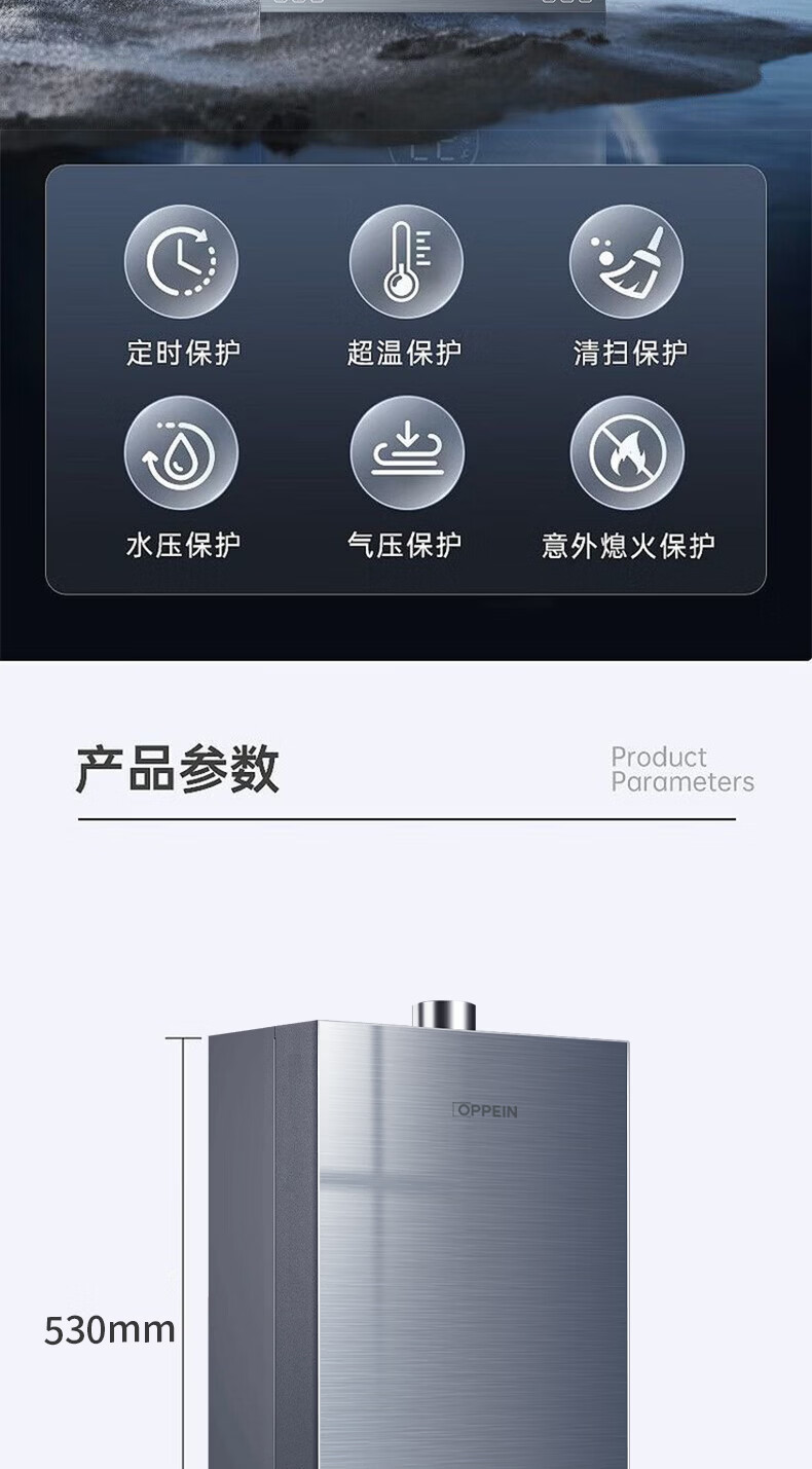 欧派(OPPEIN)家用燃气热水器恒温节能智能精准控温大水量 低水压启动速热恒温 13L 雾灰蓝丨节能恒温-天然气