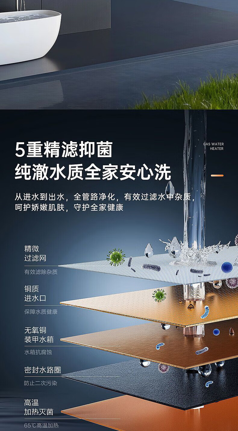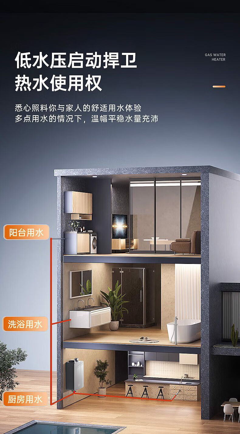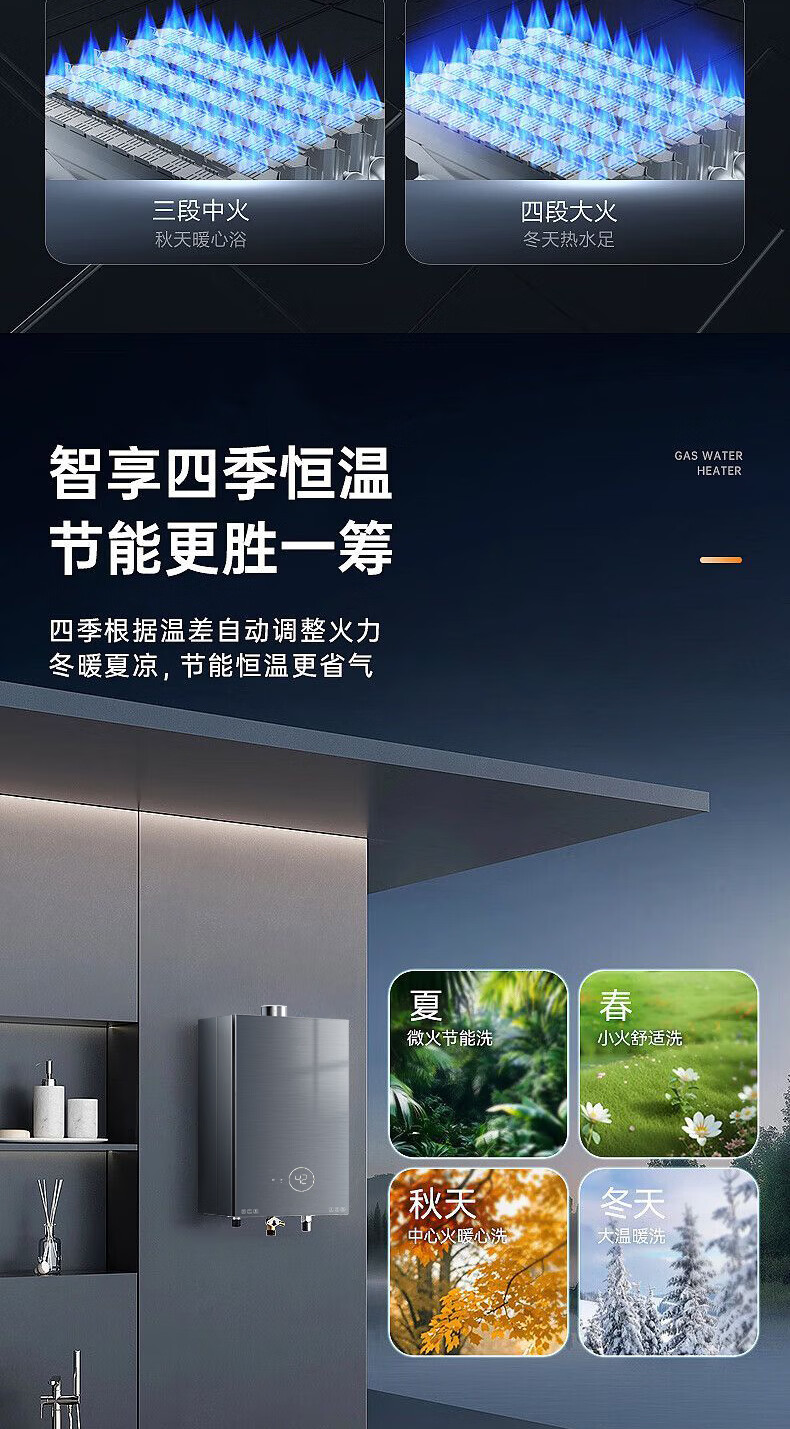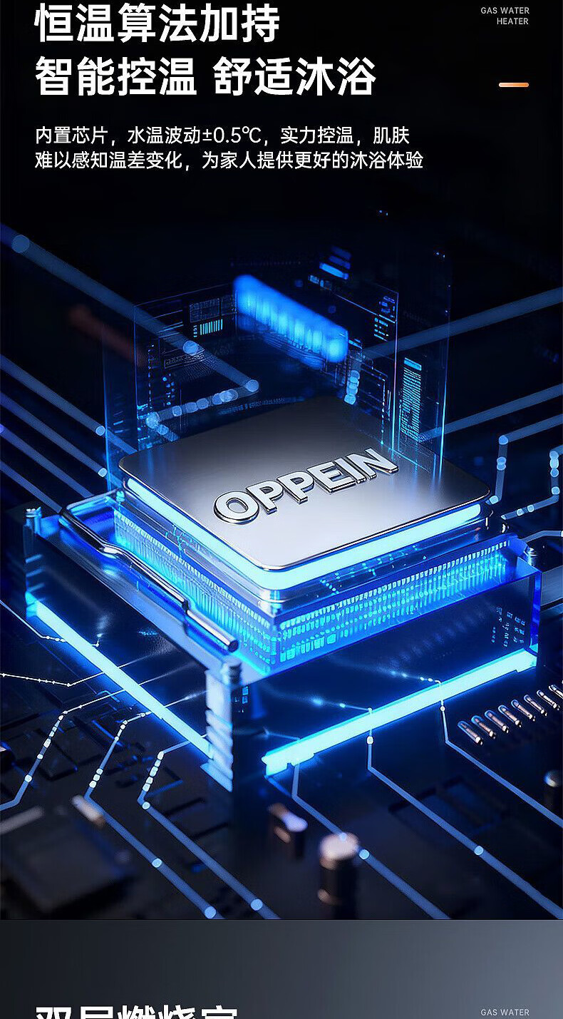欧派(OPPEIN)家用燃气热水器恒温节能智能精准控温大水量 低水压启动速热恒温 13L 雾灰蓝丨节能恒温-天然气