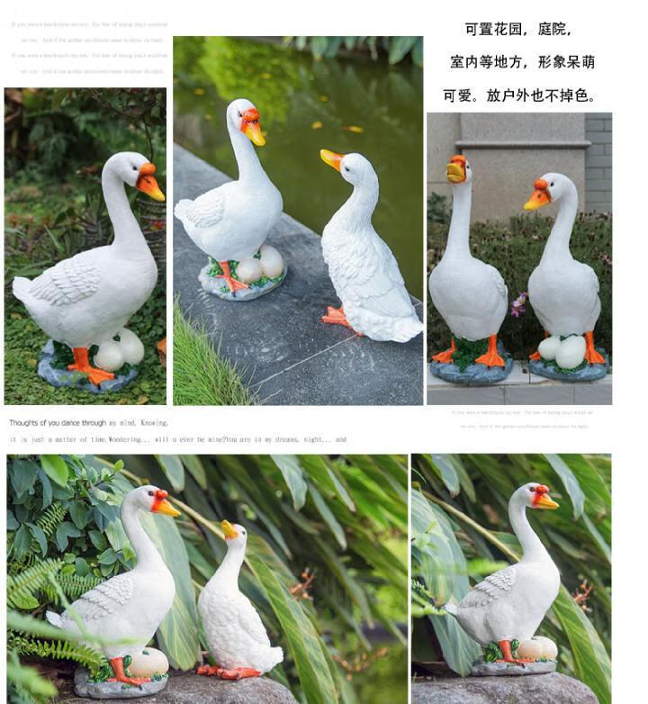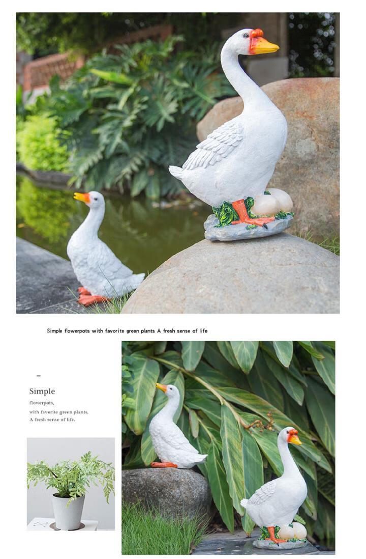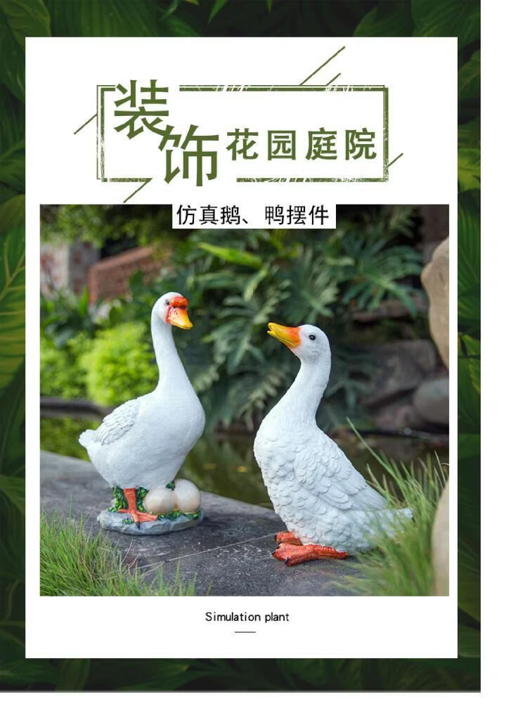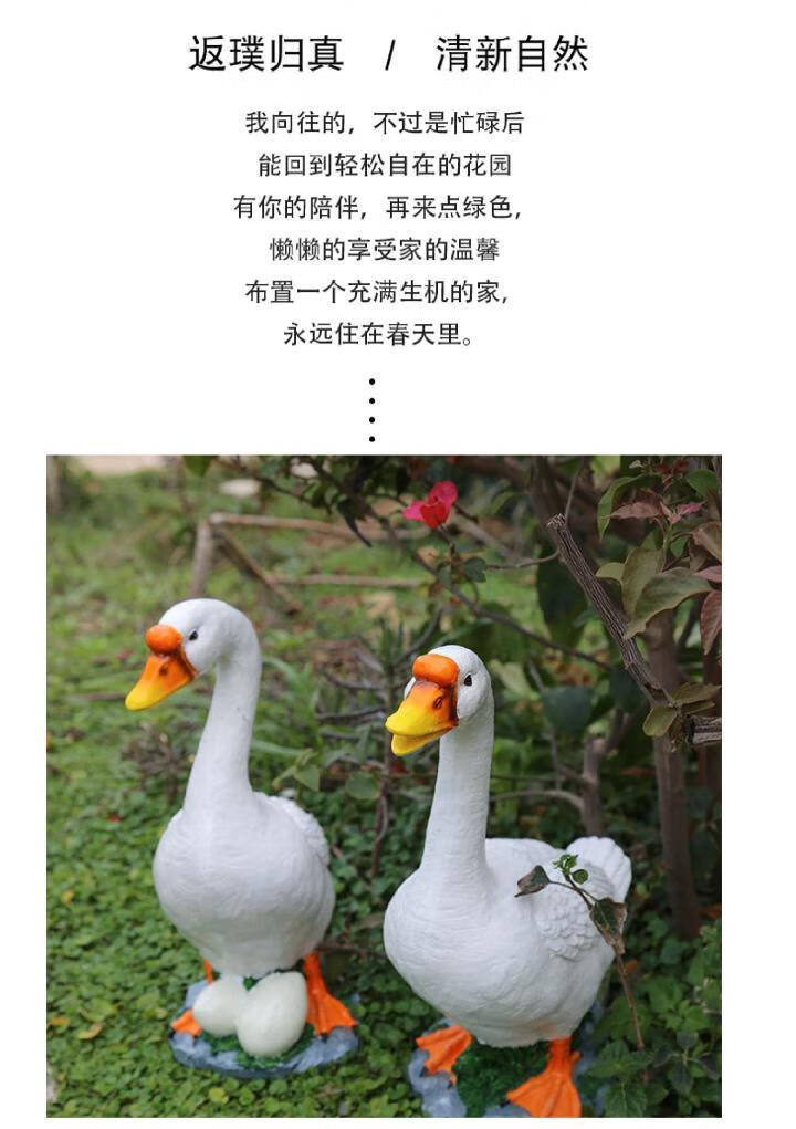 OYKTN花园摆件 美式乡村庭院户外别墅景观树脂动物仿真鹅摆件鸭子雕塑 带蛋鹅 一个鹅