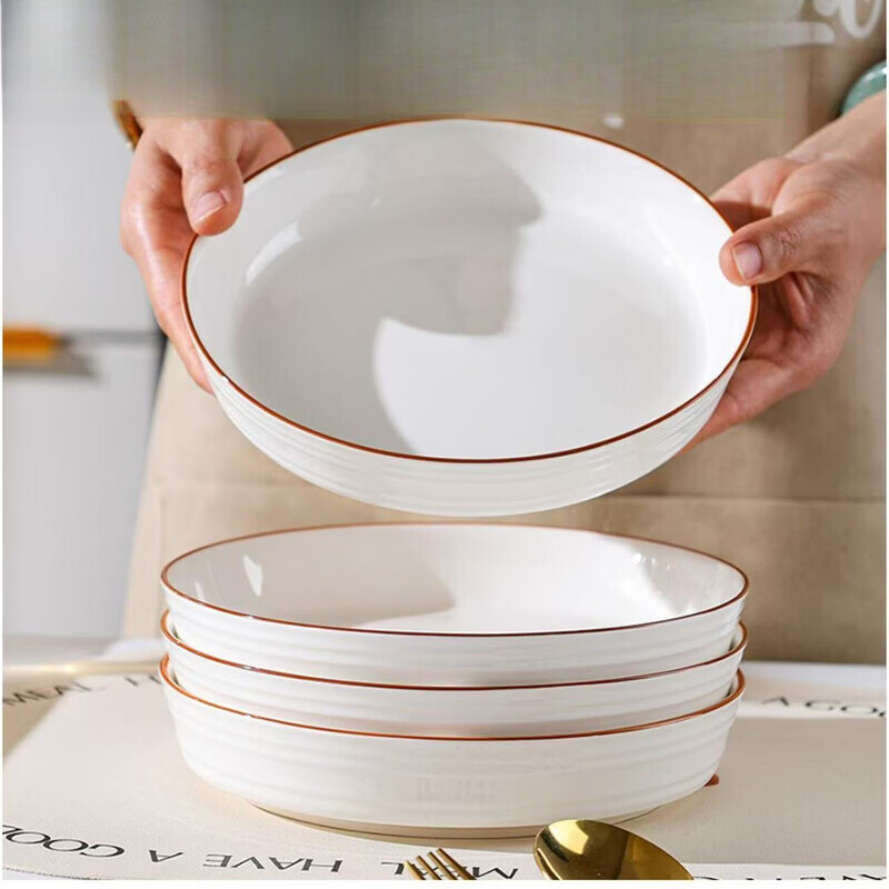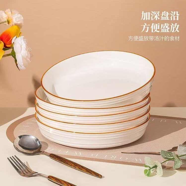 咏夏【深盘】2025新款加深浮雕盘子釉下彩时尚圆盘菜盘家用陶瓷不烫手 7英寸盘1支装