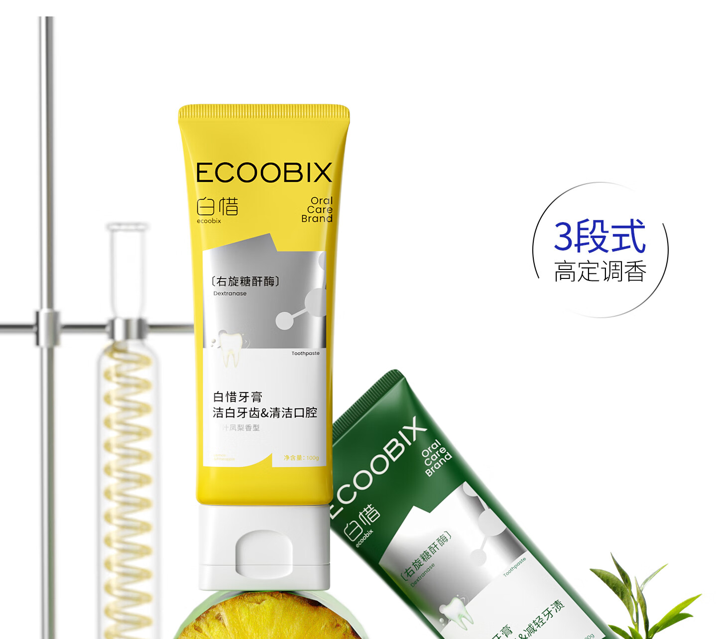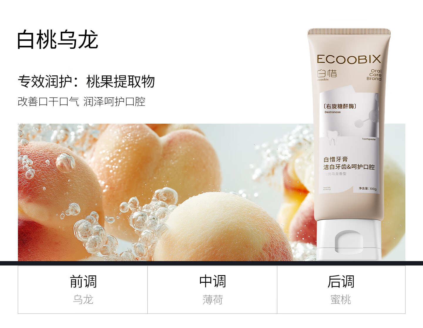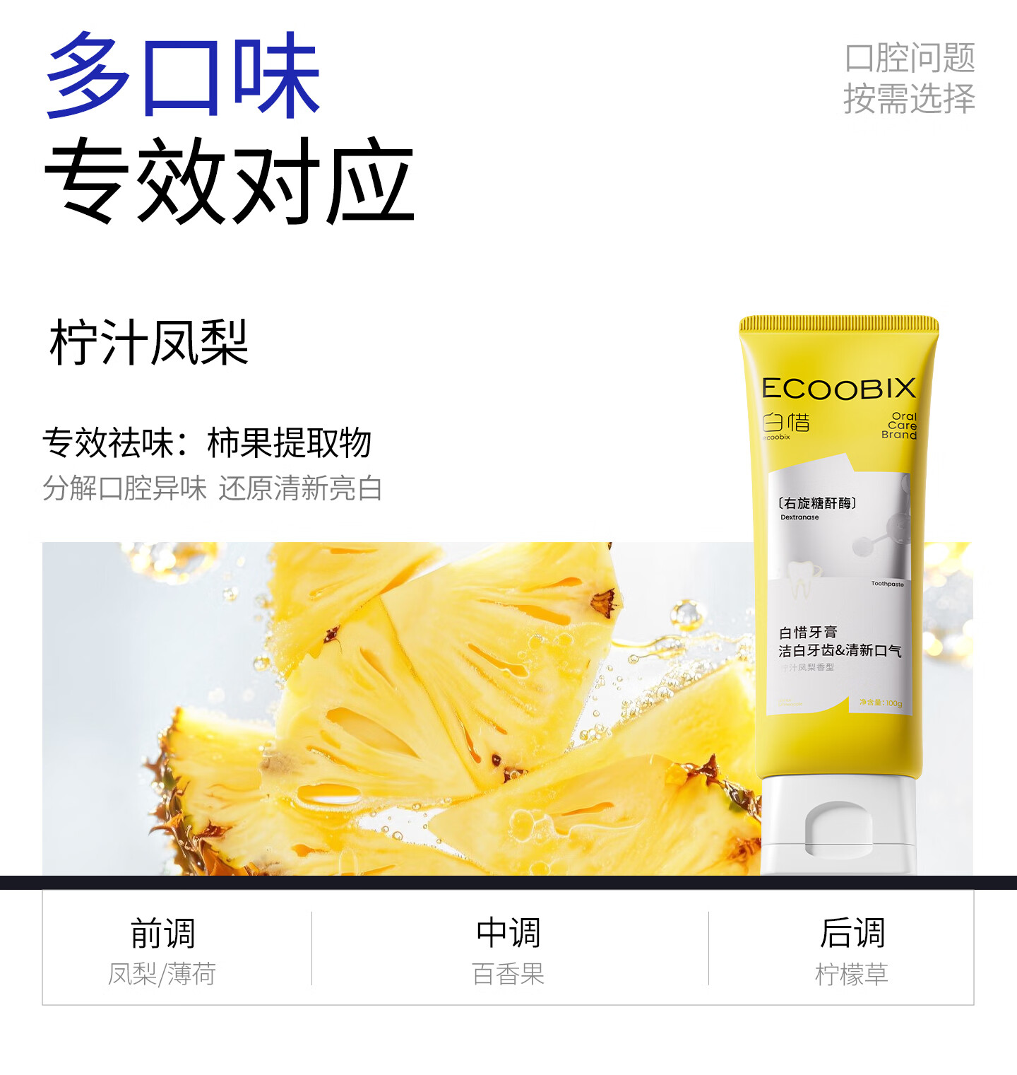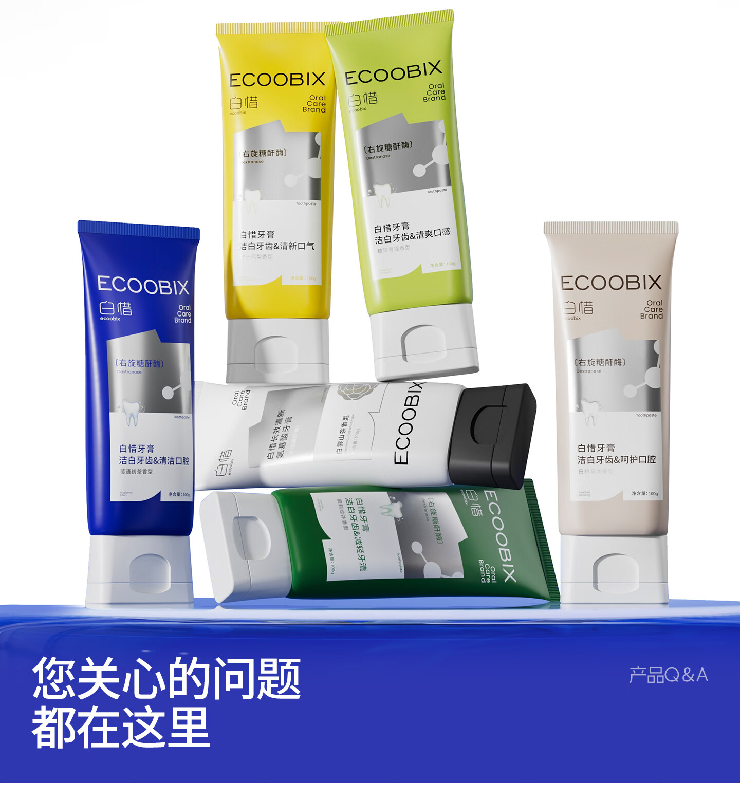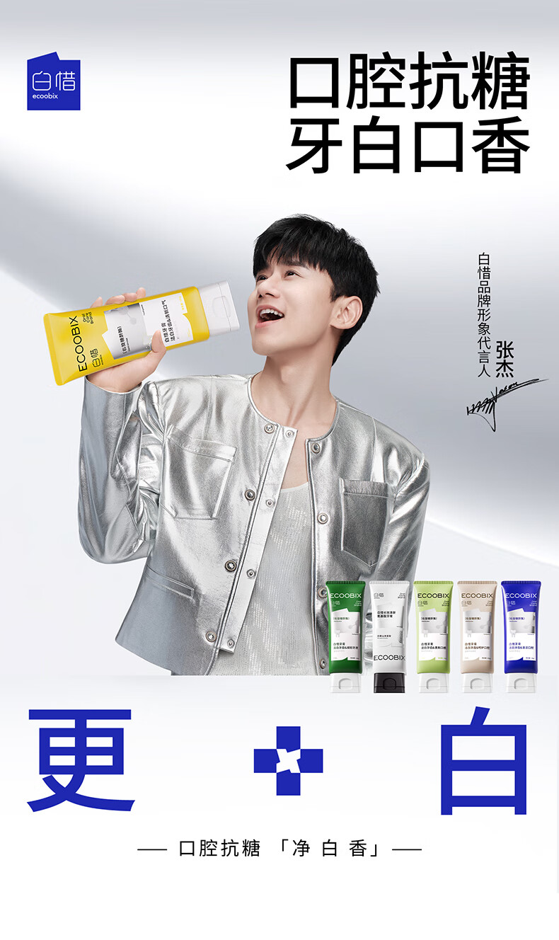 白惜牙膏蓝莓味100g抗糖益生菌抑氨基酸护龈净白清新口气含氟男女圣诞
