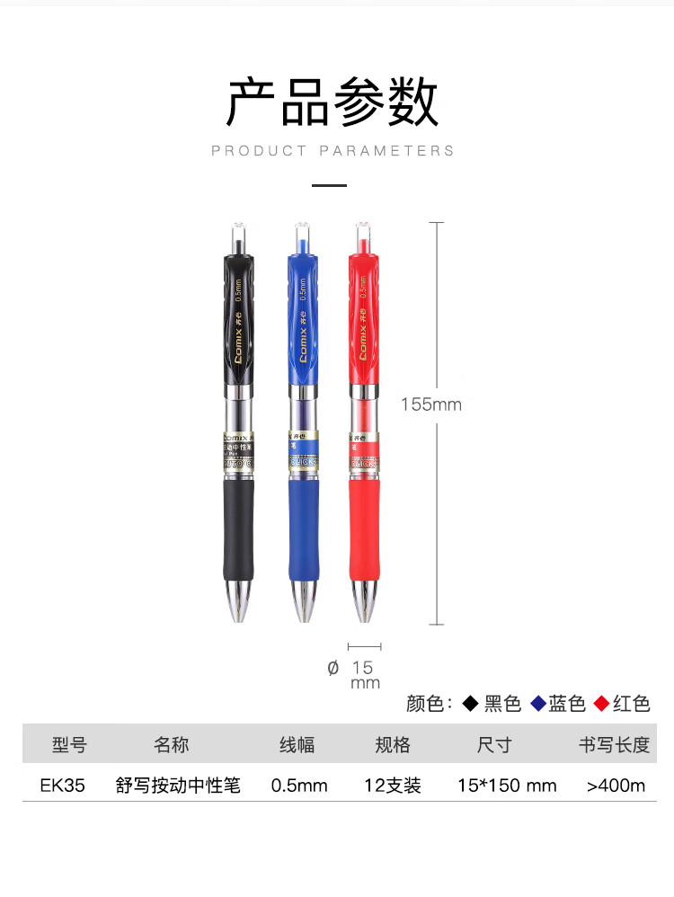 齐心(Comix)【热门商品】中性笔签字笔按动笔子弹头/水笔/0.5mm会议签字笔 黑色 12支装 EK35