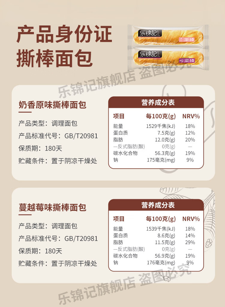 乐锦记手撕面包棒整箱棒营养早餐休闲零食小吃整箱 原味撕棒700g【约20袋不含脱氢】