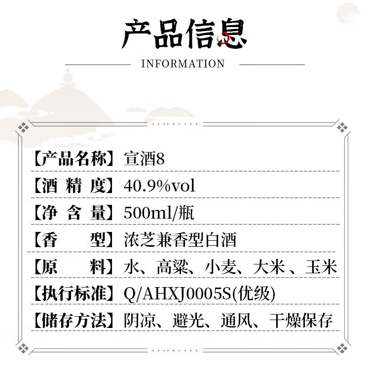 宣酒 宣8 浓芝兼香型白酒 40.9度 500ml*4瓶 整箱装 热门商品 送礼