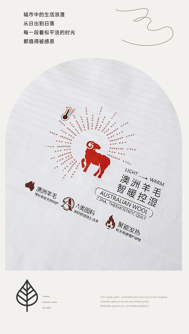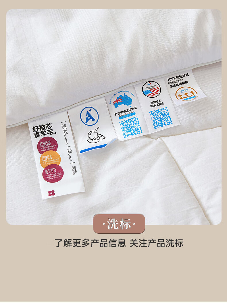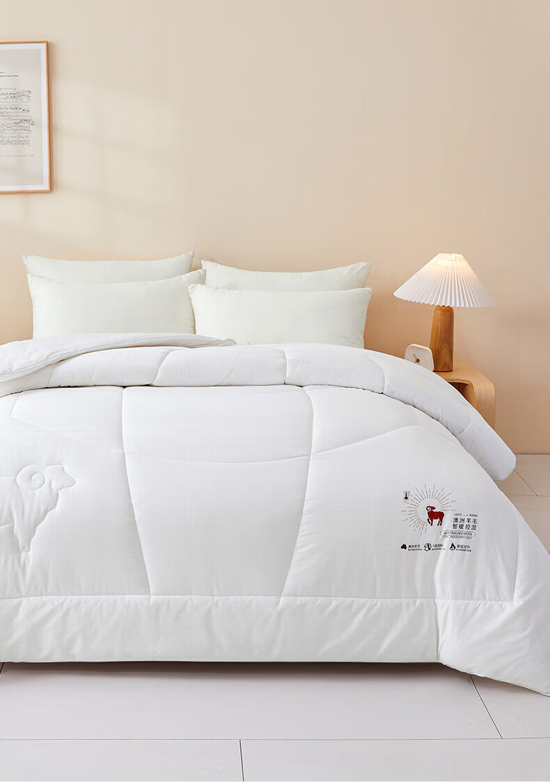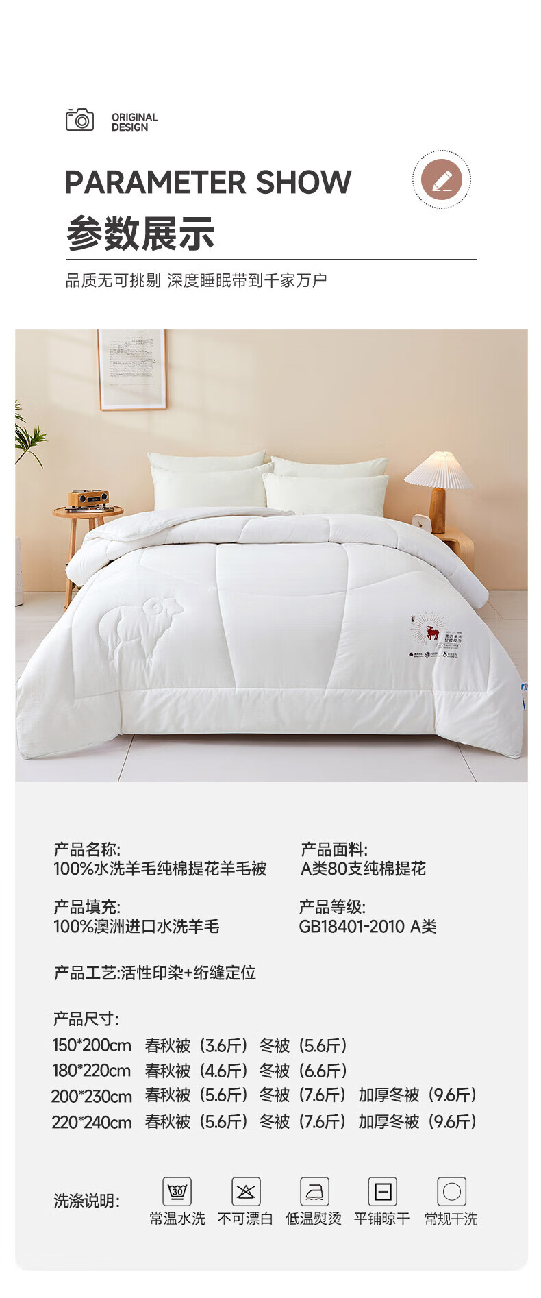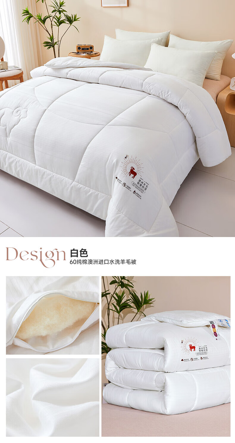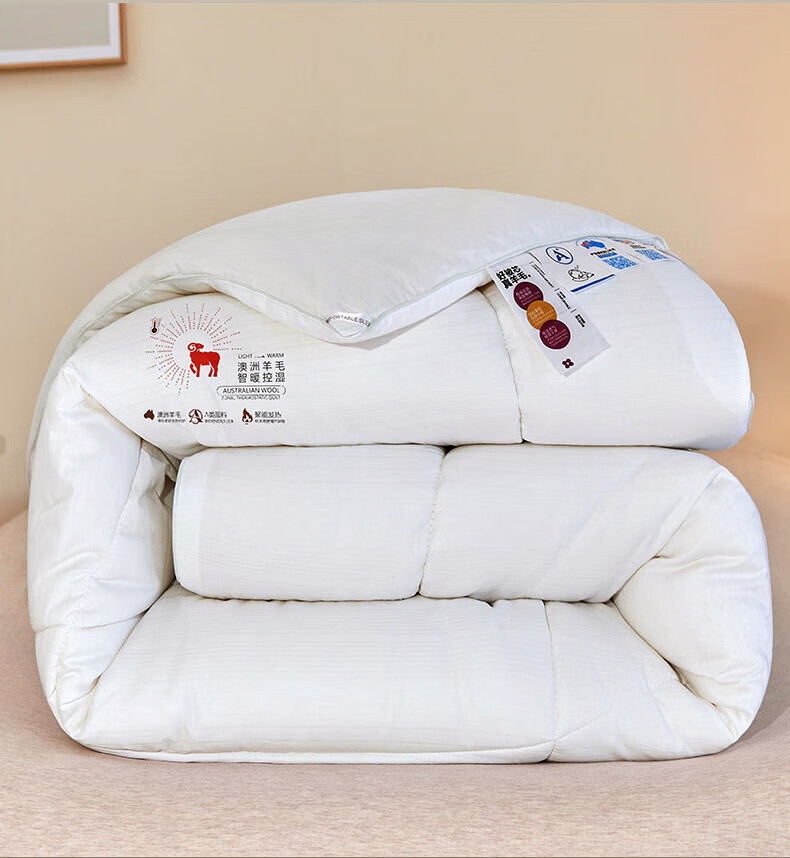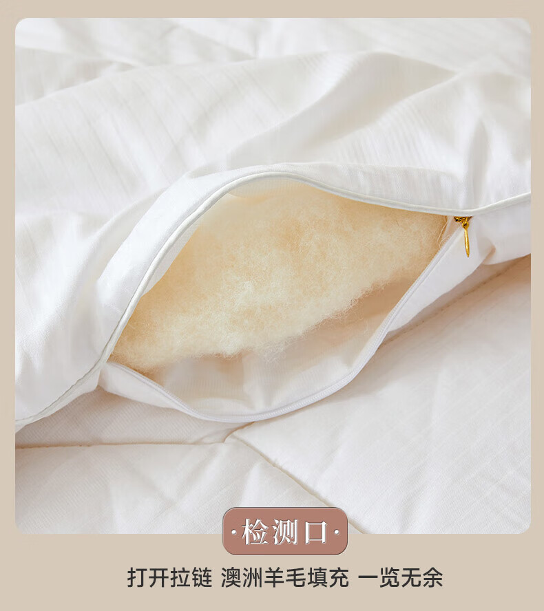 恒源祥高端A类进口澳洲绵羊毛被子10斤厚冬被冬被8斤加厚被芯春秋被保暖 白色 150*200cm【3.6斤春秋被】
