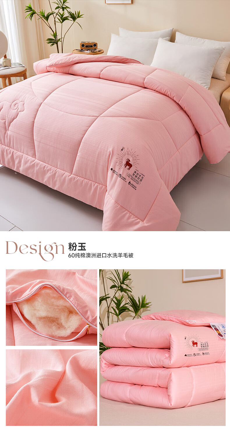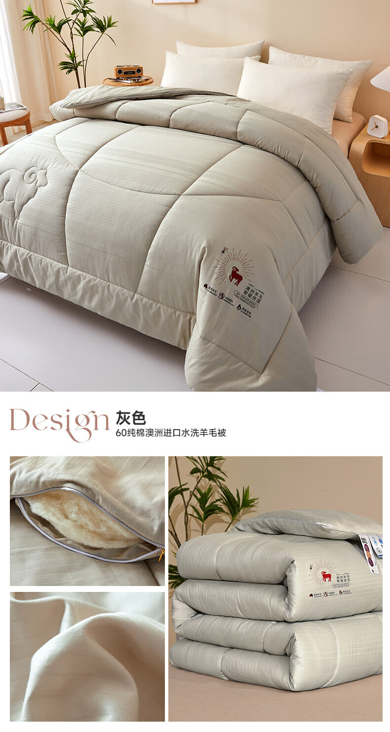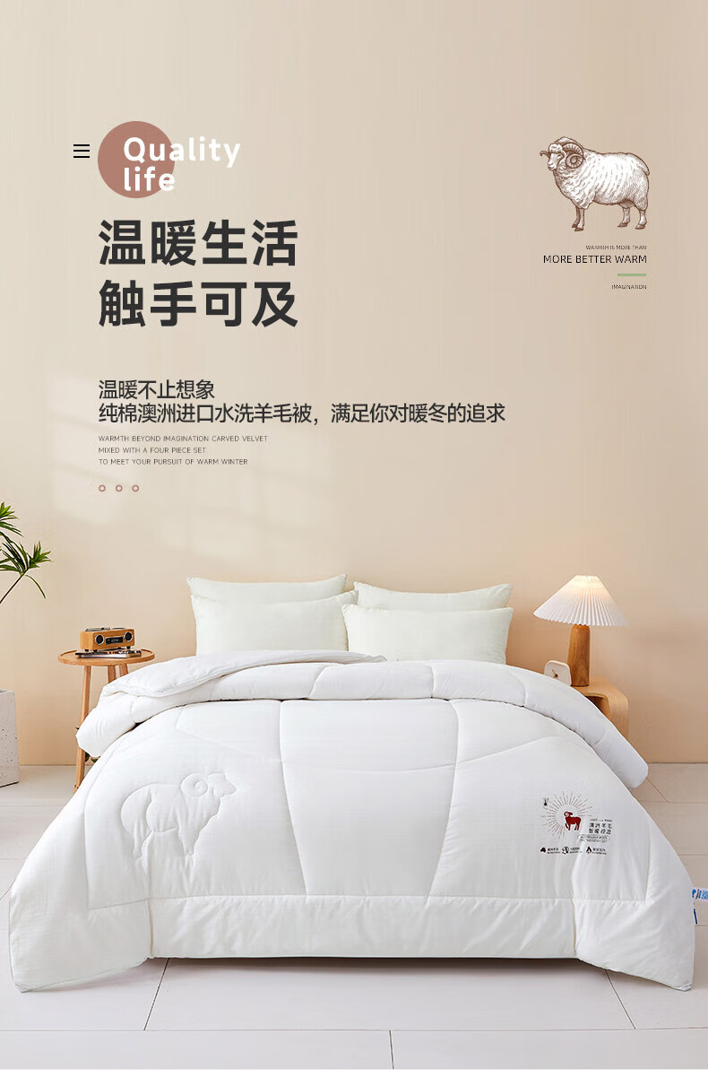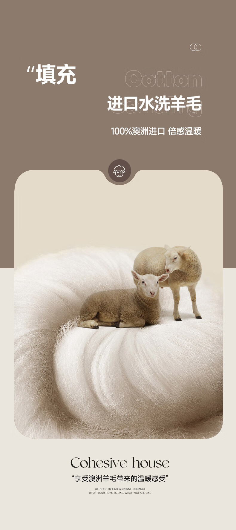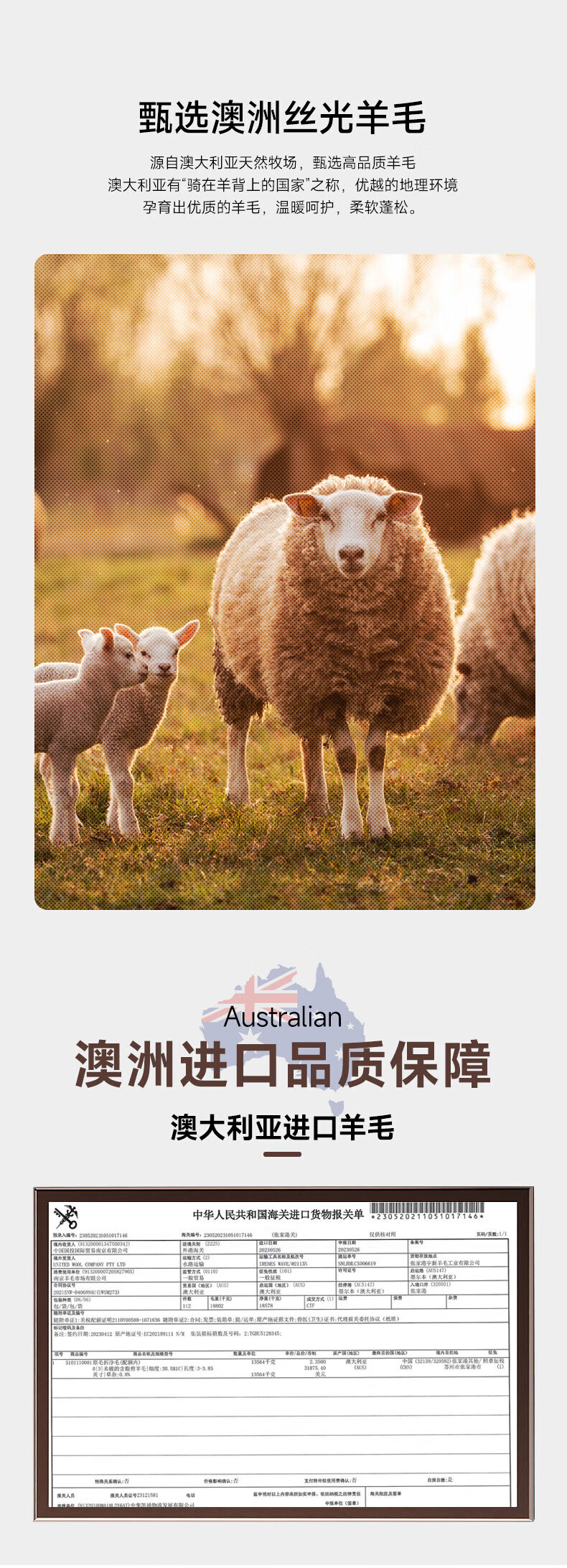 恒源祥高端A类进口澳洲绵羊毛被子10斤厚冬被冬被8斤加厚被芯春秋被保暖 白色 150*200cm【3.6斤春秋被】