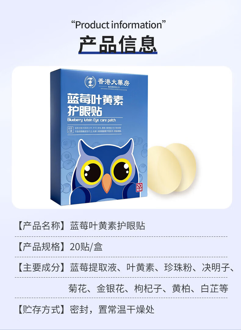 浩敬堂护眼贴膜冷敷眼贴成人眼部疲劳淡化黑淡眼圈眼皮袋缓解熬夜 叶黄素护眼贴 20片 3盒