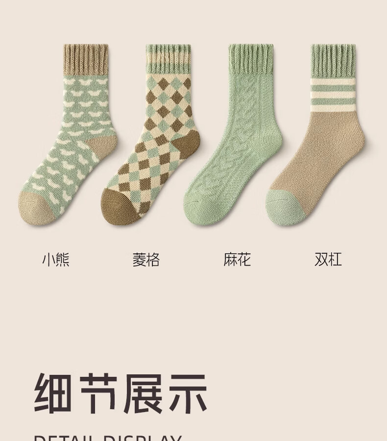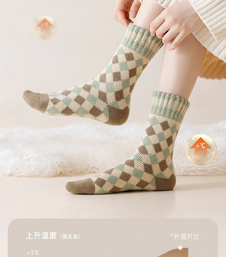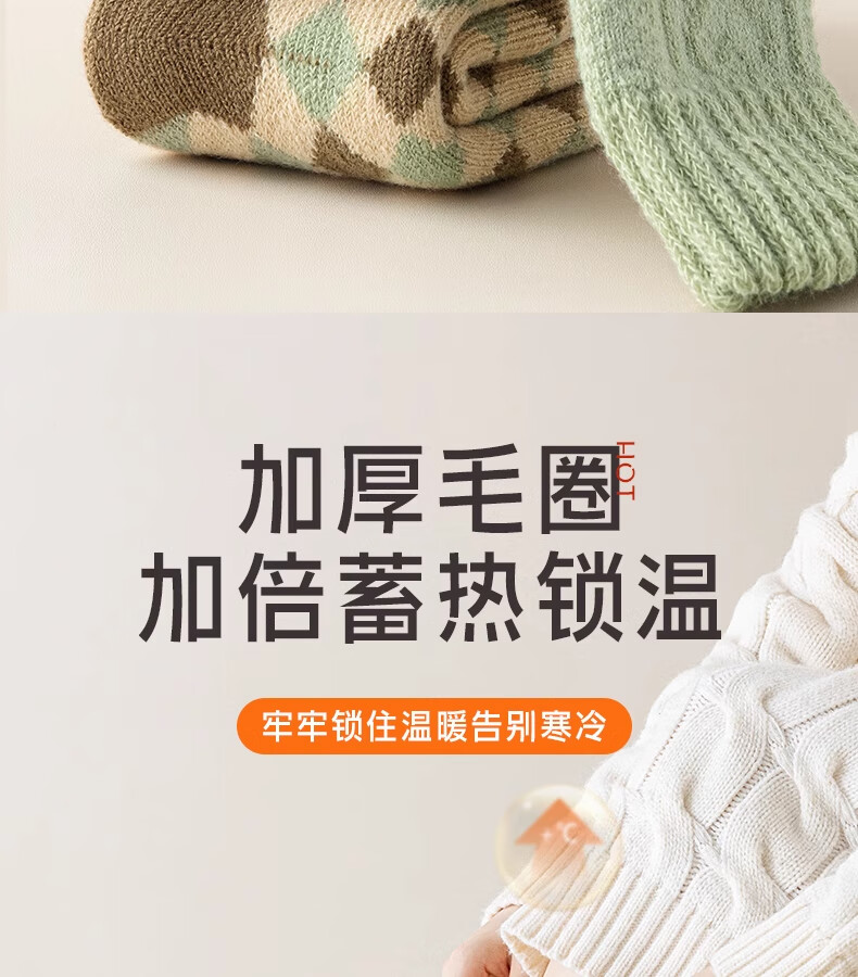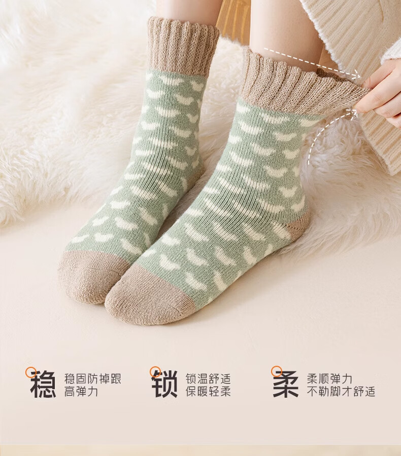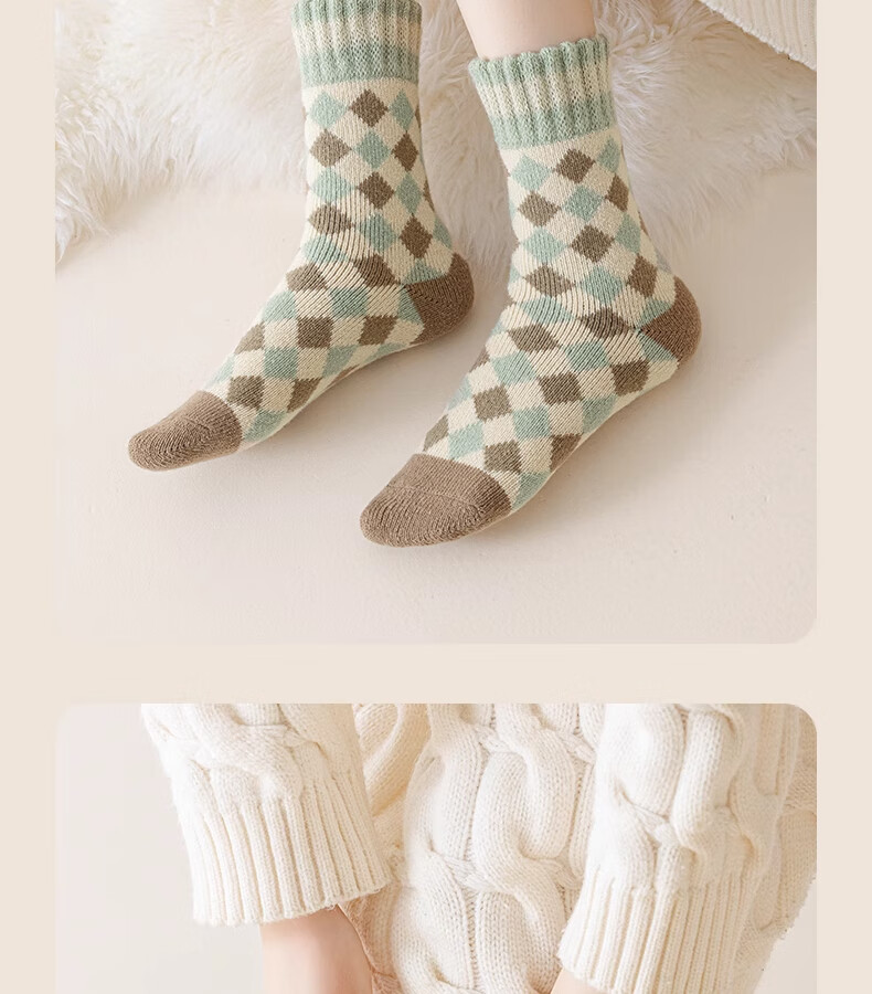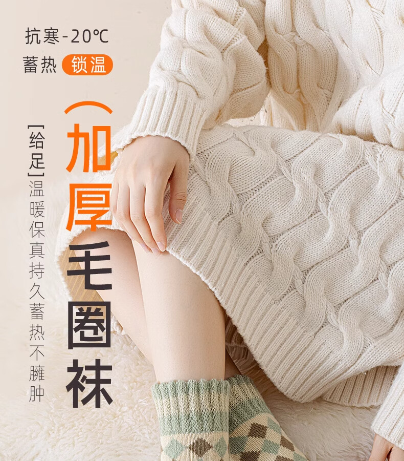 洛·恋袜子女春秋季羊毛绒保暖纯棉毛圈毛巾底加绒加厚中筒女士新款长袜 混色 【冬季保暖抗寒】 3双 均码 【颜色可选 拍下留言】